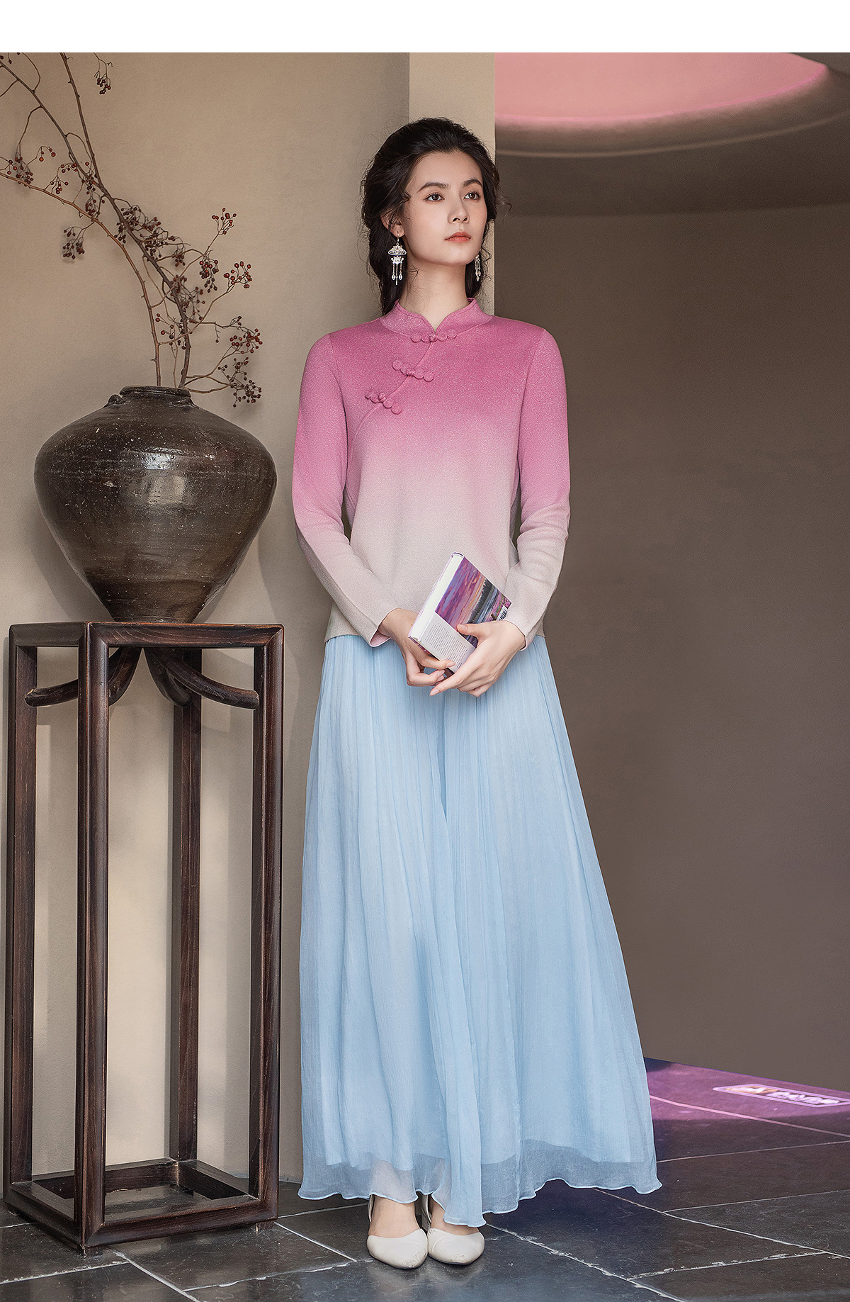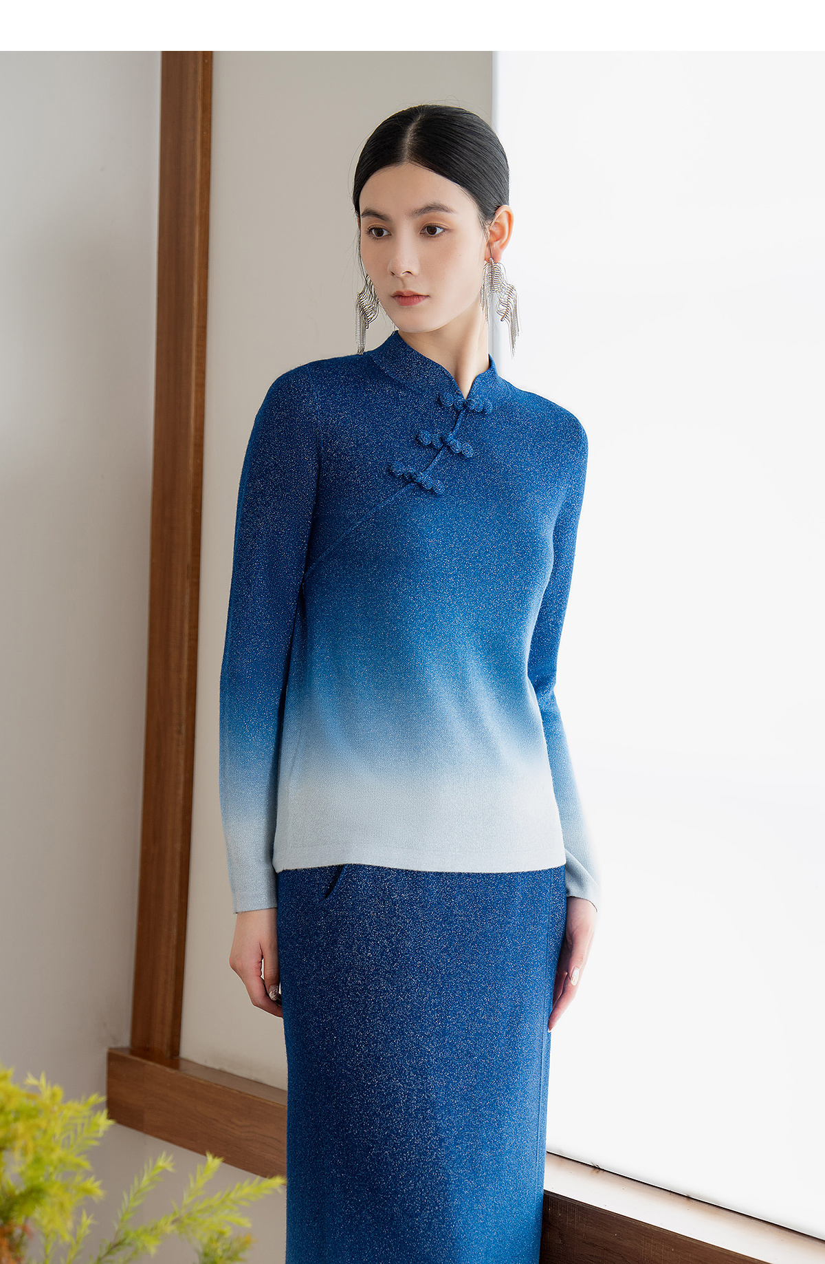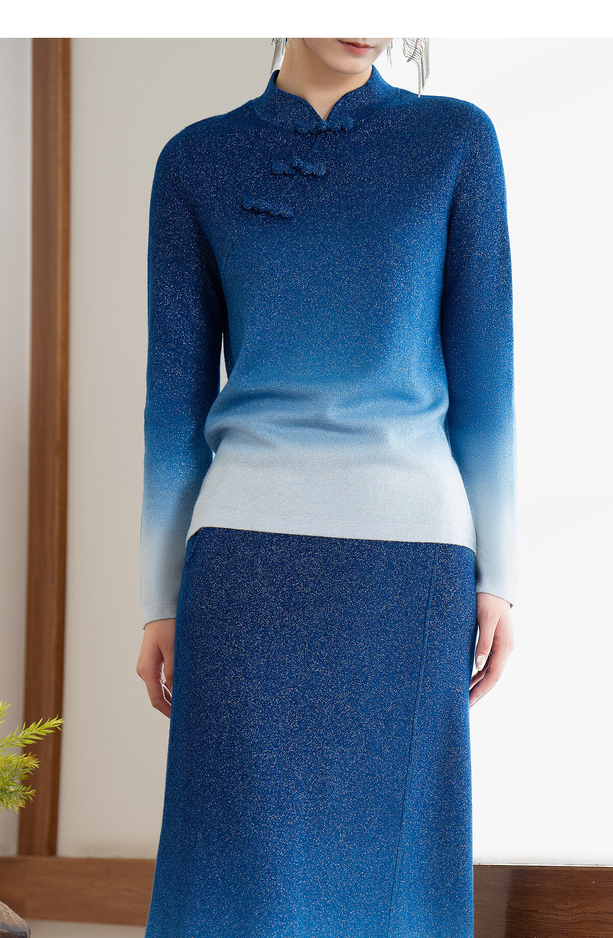 【林栖设计小店】多色渐变毛织衫2024秋冬新品新中式盘扣长袖毛衣针织衫女1941240