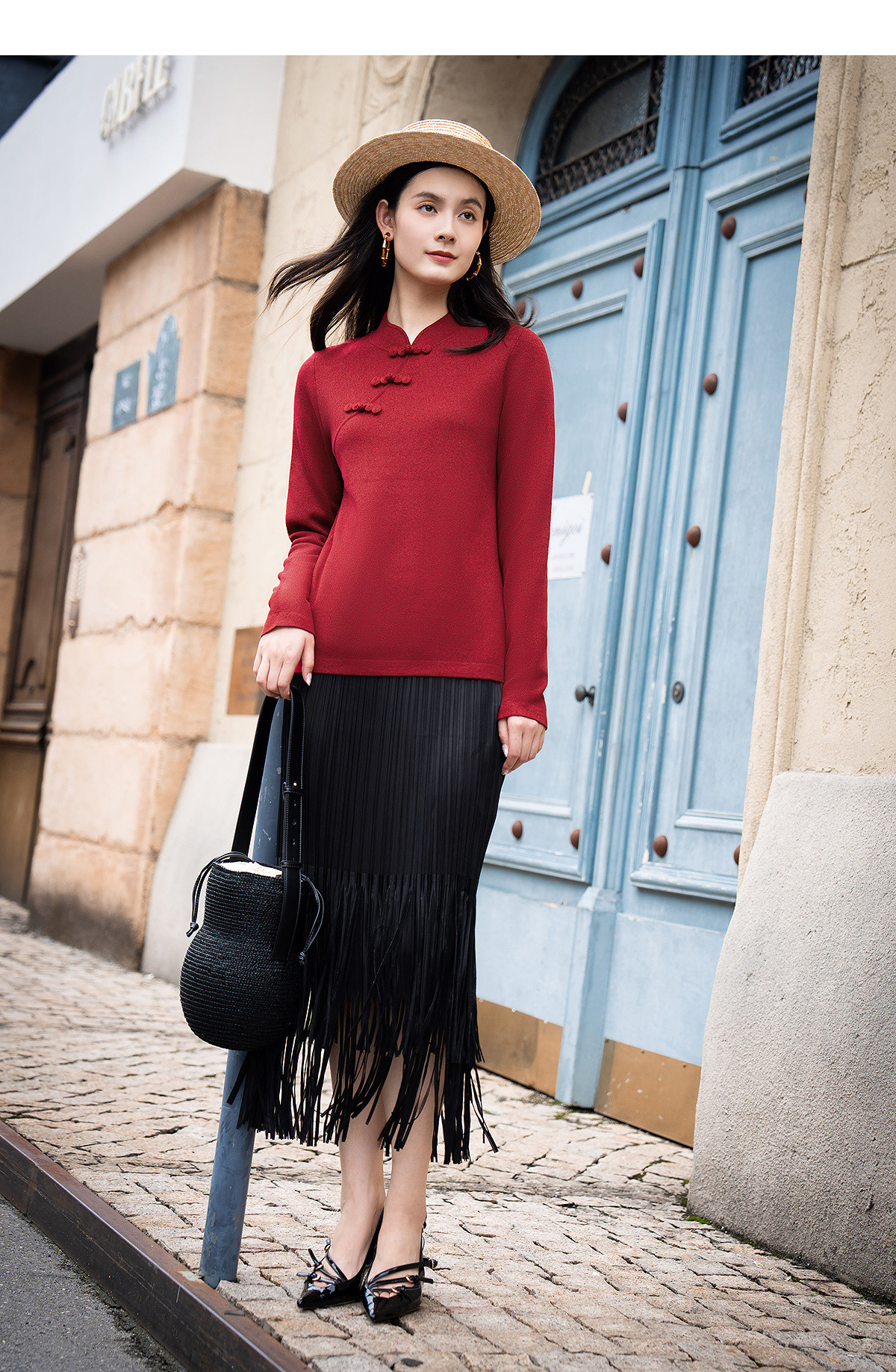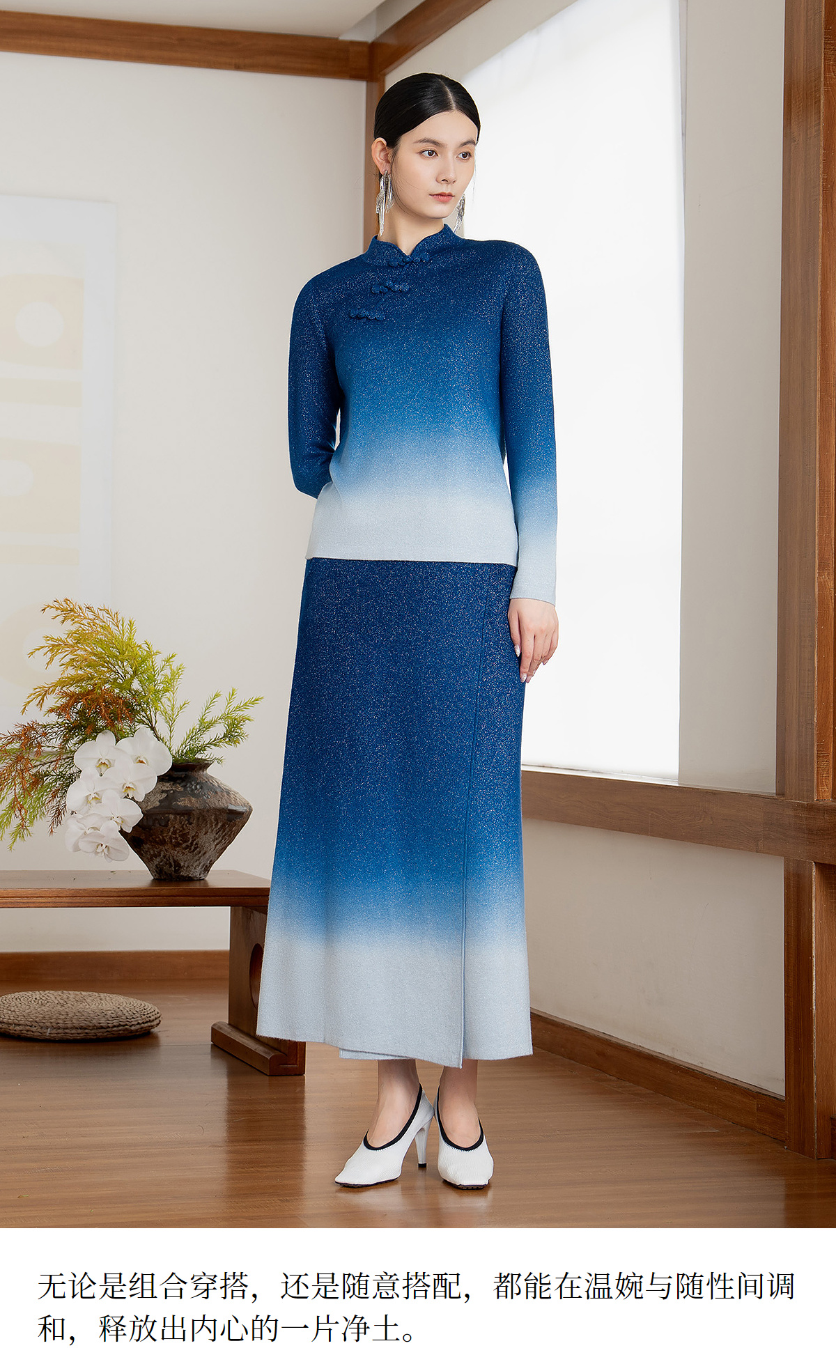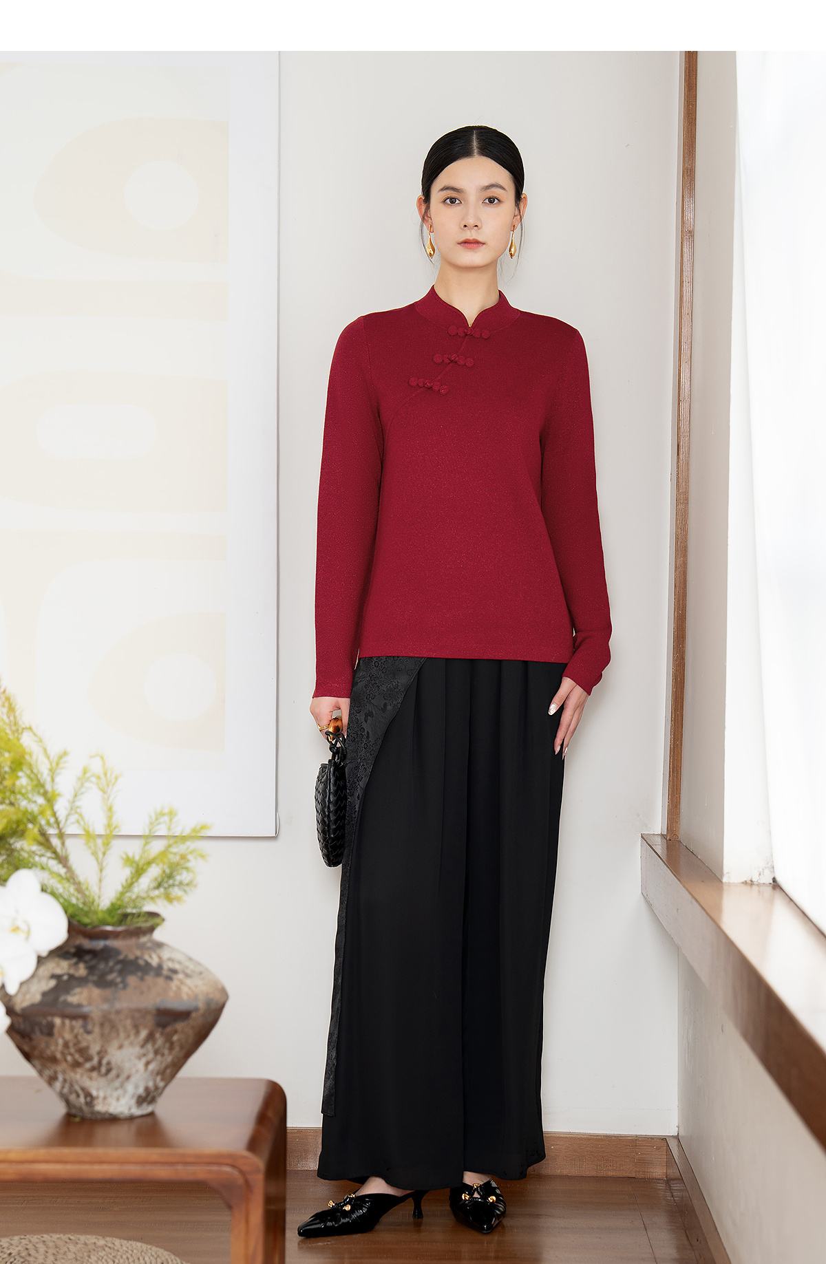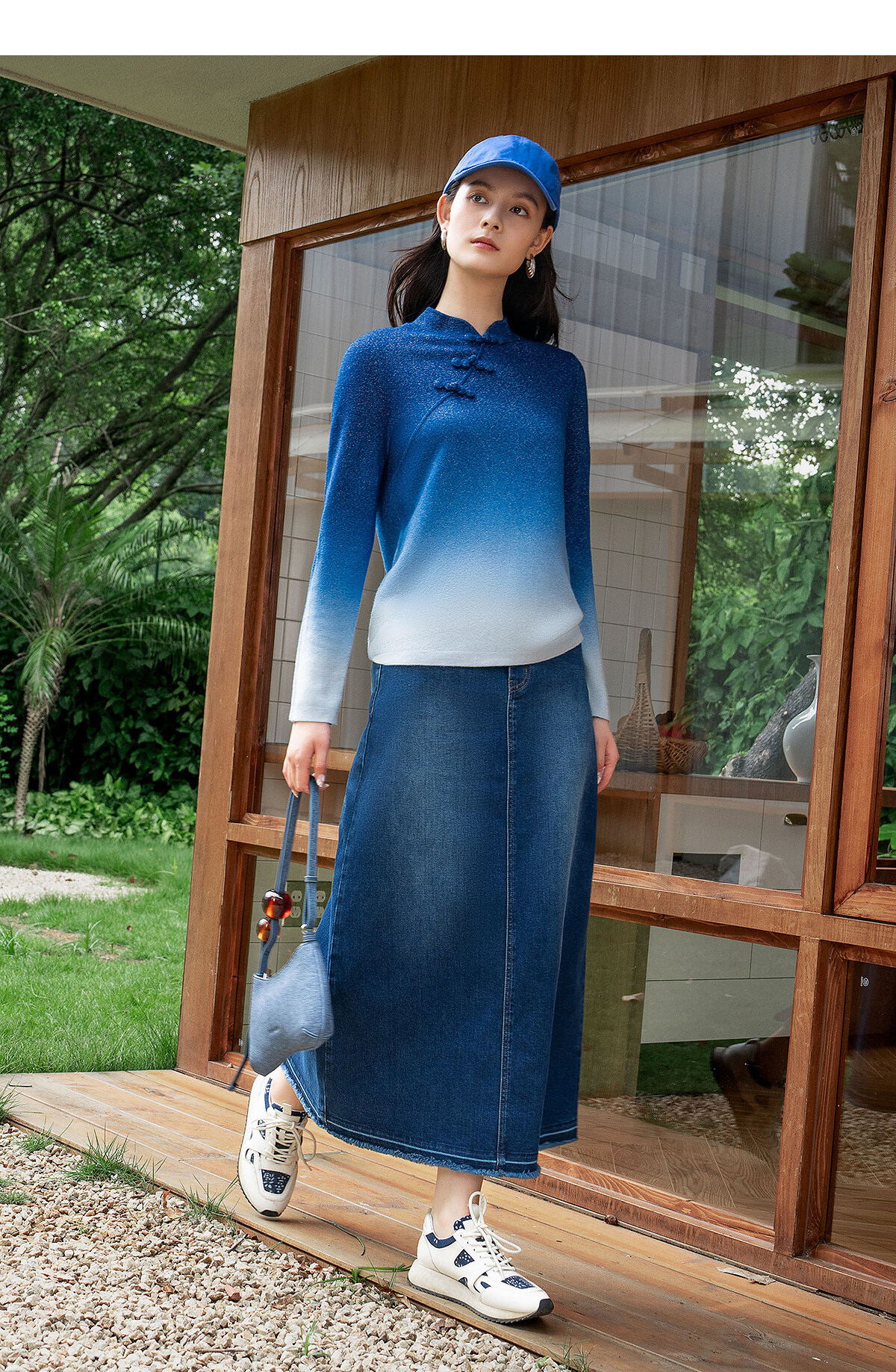 【林栖设计小店】多色渐变毛织衫2024秋冬新品新中式盘扣长袖毛衣针织衫女1941240