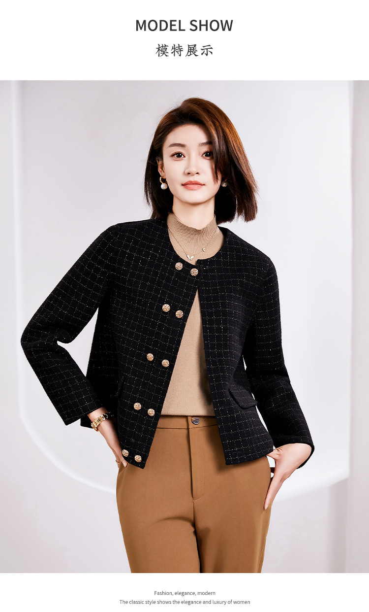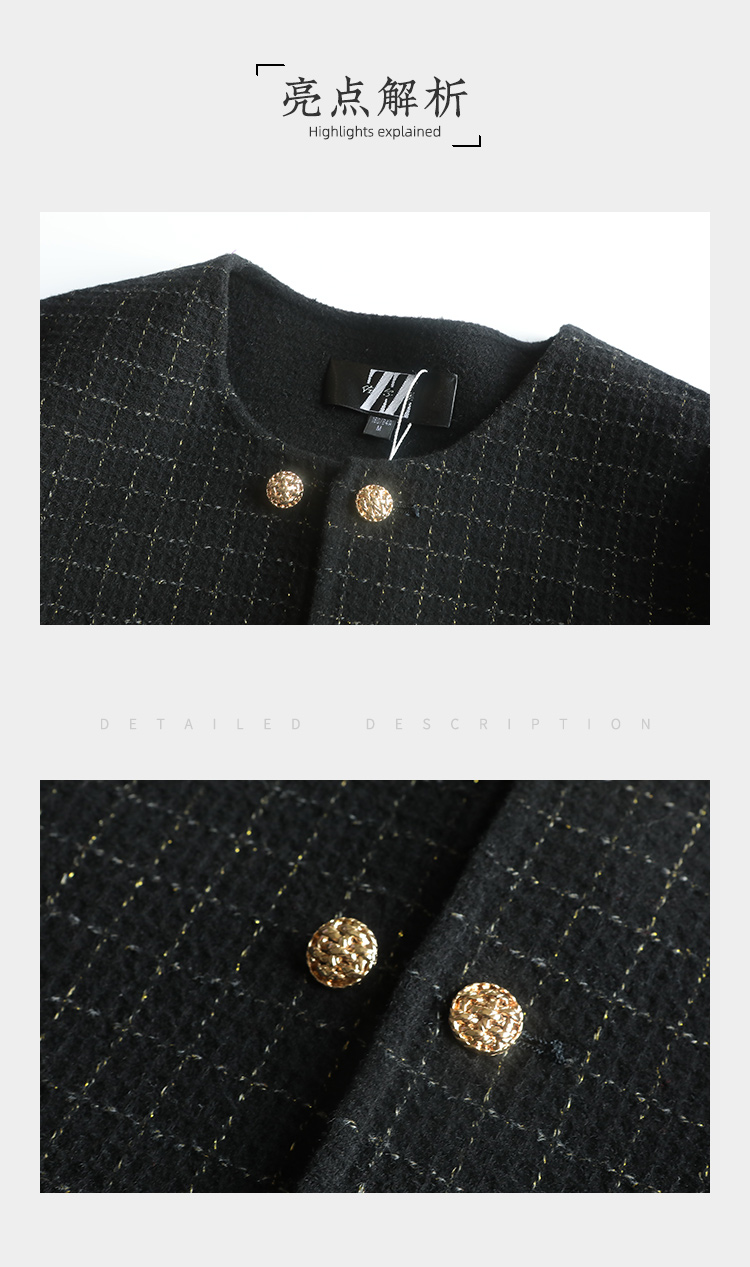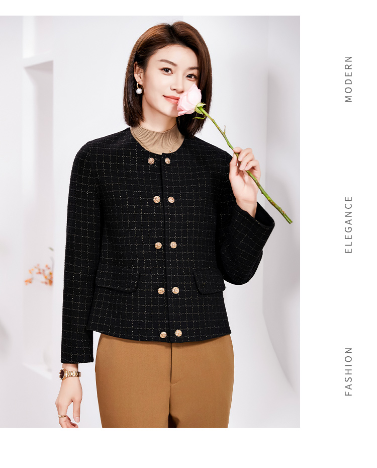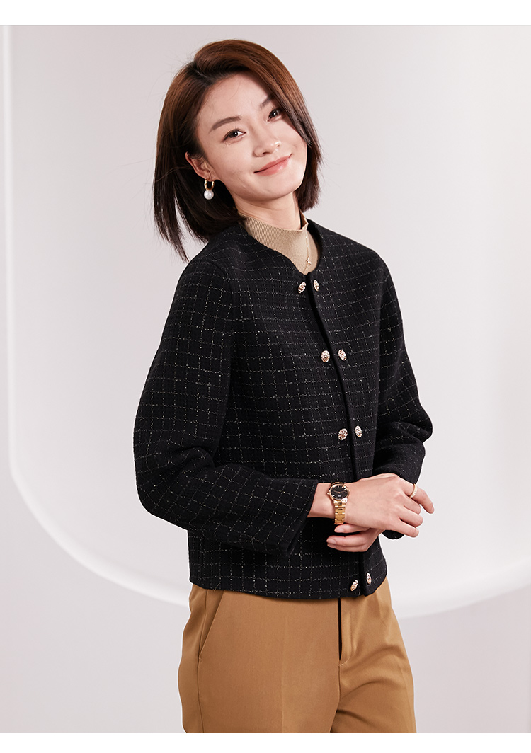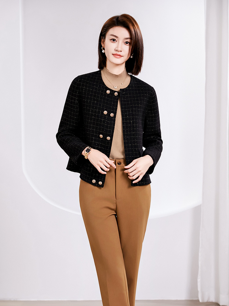佐尔美春季上新 气质小香风千鸟格绵羊毛双面呢短外套女E34SM14