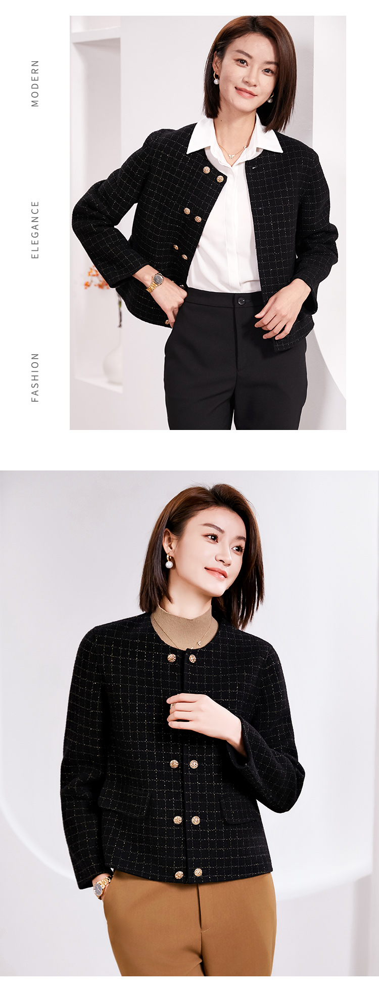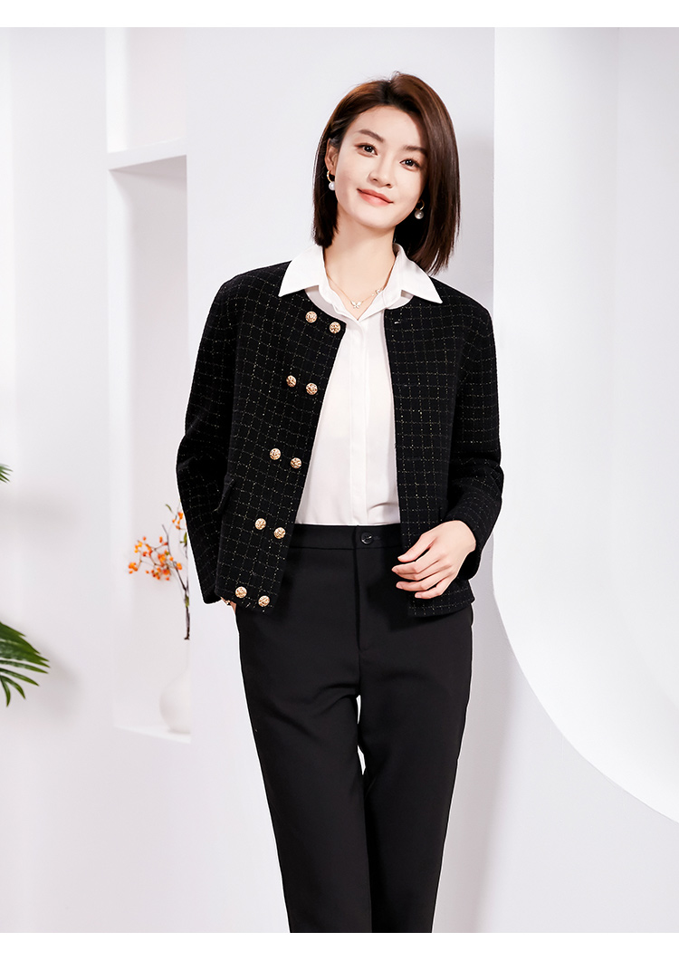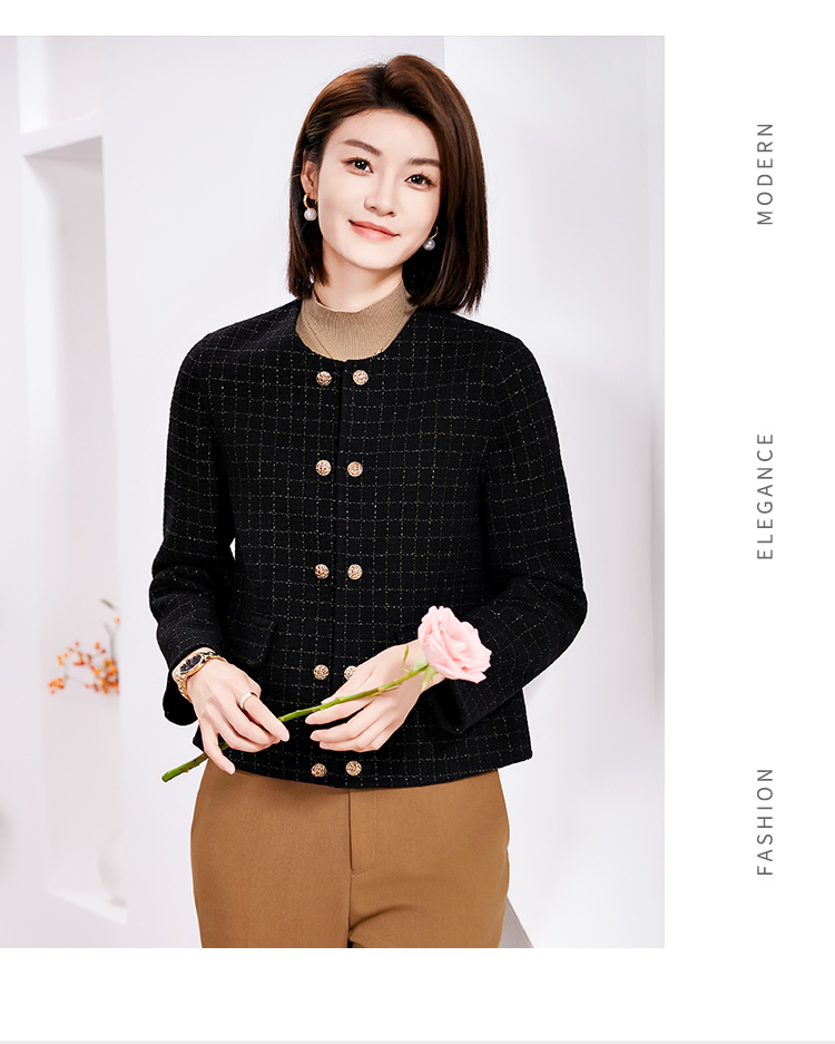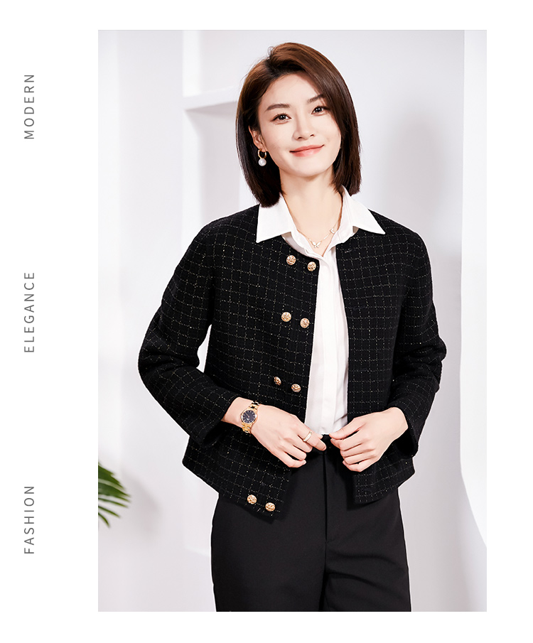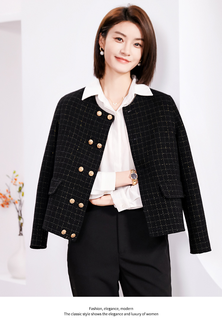 佐尔美春季上新 气质小香风千鸟格绵羊毛双面呢短外套女E34SM14