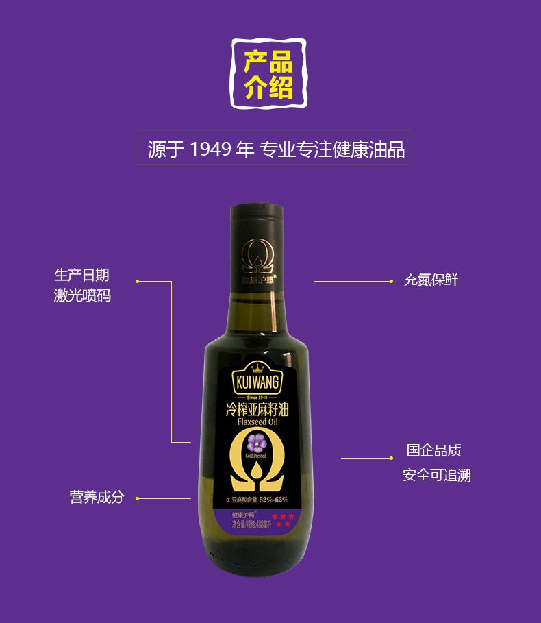 葵王 物理冷榨 亚麻籽油 488ML*2瓶