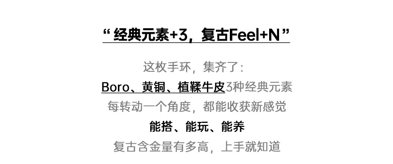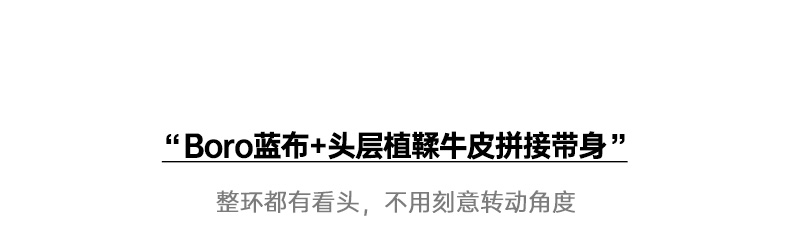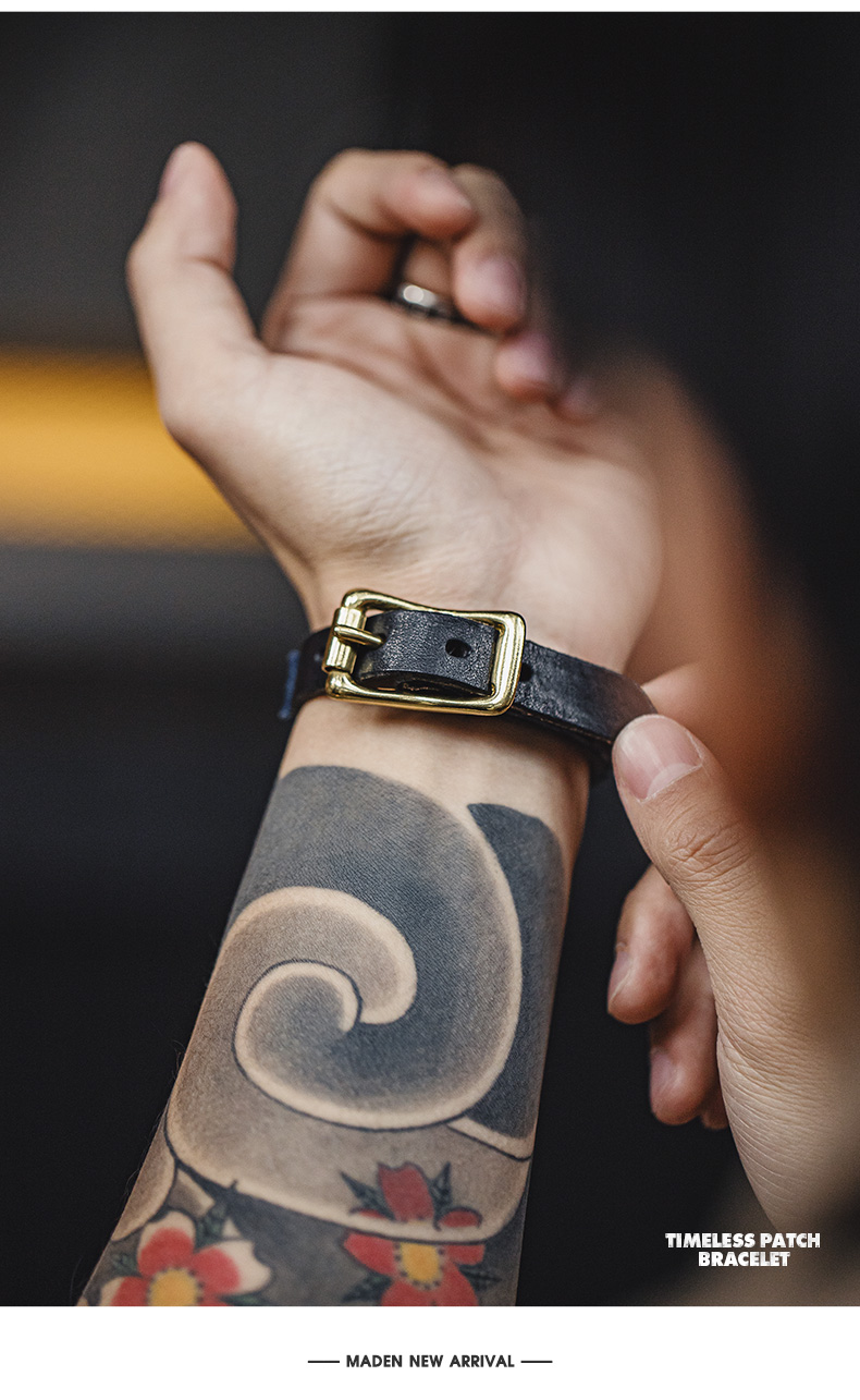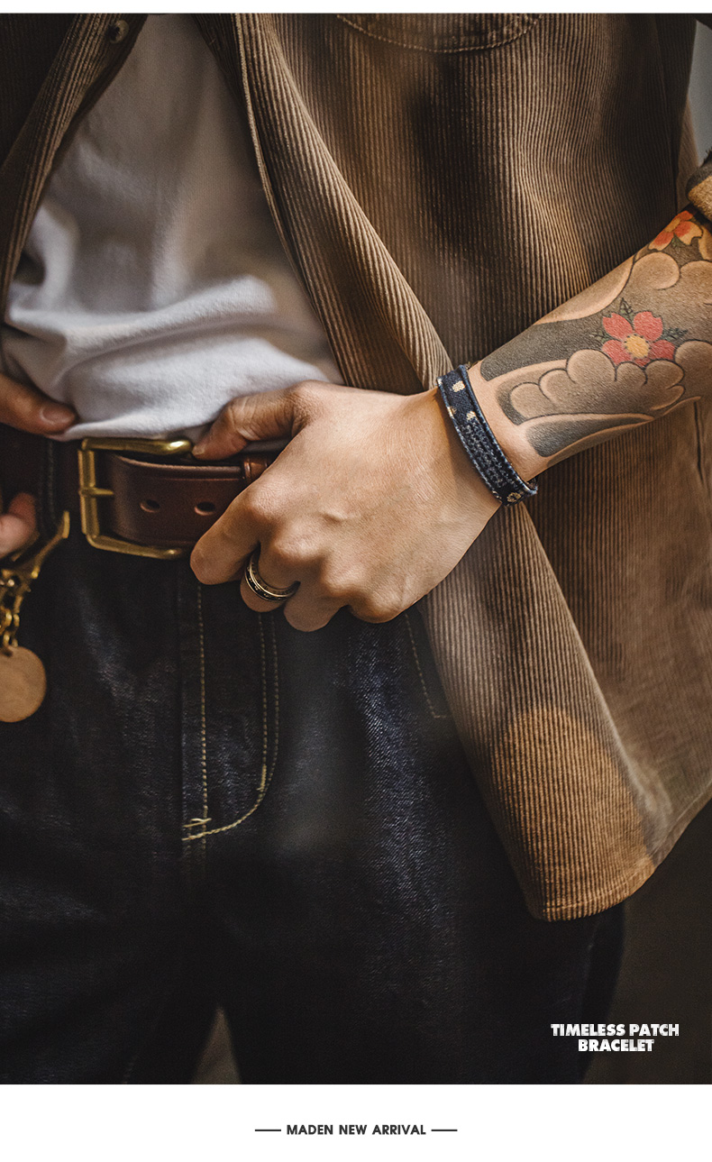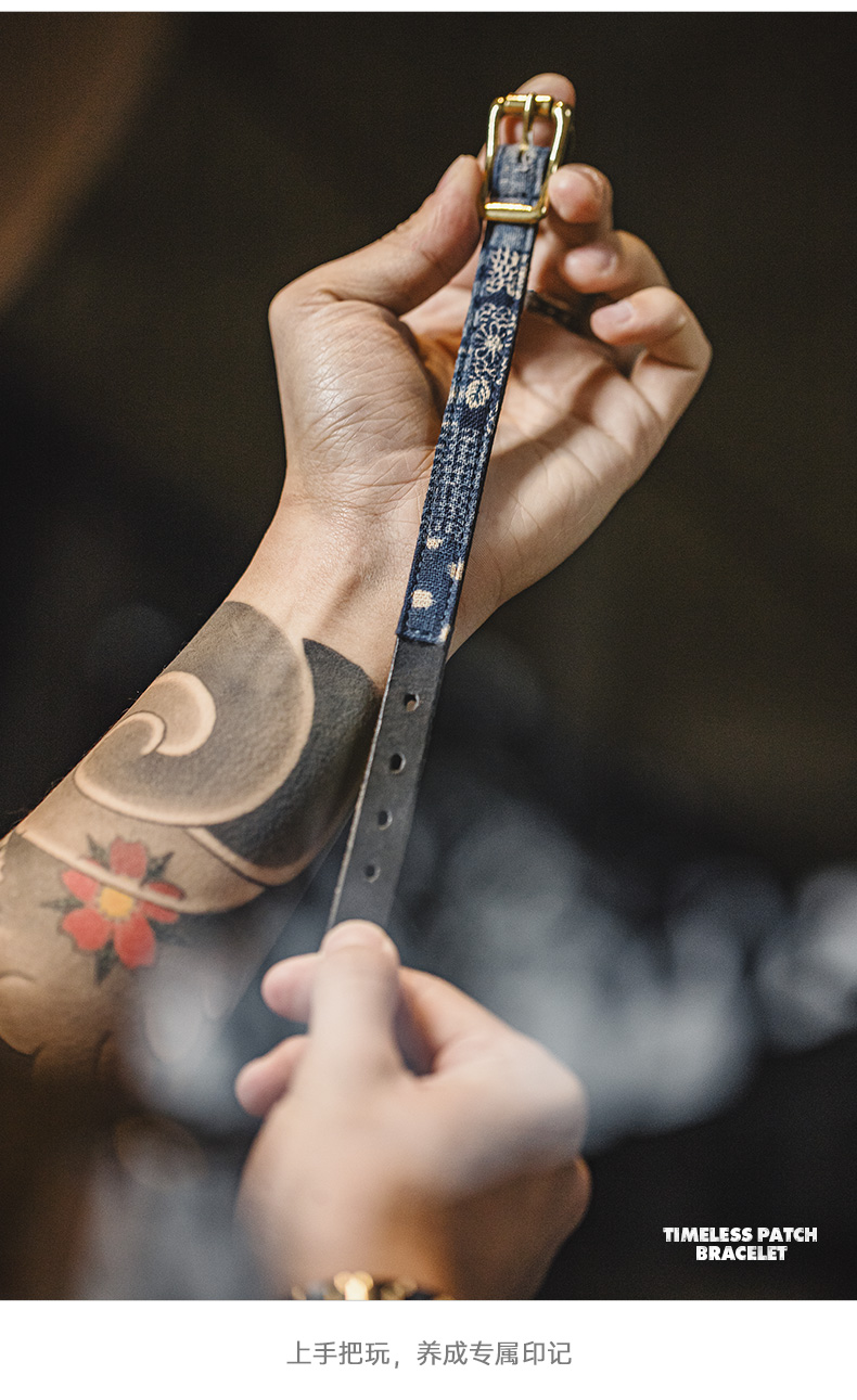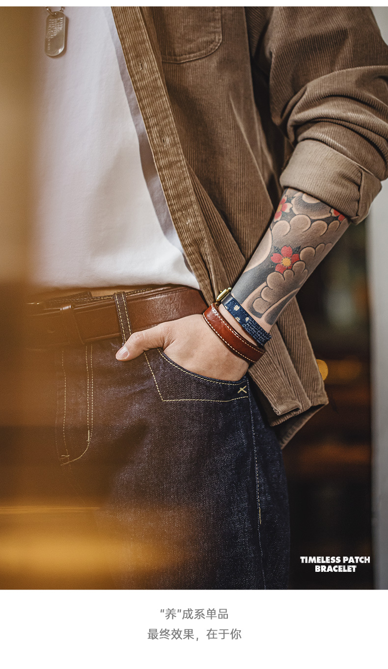 马登工装复古boro百家布拼接手环黄铜头层植鞣男