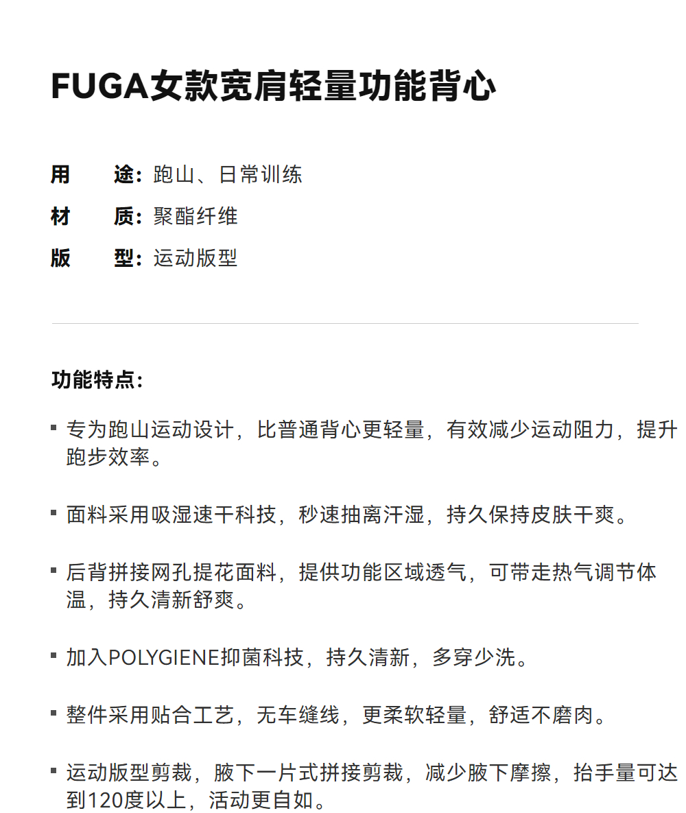 KAILAS凯乐石 FUGA女款宽肩轻量功能背心 KG2517216【Z】