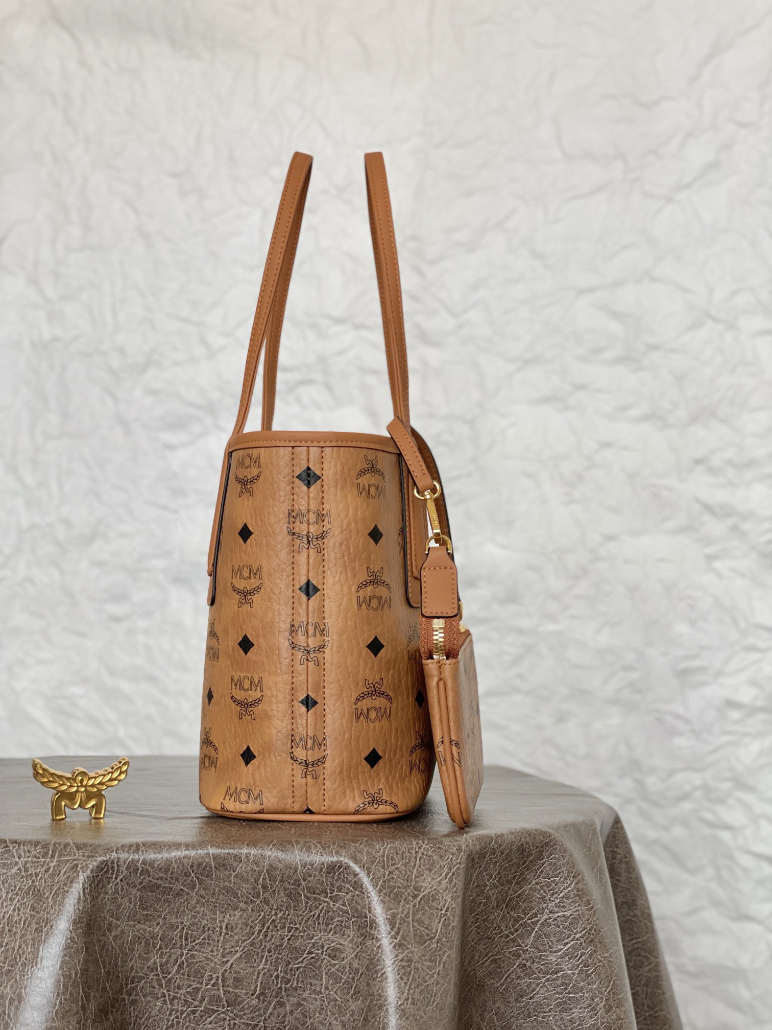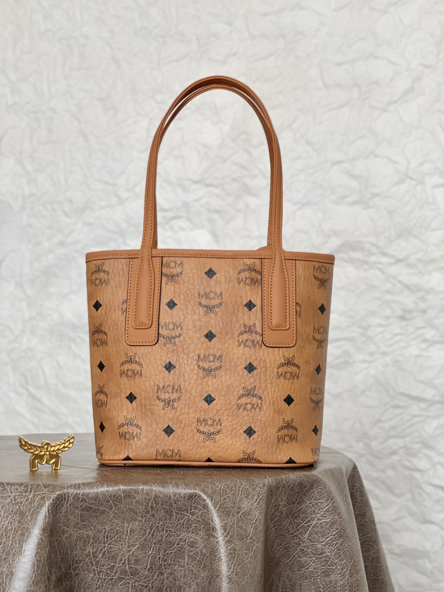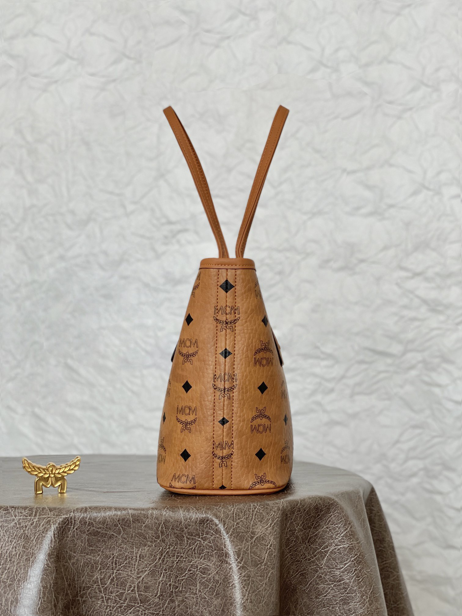 秋冬特惠💰780 原单MCM 原厂皮 迷你𝐌𝐢𝐧𝐢双面购物袋托特包MWPDSLRO2CO001 经典干邑棕色