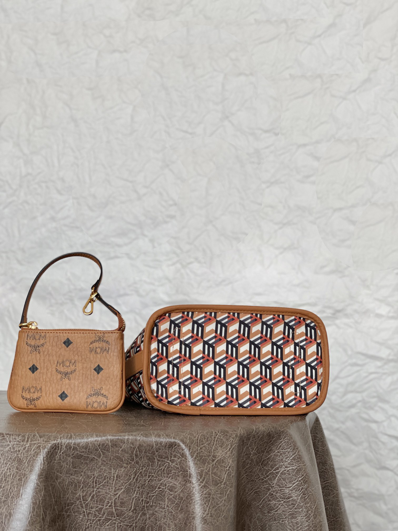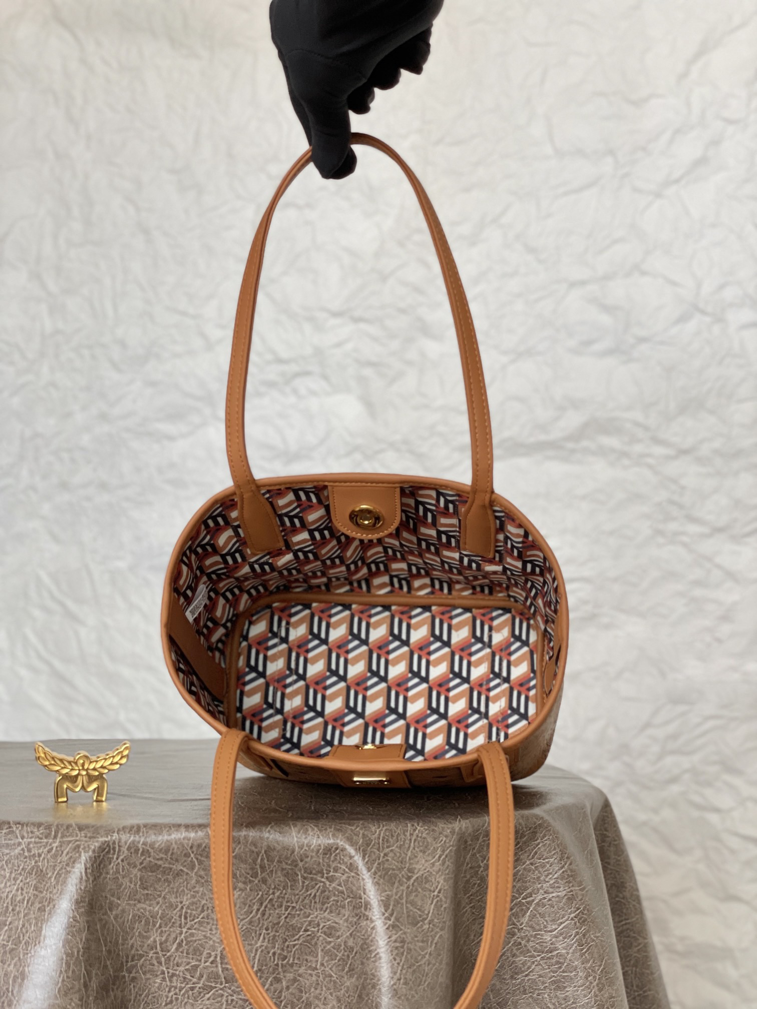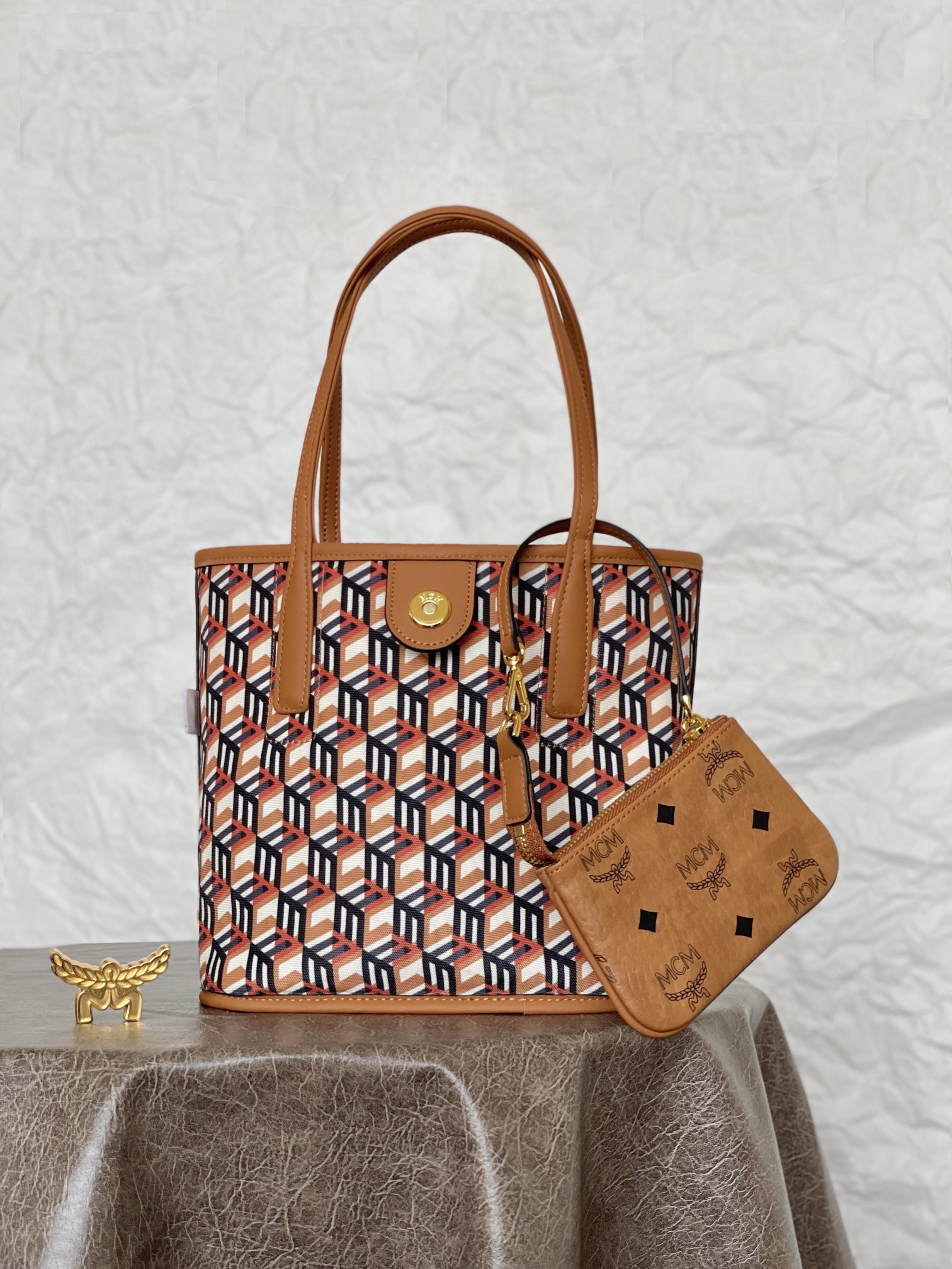 秋冬特惠💰780 原单MCM 原厂皮 迷你𝐌𝐢𝐧𝐢双面购物袋托特包MWPDSLRO2CO001 经典干邑棕色