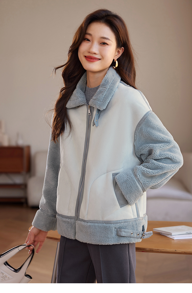 【年货节】熙世界皮毛一体羊羔毛外套女高级感小个子短款机车夹克潮2025冬