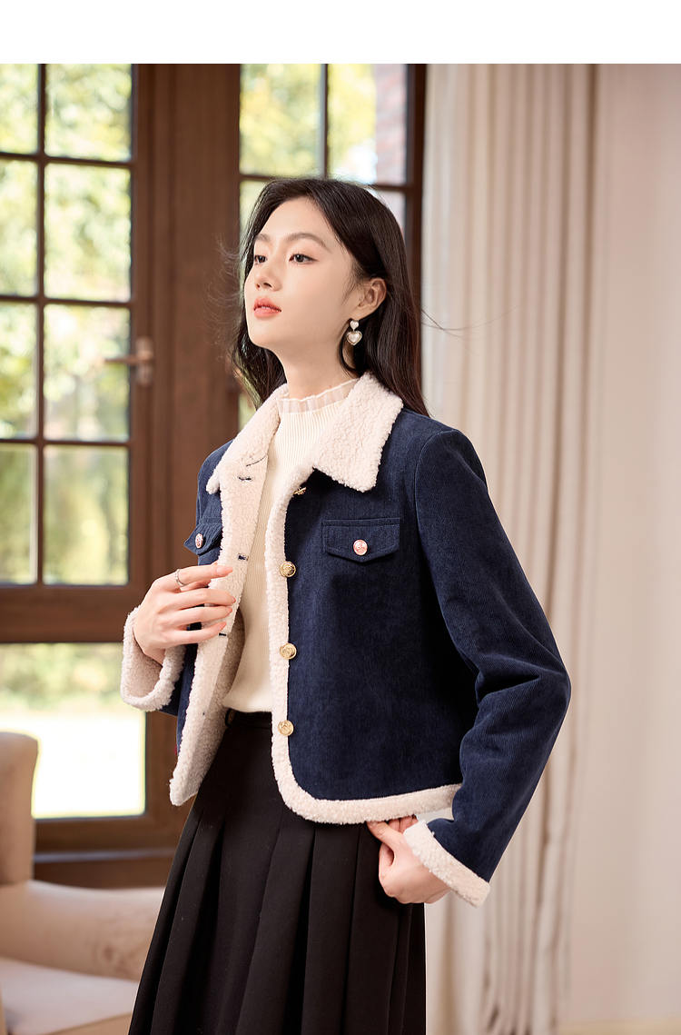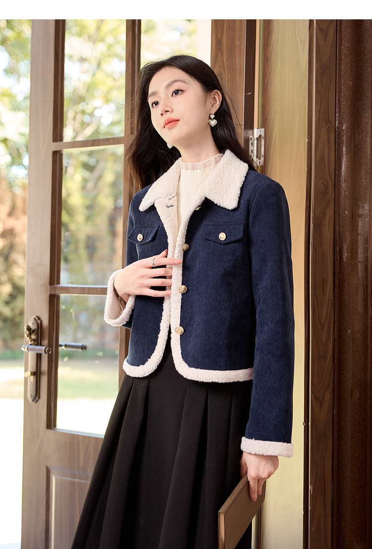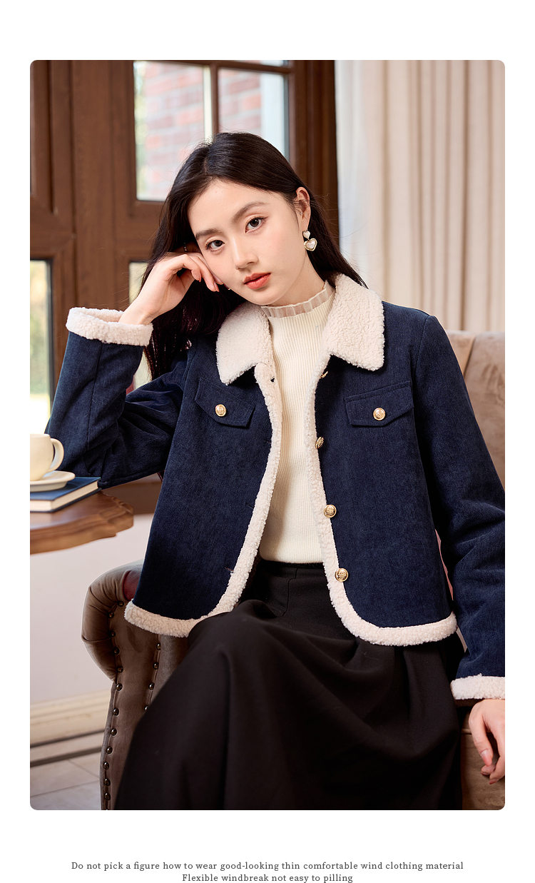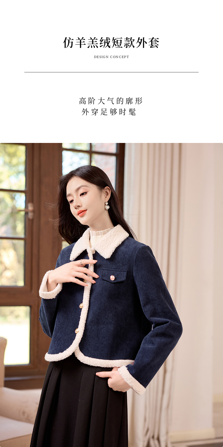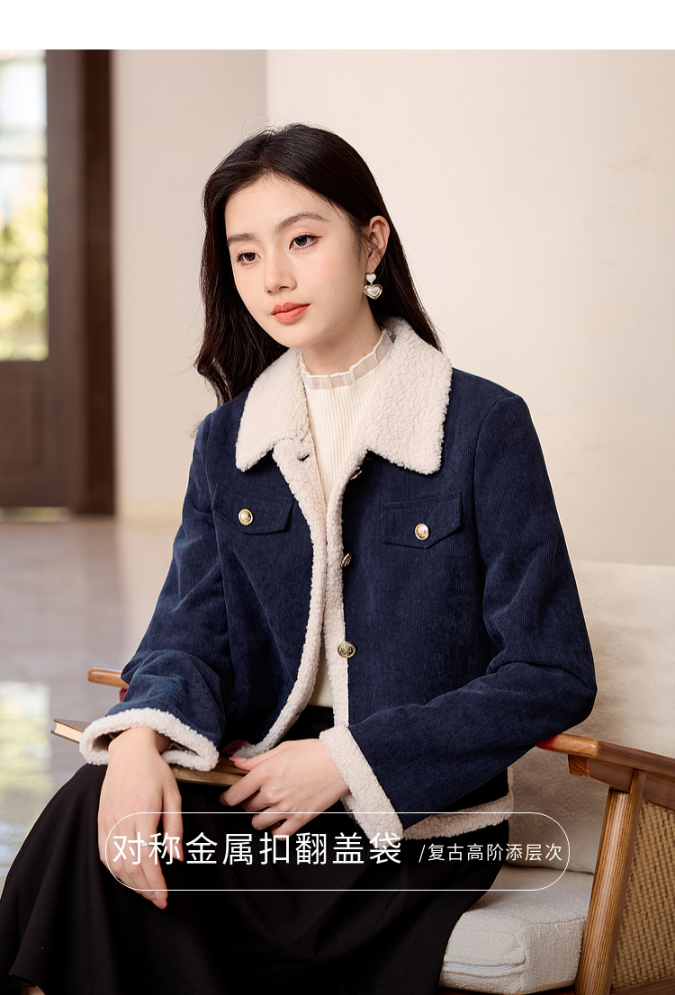 【年货节】熙世界2025冬季新款小香风灯芯绒仿羊羔毛外套加厚短款翻领上衣
