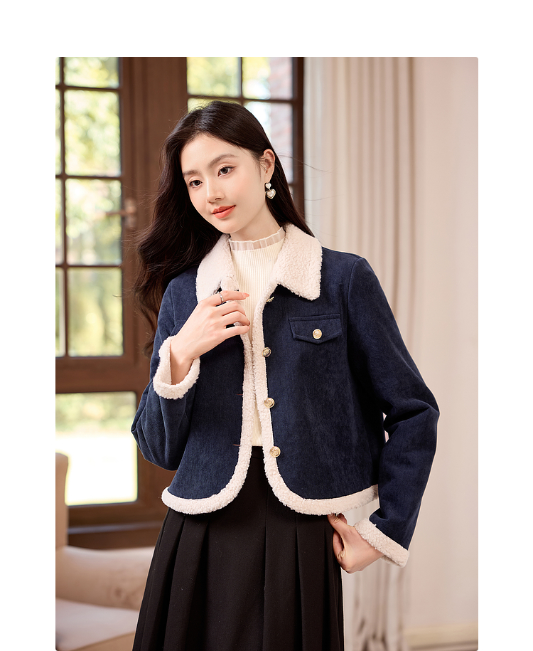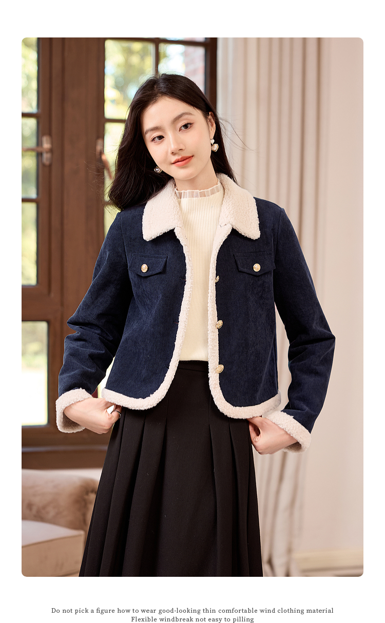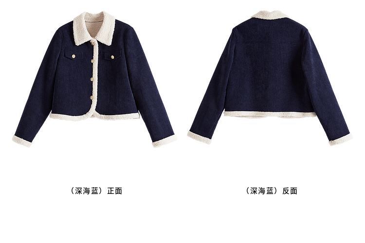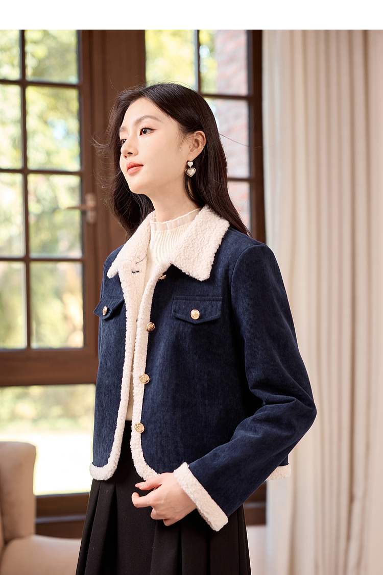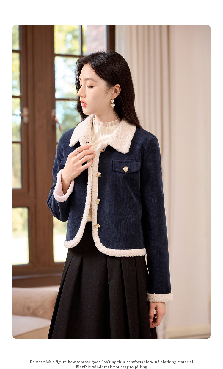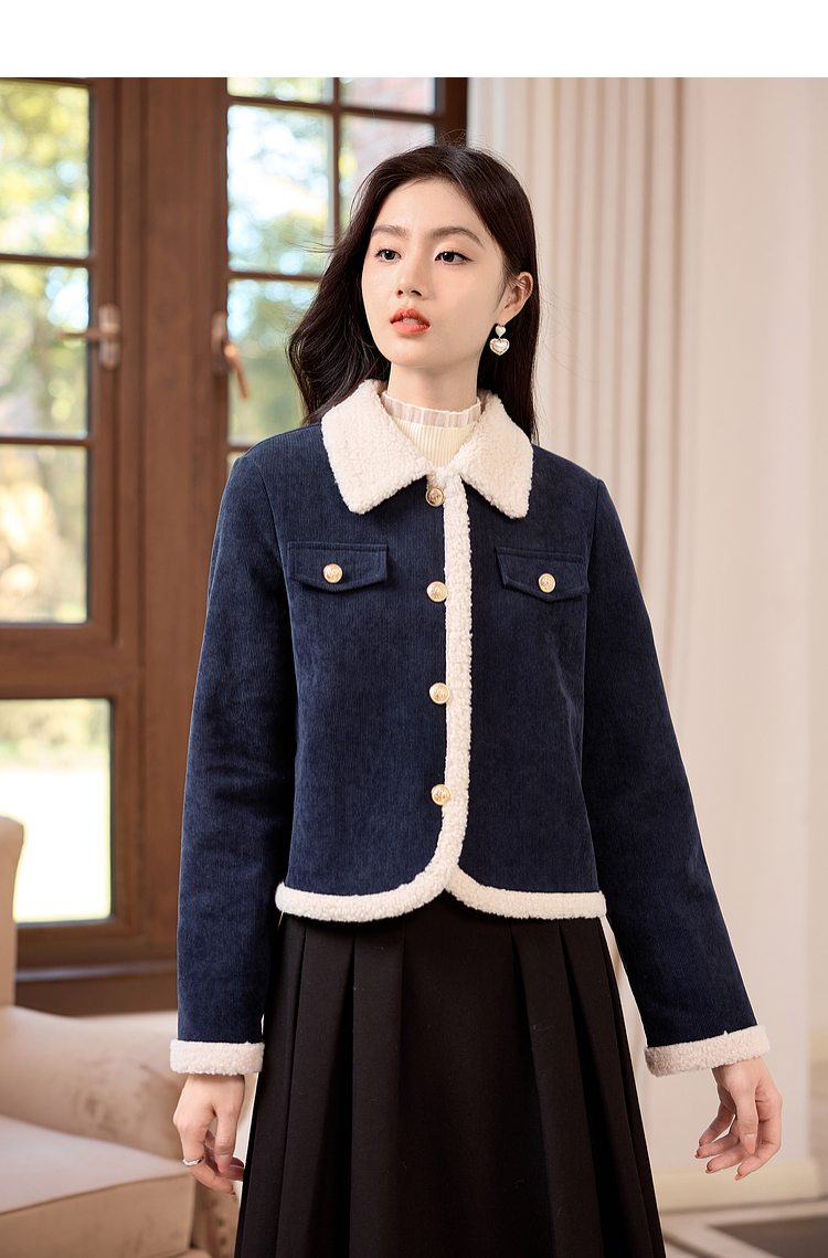 【年货节】熙世界2025冬季新款小香风灯芯绒仿羊羔毛外套加厚短款翻领上衣