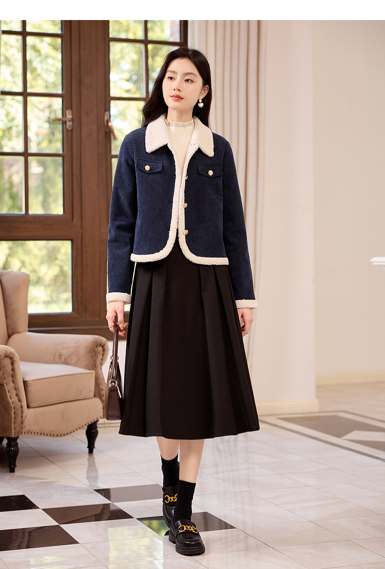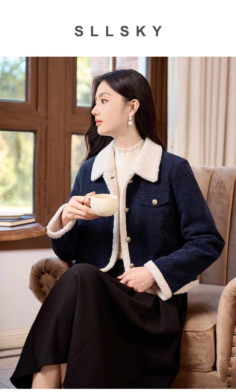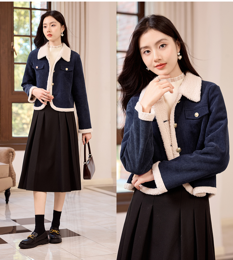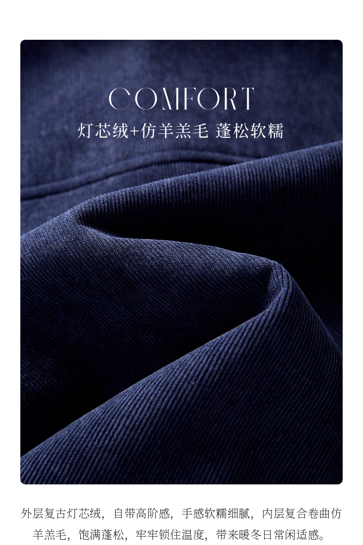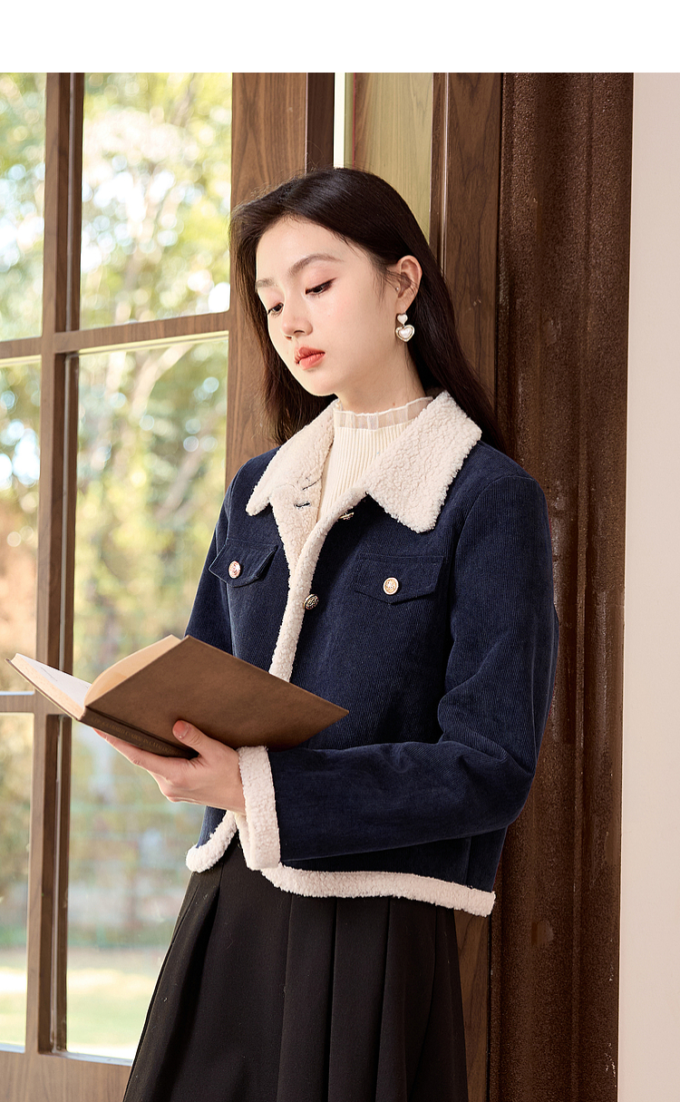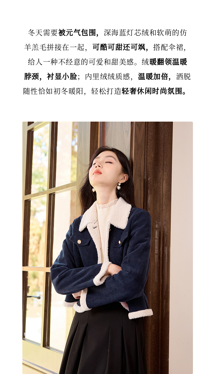【年货节】熙世界2025冬季新款小香风灯芯绒仿羊羔毛外套加厚短款翻领上衣