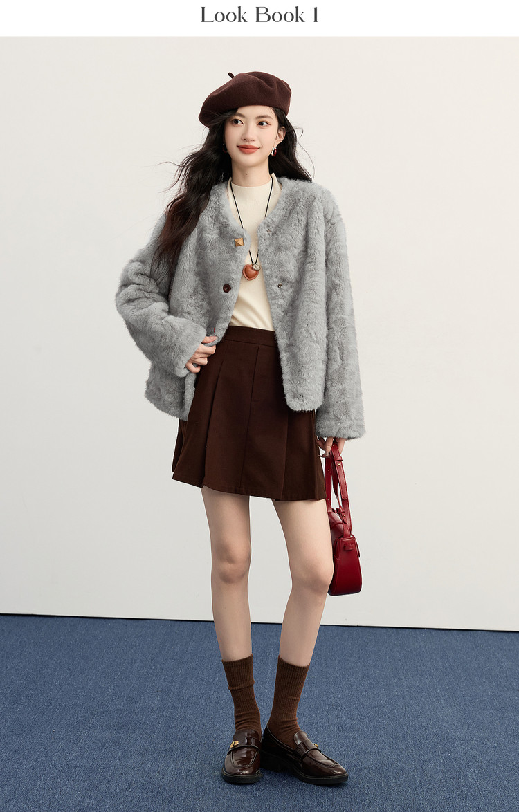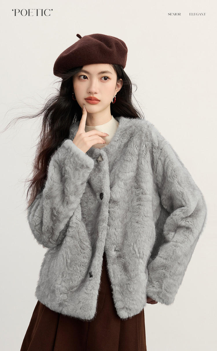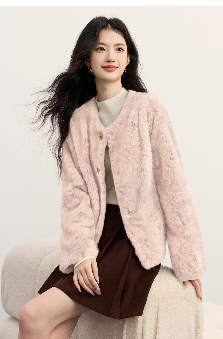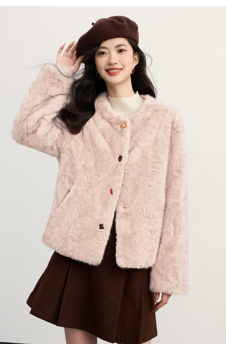 【年货节】熙世界2025冬装新款环保皮草毛毛外套女皮毛一体仿貂毛绒短款大衣