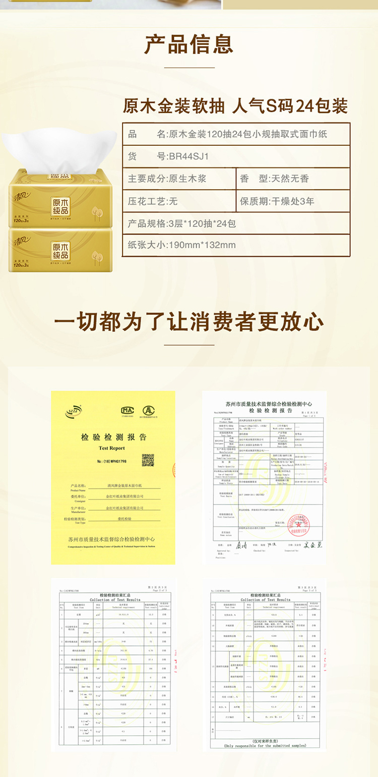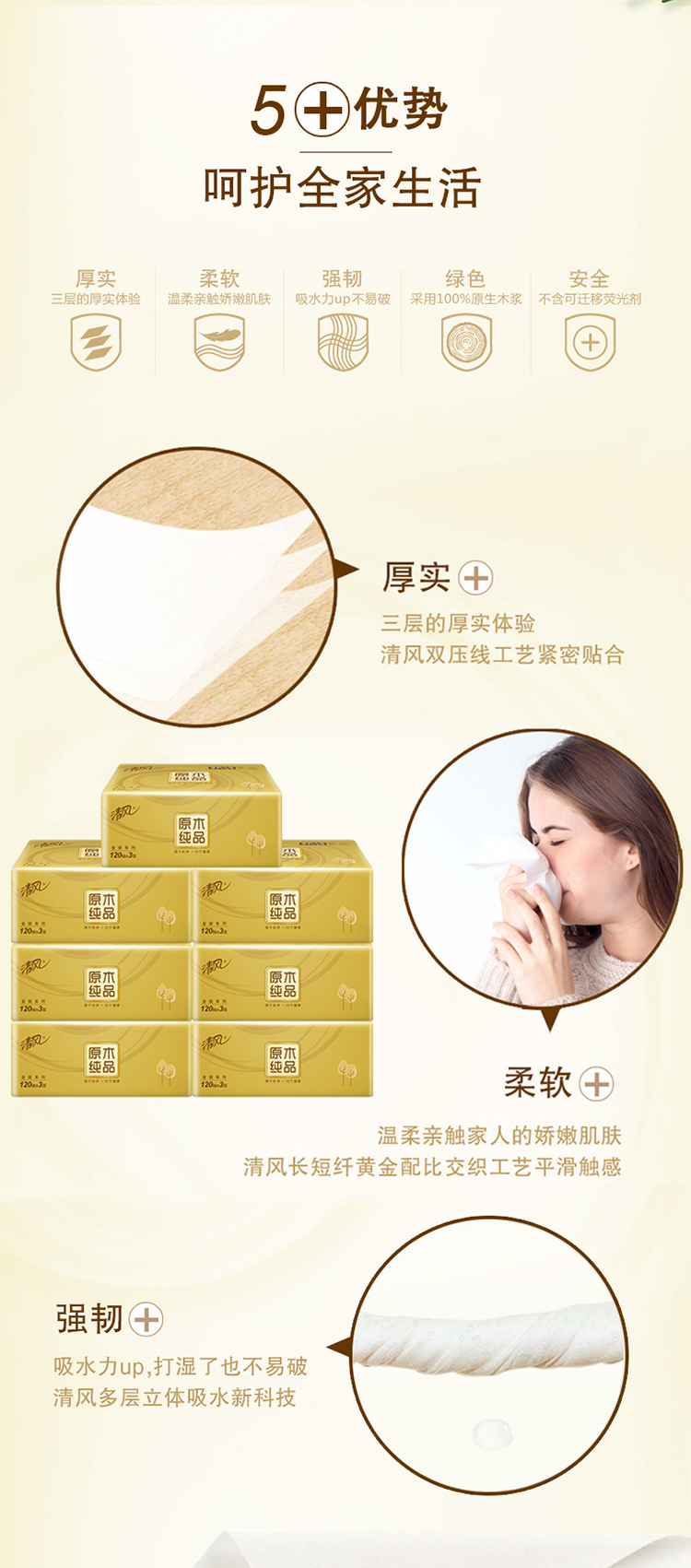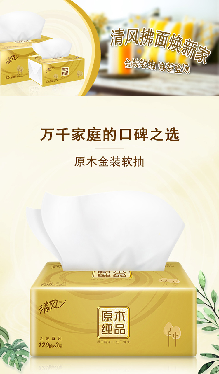 清风原木金装系列 120抽抽取式面纸24包(6提/箱)