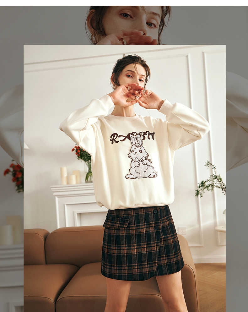 OLrain欧芮儿美式复古卫衣女早春2025年新款时尚宽松加绒套头衫