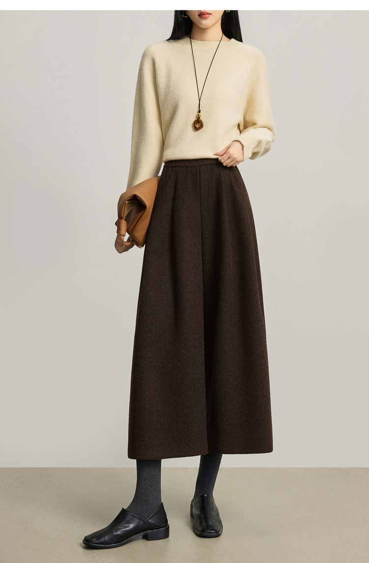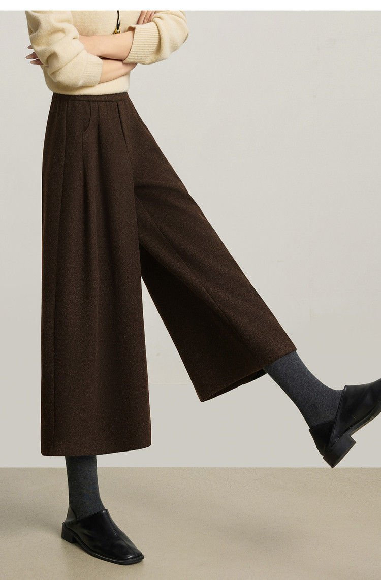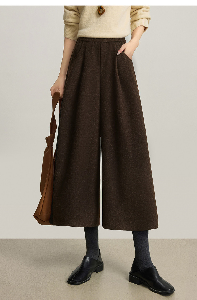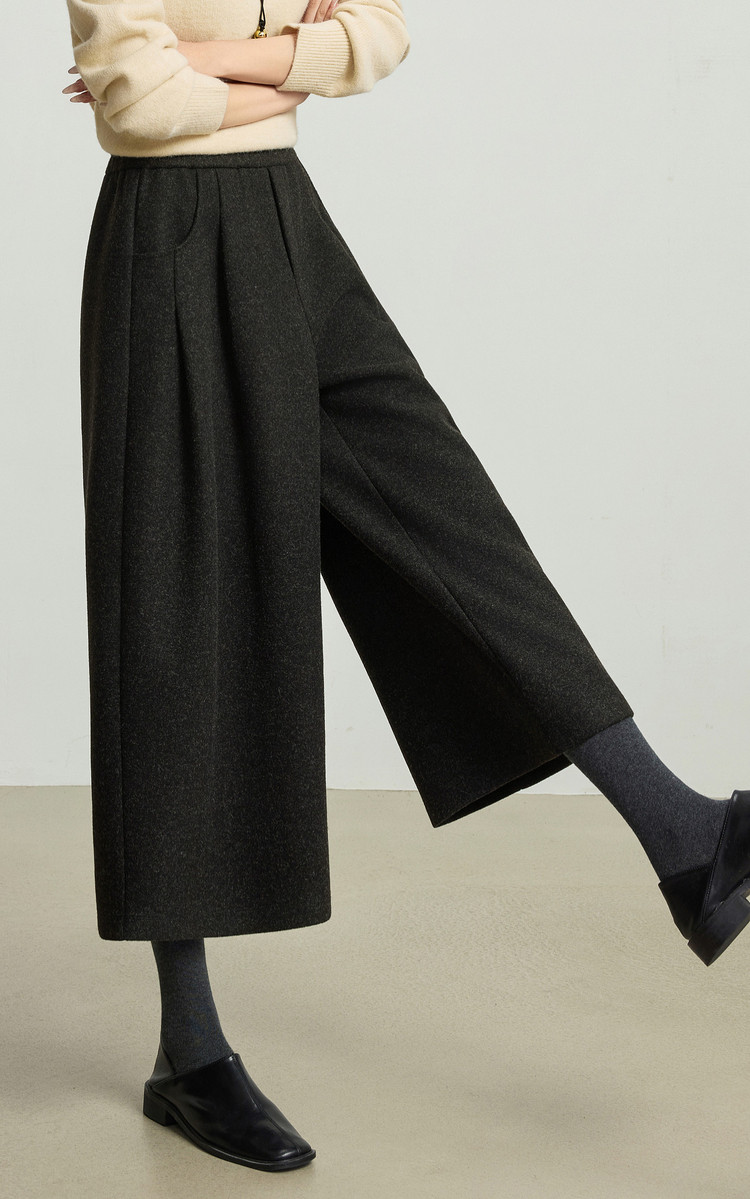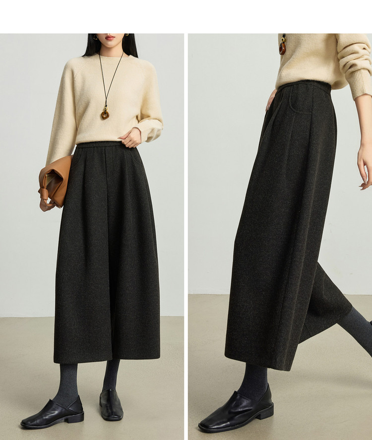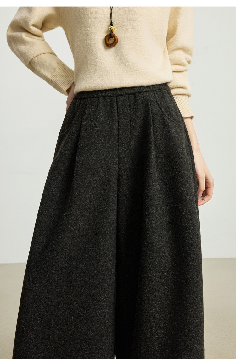 【12/24新品6.5折】熙世界黑灰色八分毛呢直筒裤女2025秋冬加厚小个子休闲高腰阔腿裤