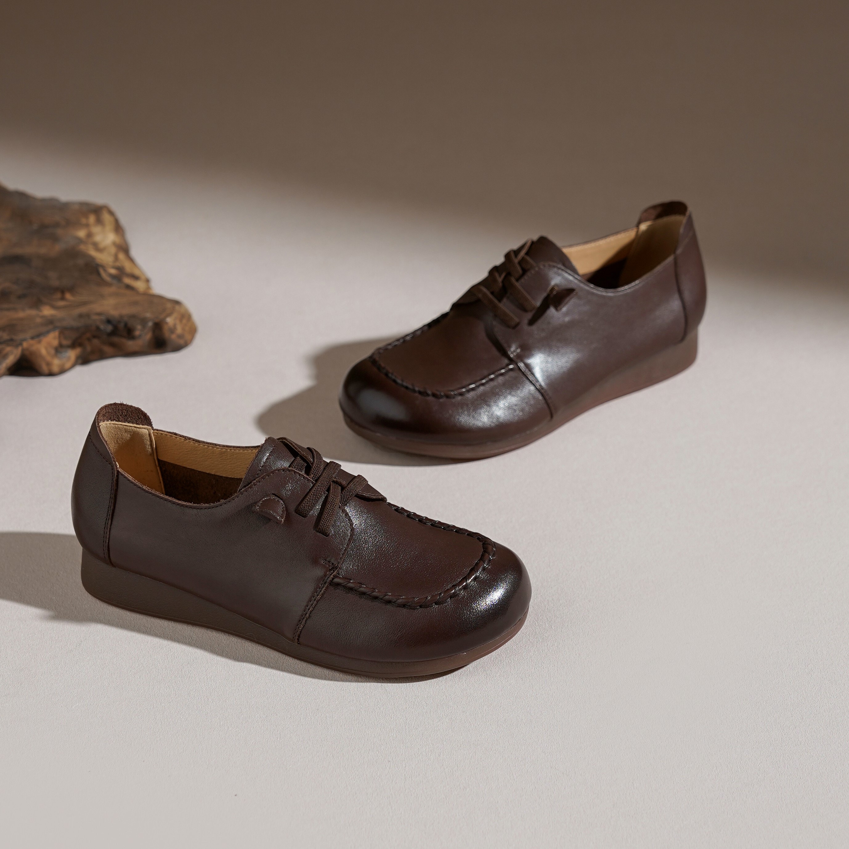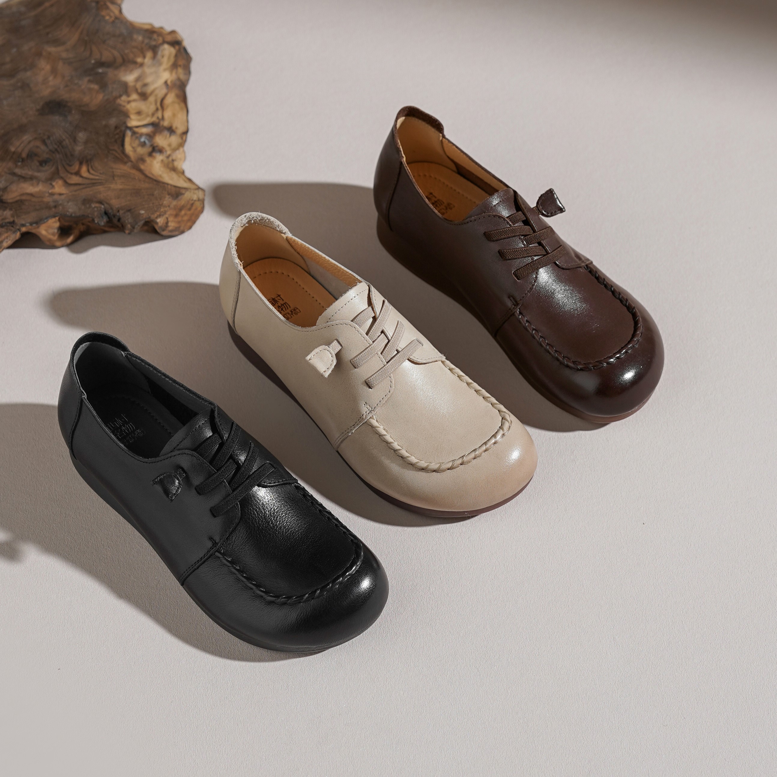 【牛皮革】西村名物2026年春季新款舒适小坡跟系带纯色百搭深口单鞋乐福鞋X26AM17561