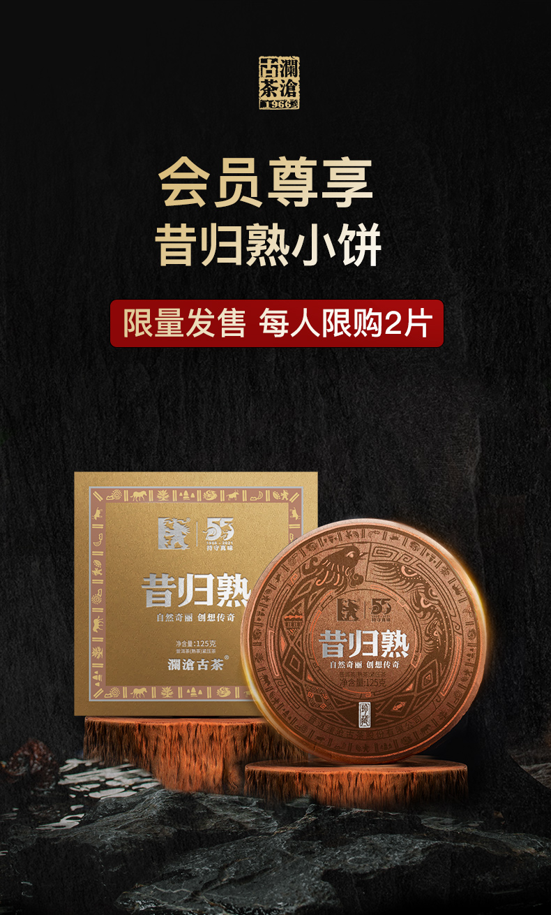 澜沧古茶2021年昔归熟茶小饼125g/片