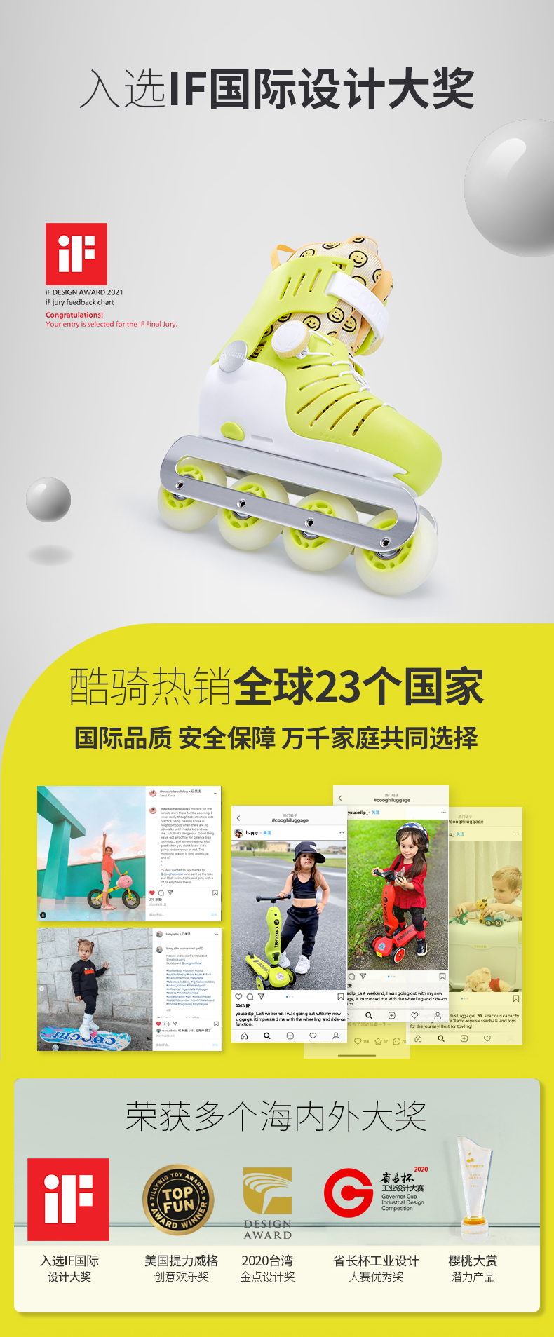 【品牌直发】COOGHI酷骑儿童轮滑鞋初学者专业溜冰滑冰旱冰滑轮鞋男女孩3-8岁