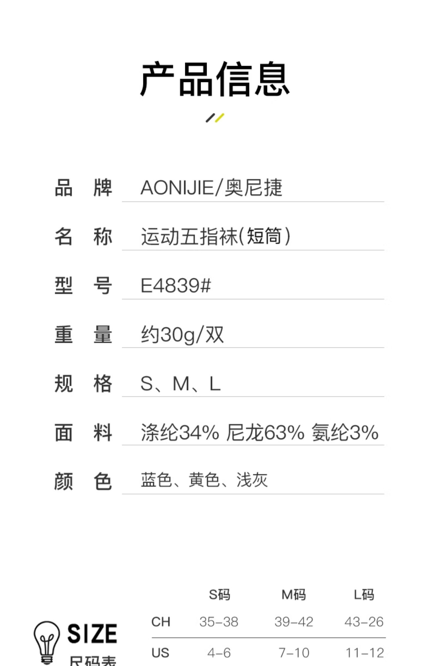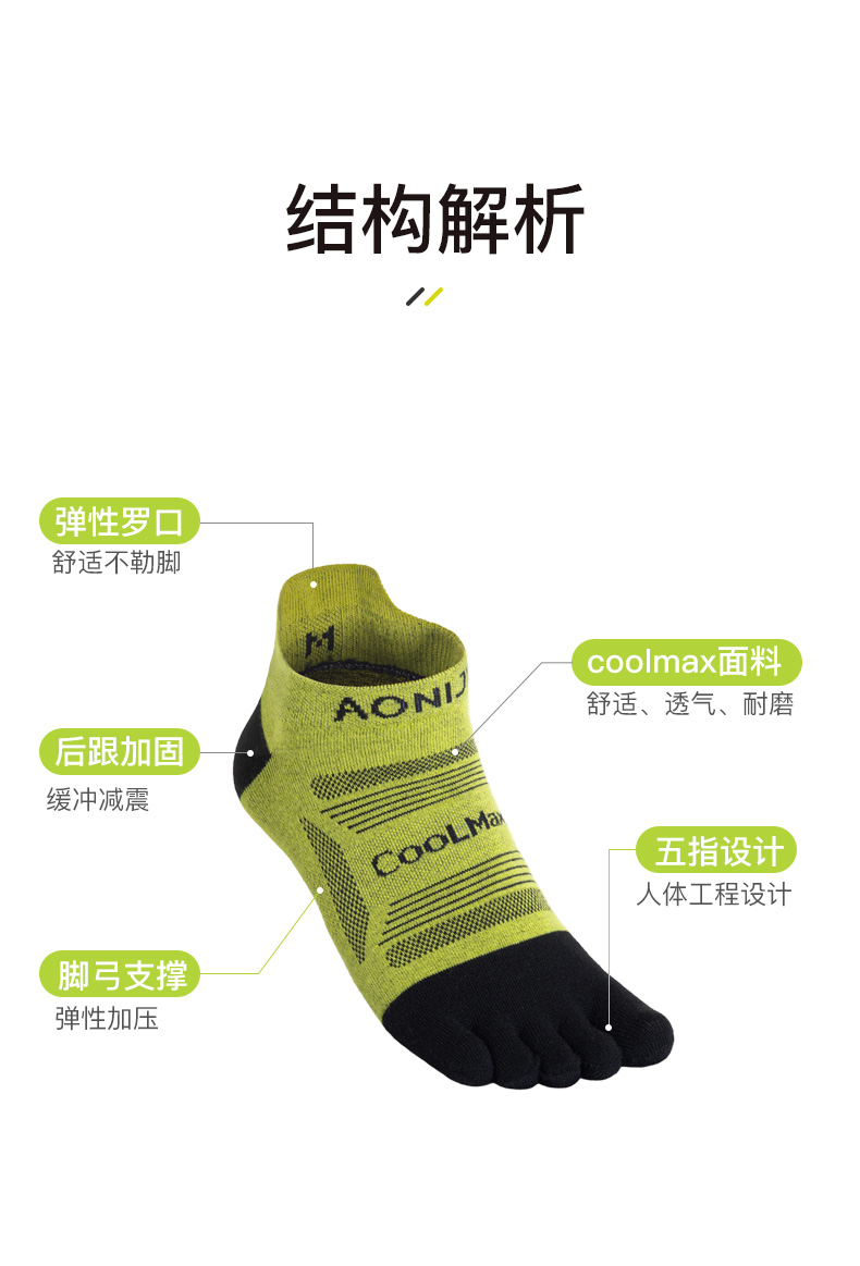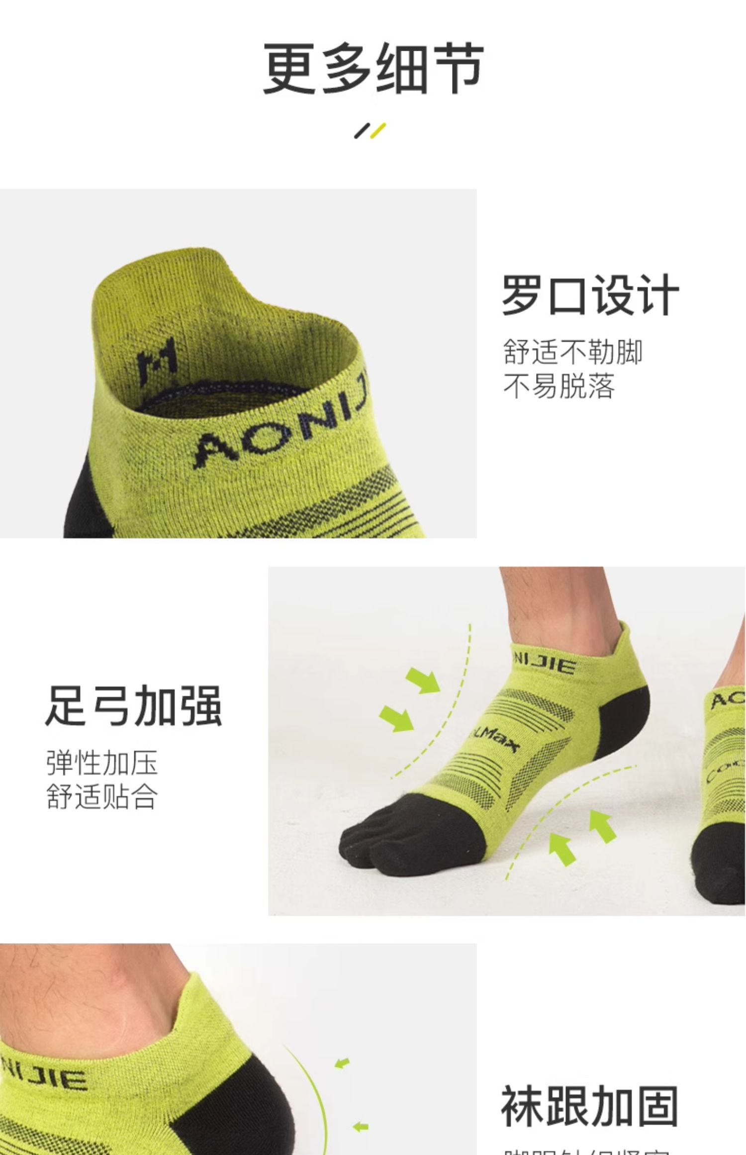 奥尼捷运动短筒五指袜女速干户外马拉松分趾越野徒步跑步袜子男款e4839