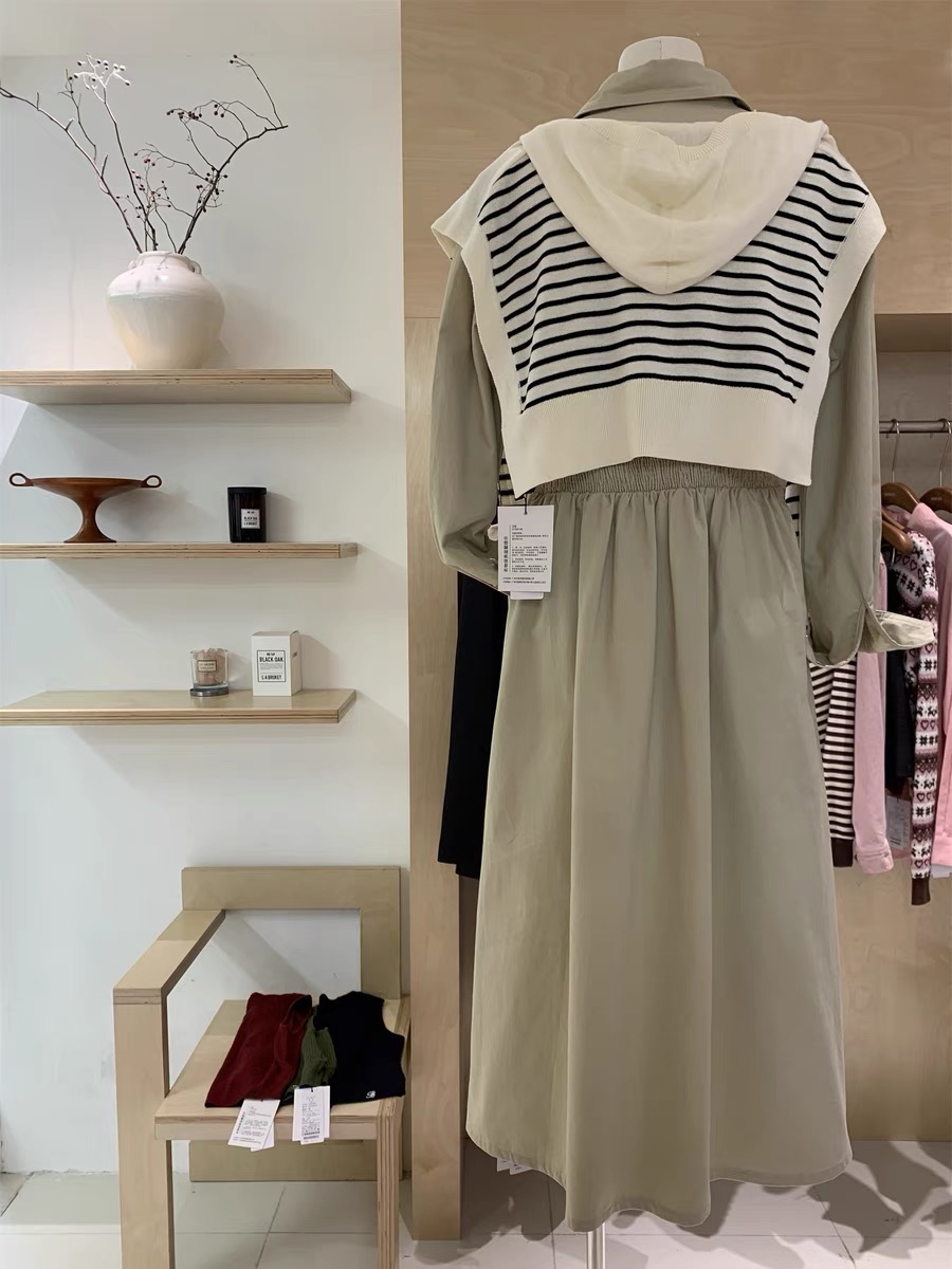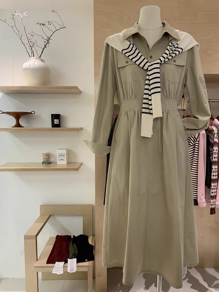 8181 # 浅卡其 S M polo收腰连衣裙怎么样都不会出错 可拆卸条纹披肩 让整件裙子不再单调 恰到好处的收腰位置秒让小肚腩消失
