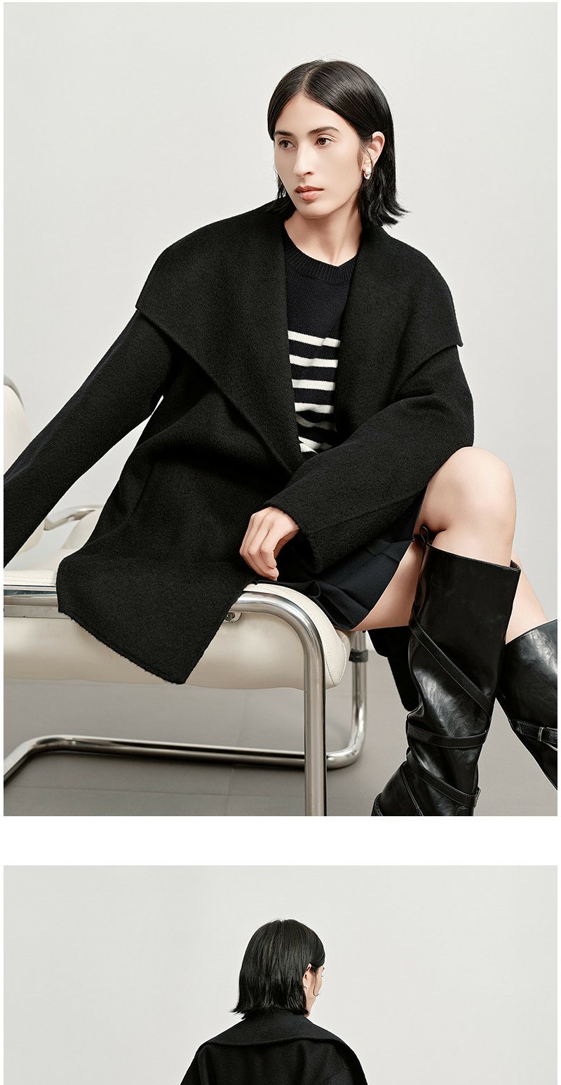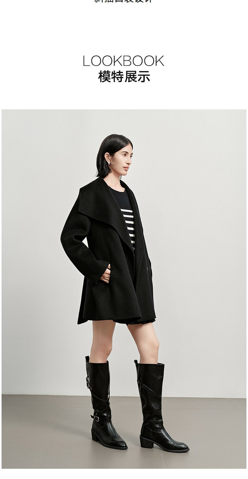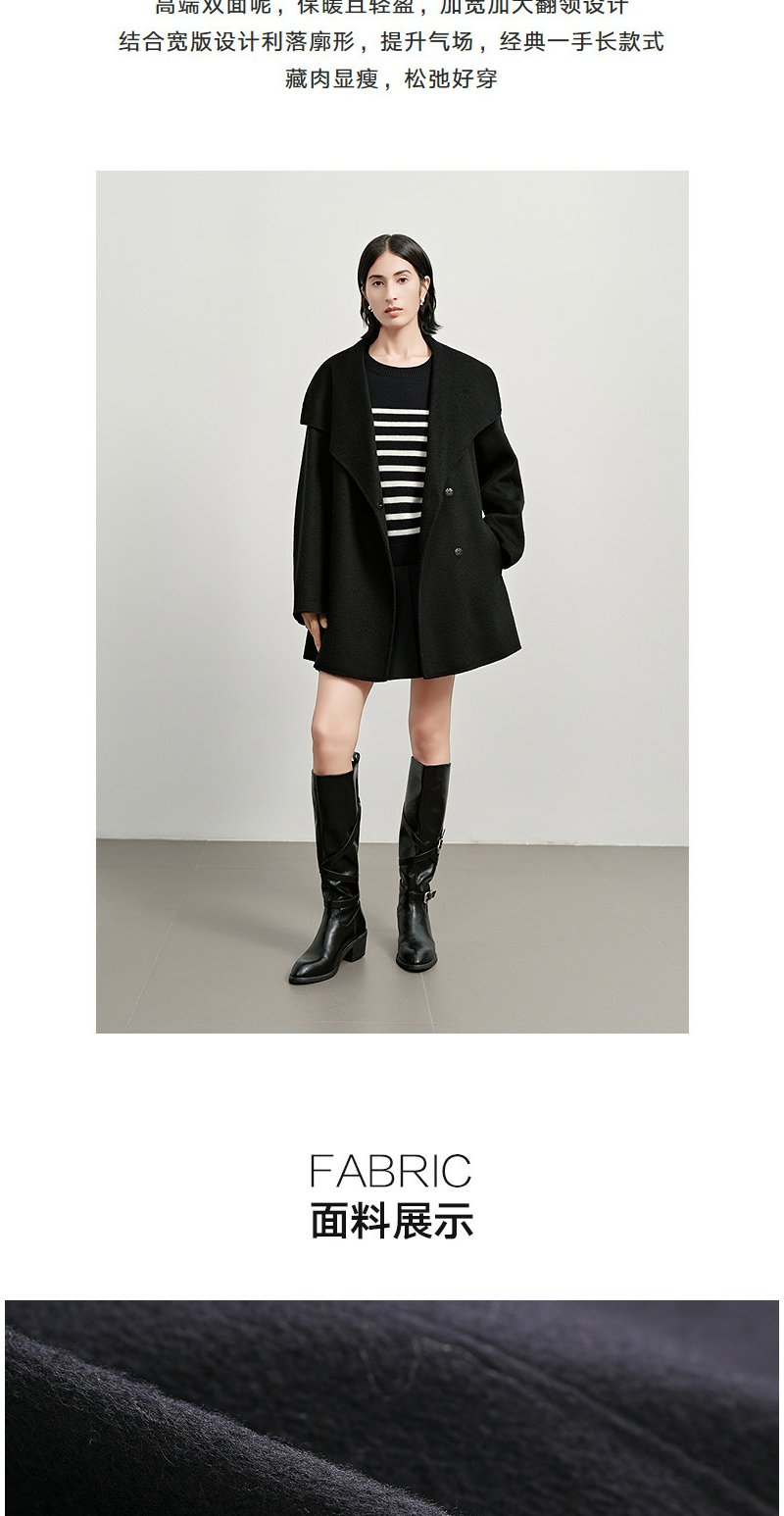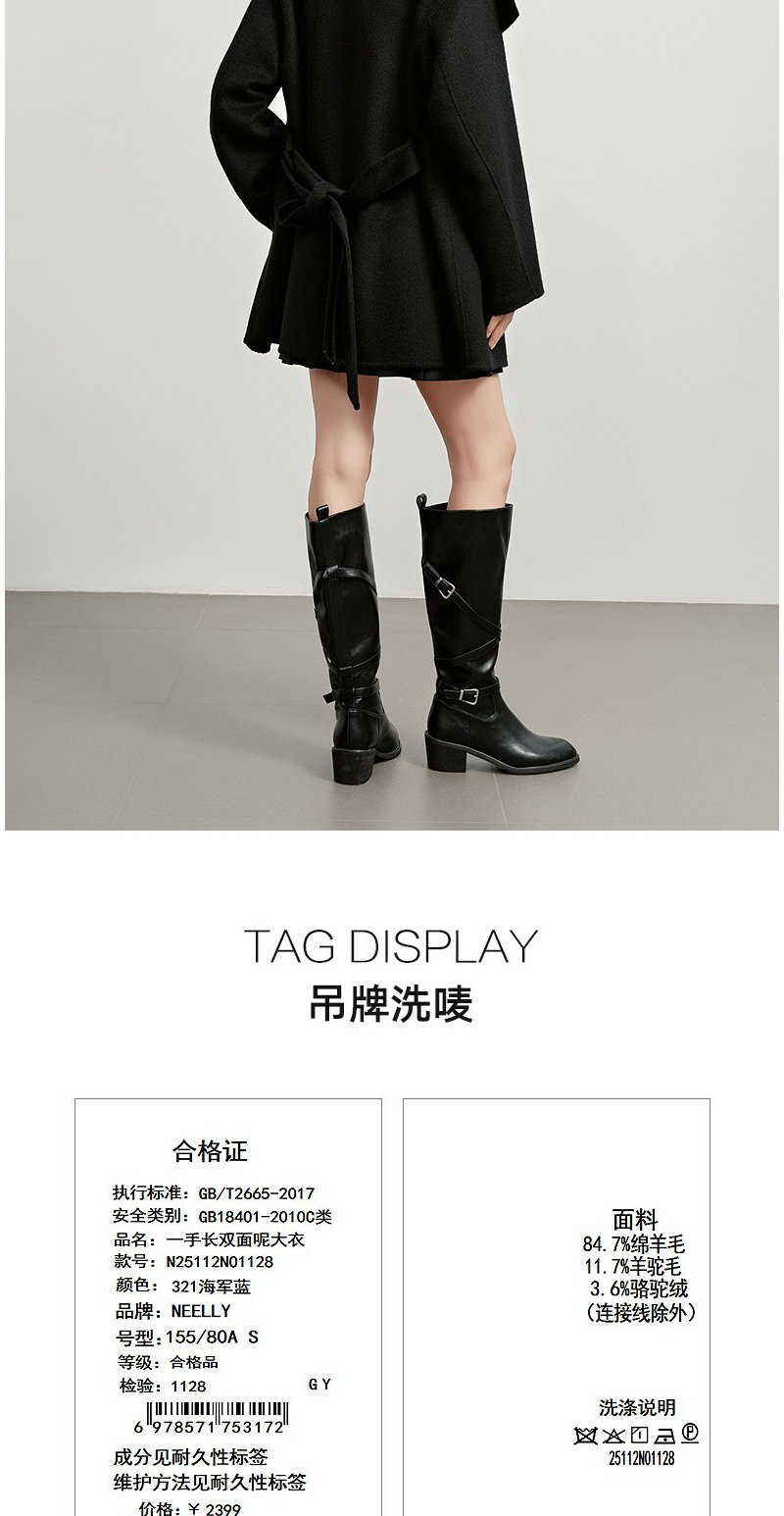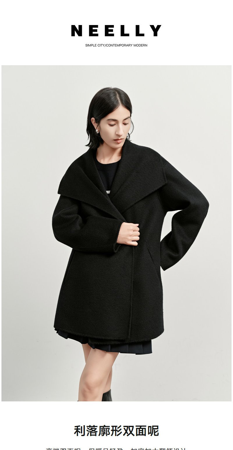 NEELLY纳俪商场同款冬季新款时尚高级感双面呢女羊毛廓形保暖大衣N25112N01128