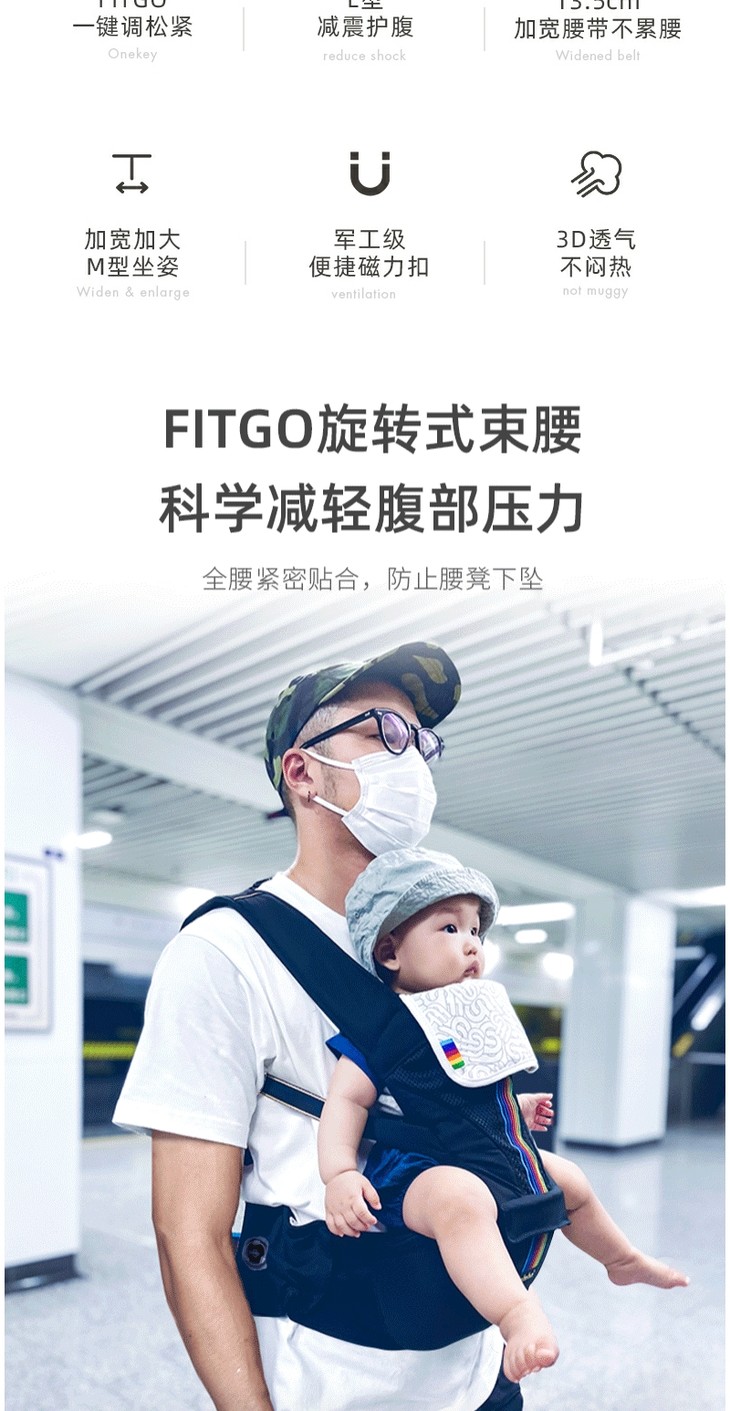 bebebus腰凳 轻享家 婴儿背带宝宝夏轻便四季前后两用抱式抱娃神器