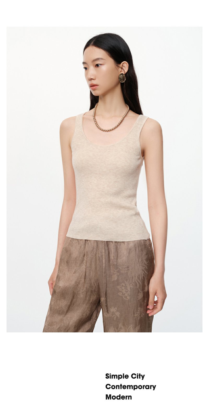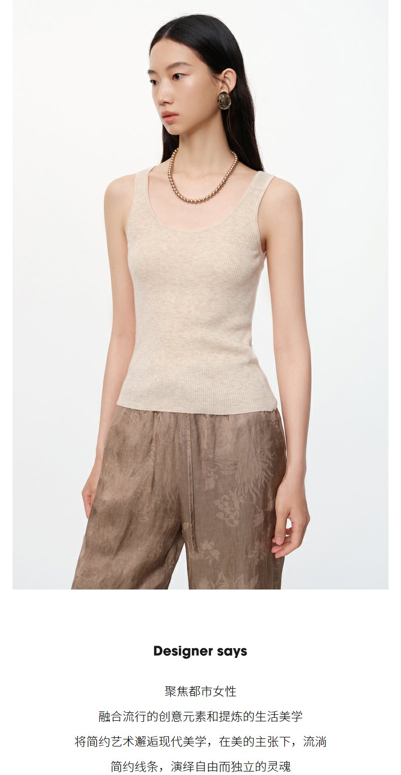 NEELLY纳俪商场同款春季新款无袖修身针织背心女圆领打底内搭上衣N25024A04575