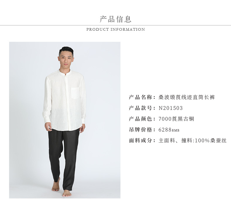 TANGY Collection/天意精品春夏新品男士桑波缎莨线迹直筒休闲裤