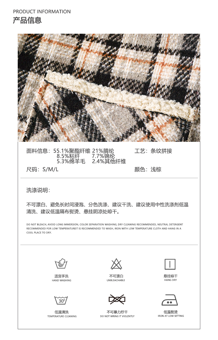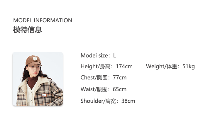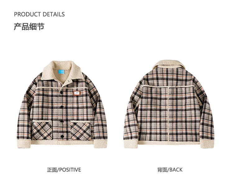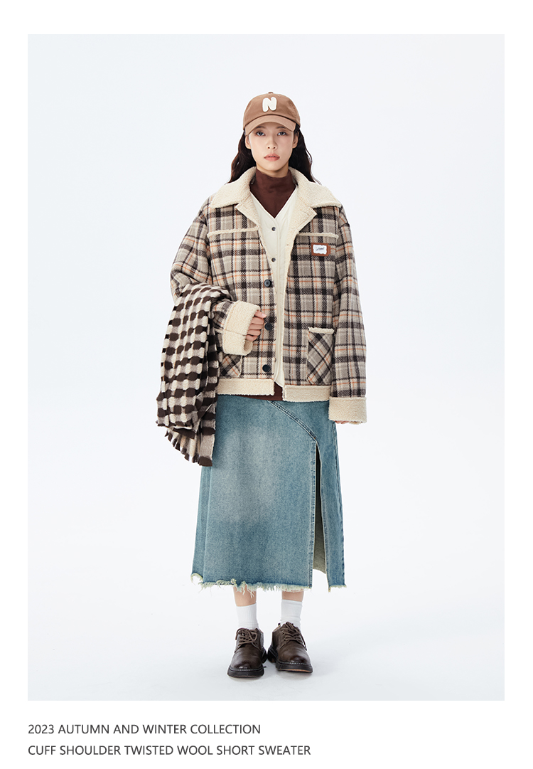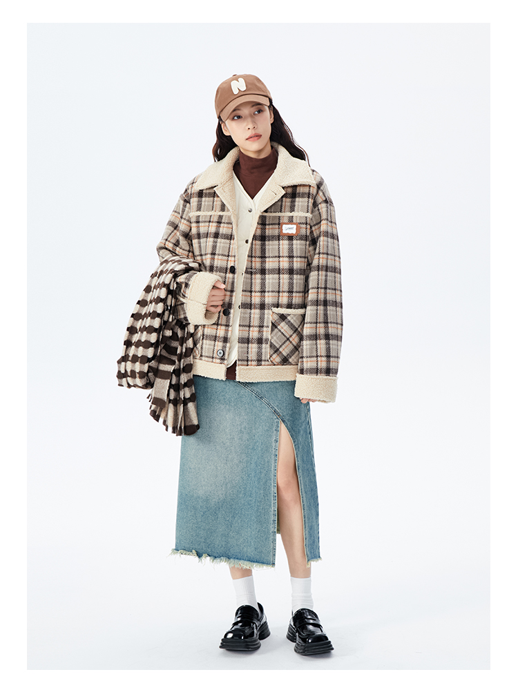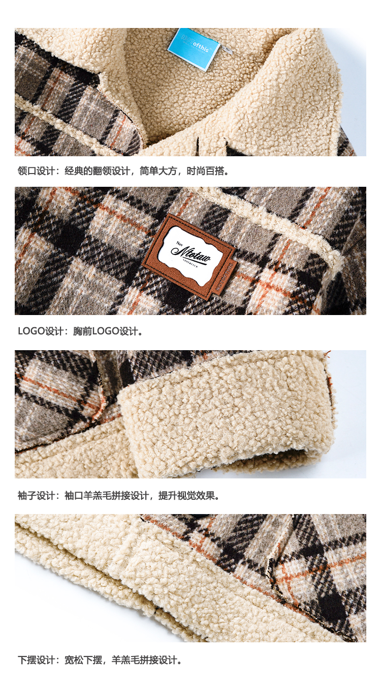 NTOT/NOTMF22276/棕色格纹羊羔毛翻领外套
