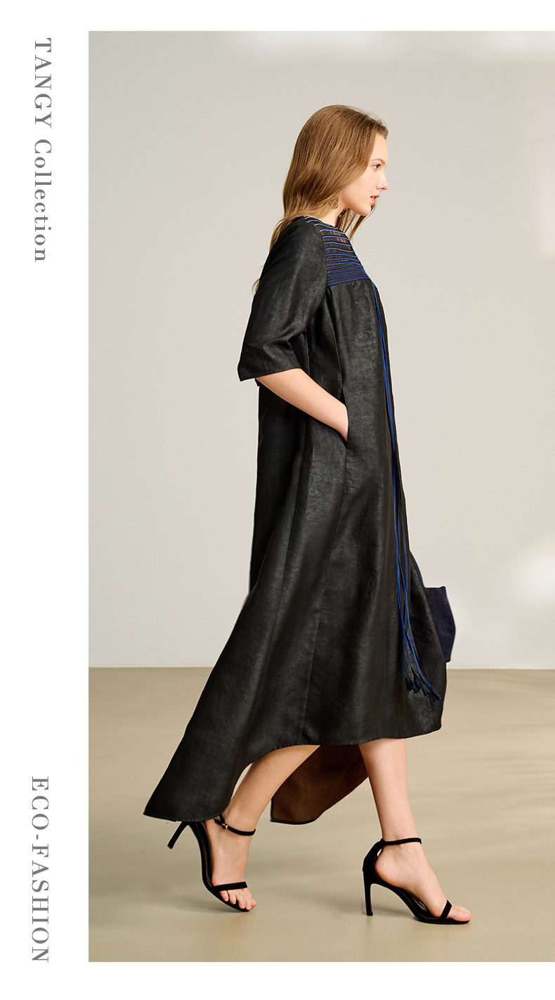 TANGY Collection/2025天意精品春季新品中国风女士莨绸连衣裙