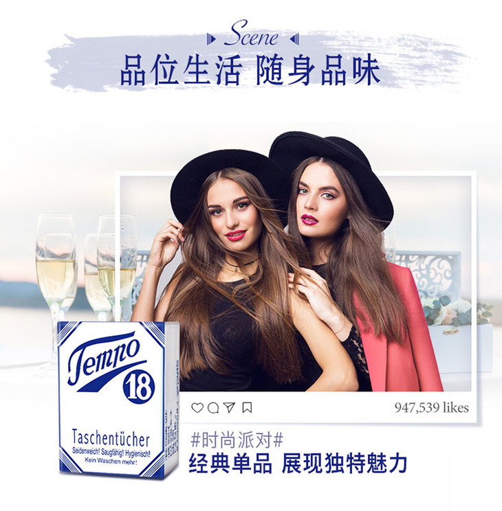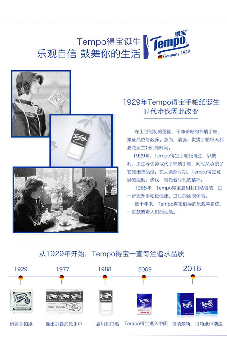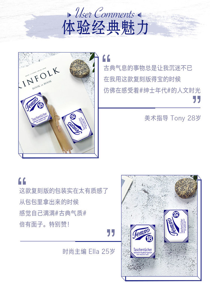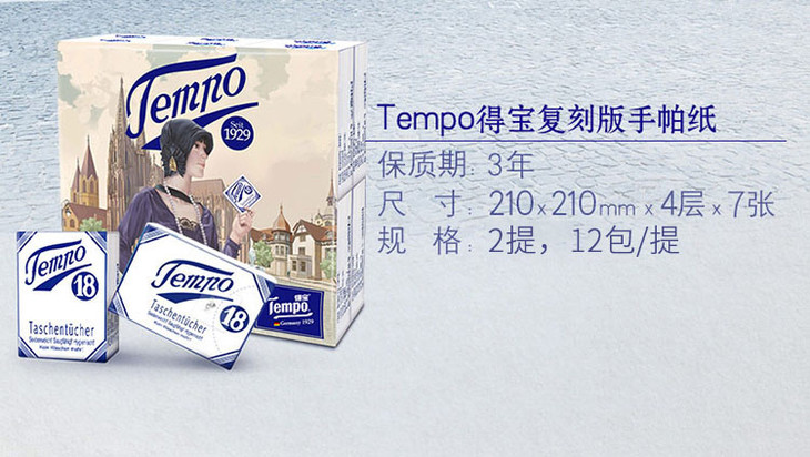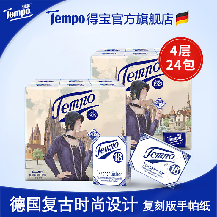 Tempo得宝手帕纸无香复刻版4层24包纸巾小包便携装手帕纸餐巾纸