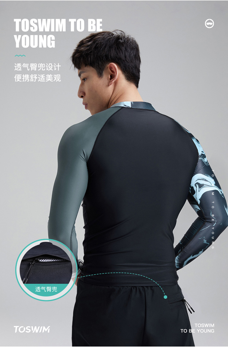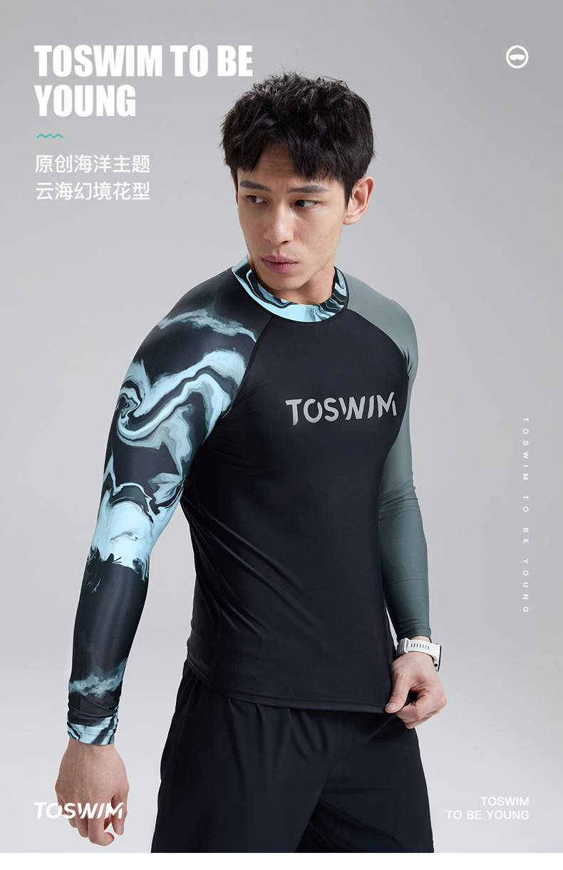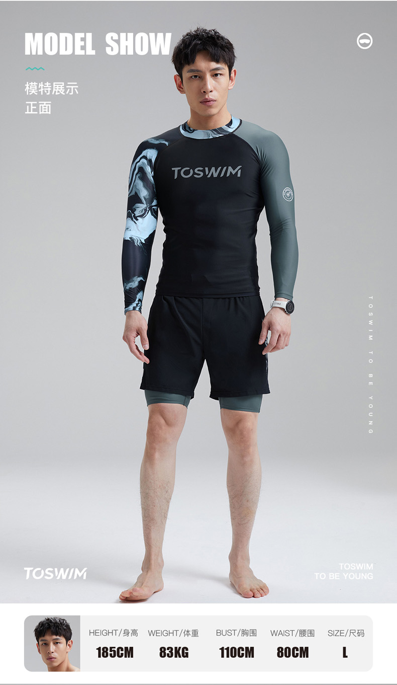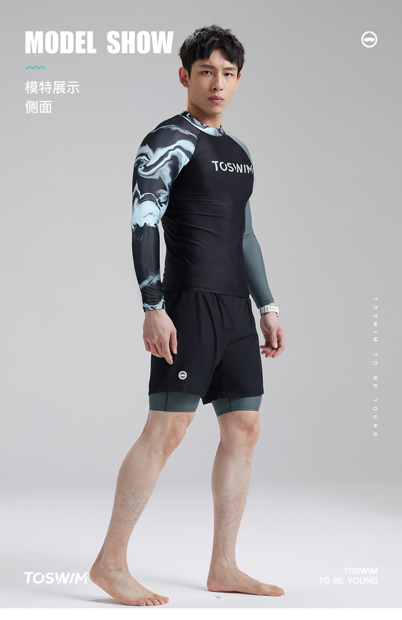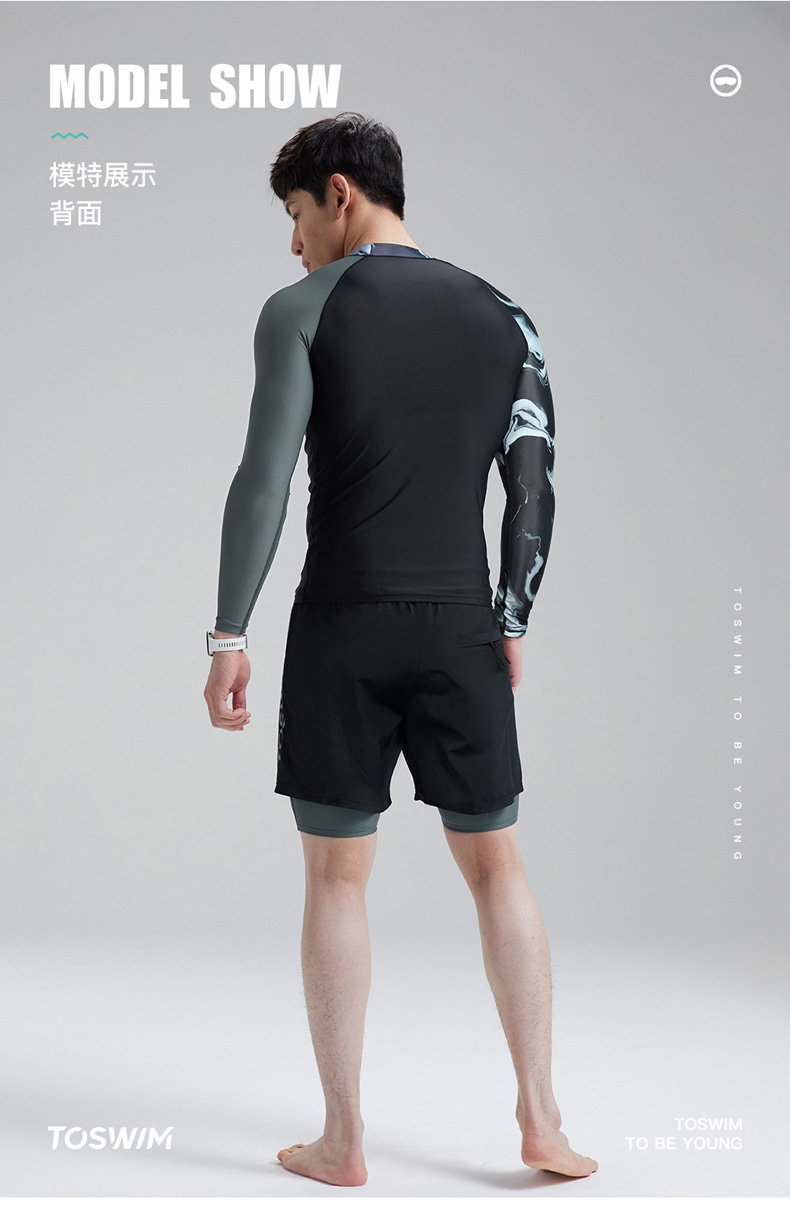 TOSWIM大码长袖分体防晒男士男款夏季紧身平角潜水五分度假游泳裤