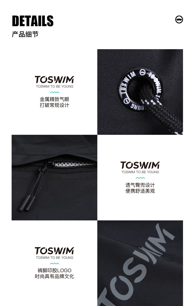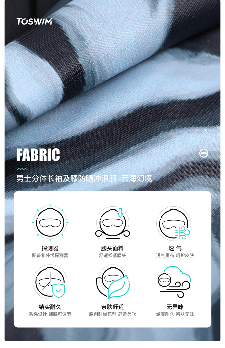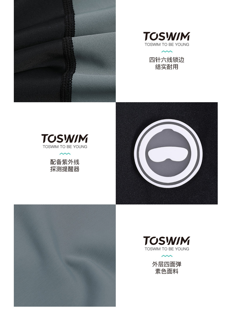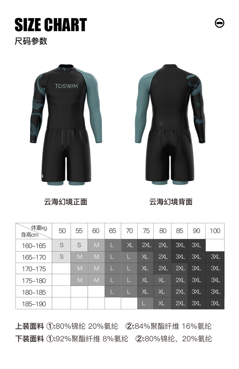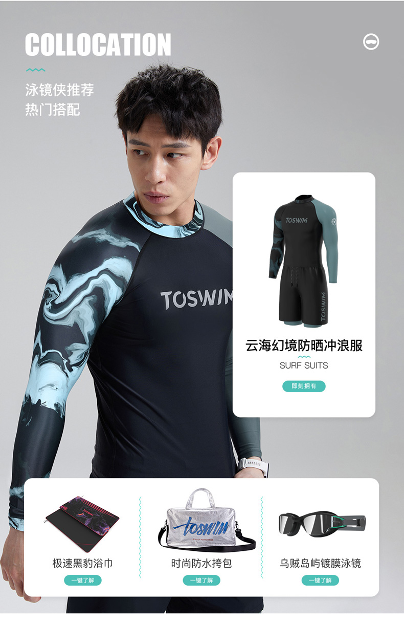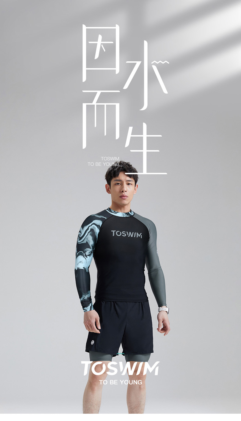 TOSWIM大码长袖分体防晒男士男款夏季紧身平角潜水五分度假游泳裤