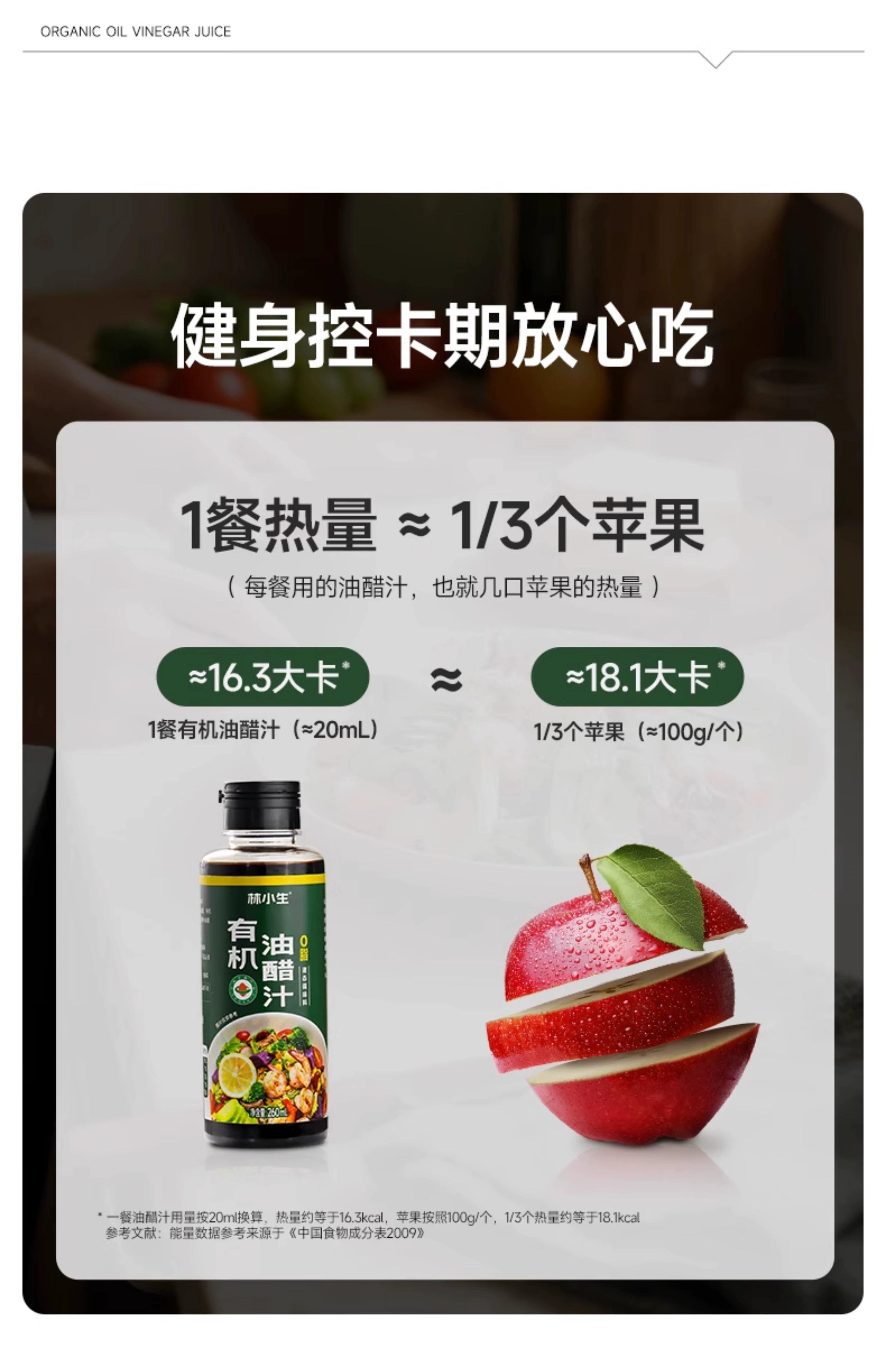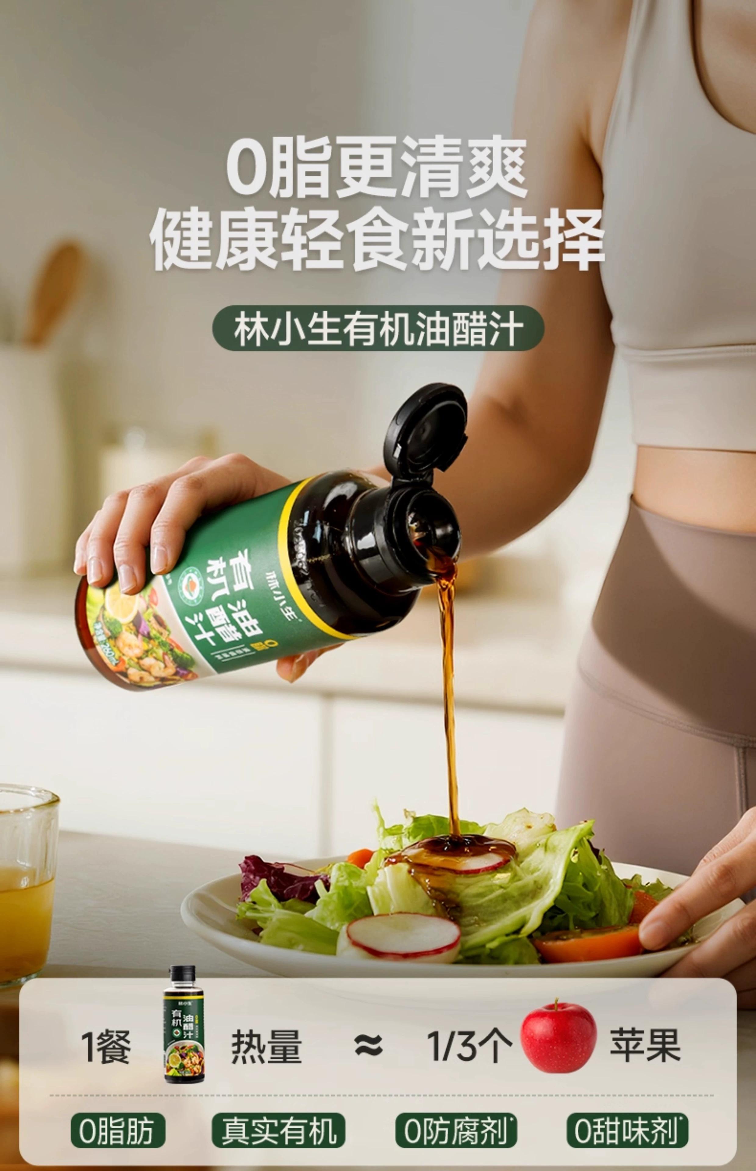 【35.9元到手3瓶!】林小生有机油醋汁260ml*3瓶 精选有机原料0蔗糖0脂肪添加,凉拌百搭料汁 减脂期必备!