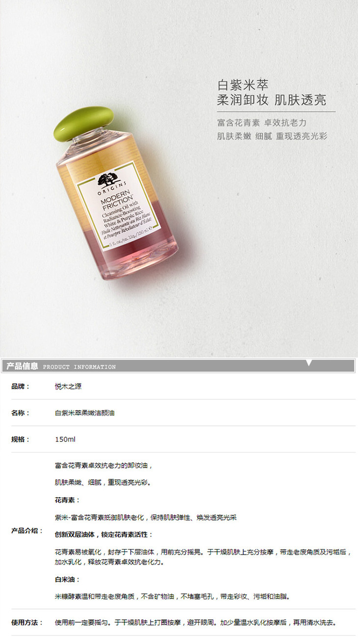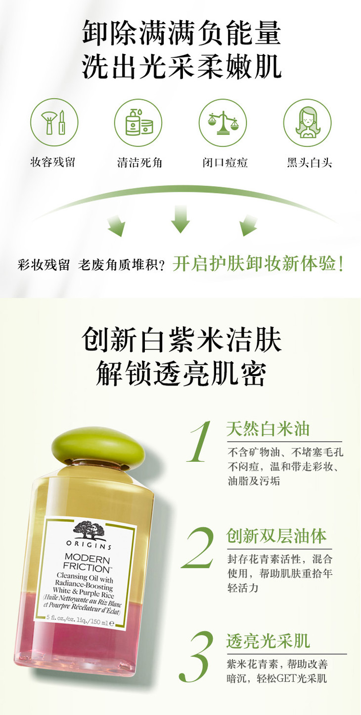 【香港直邮】origins/悦木之源白紫米萃柔嫩洁颜油卸妆油 卸妆 温和不刺激150ml 白紫米萃柔嫩洁颜油150ml