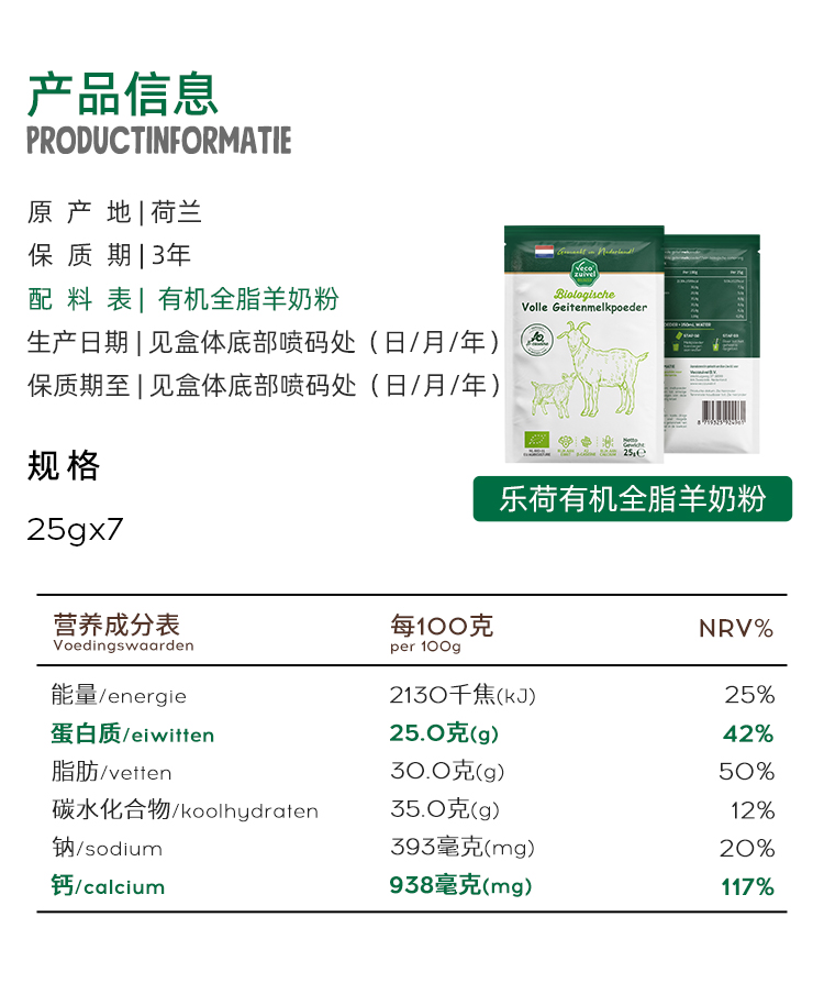荷兰乐荷 有机羊奶粉 25g*5/25g*15