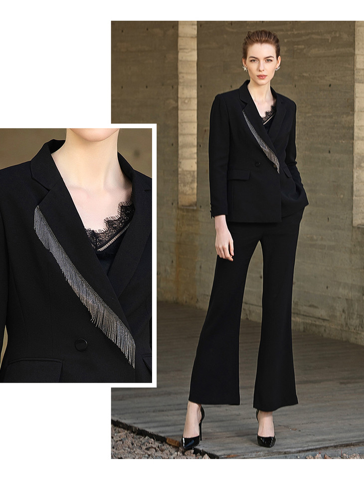 IWY/老钱风粉色丝绒西装套装女秋冬气质通勤职业装阔腿裤两件套J25CP266