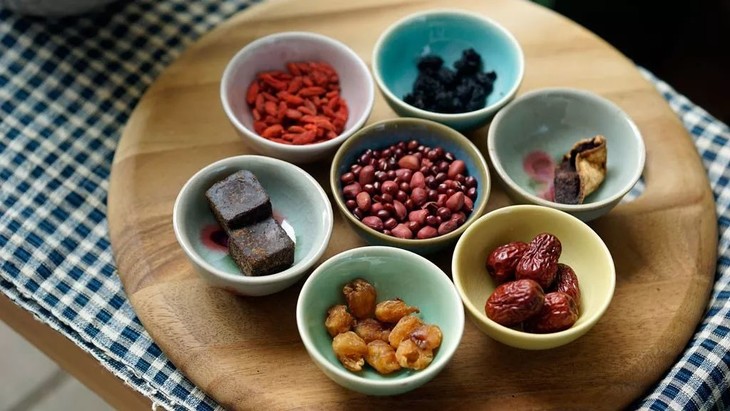 【配料】红皮花生、红豆、红枣、红糖、枸杞、桂圆、桑椹干、陈皮