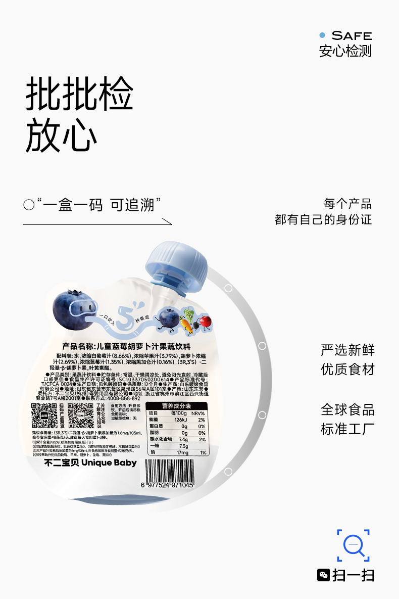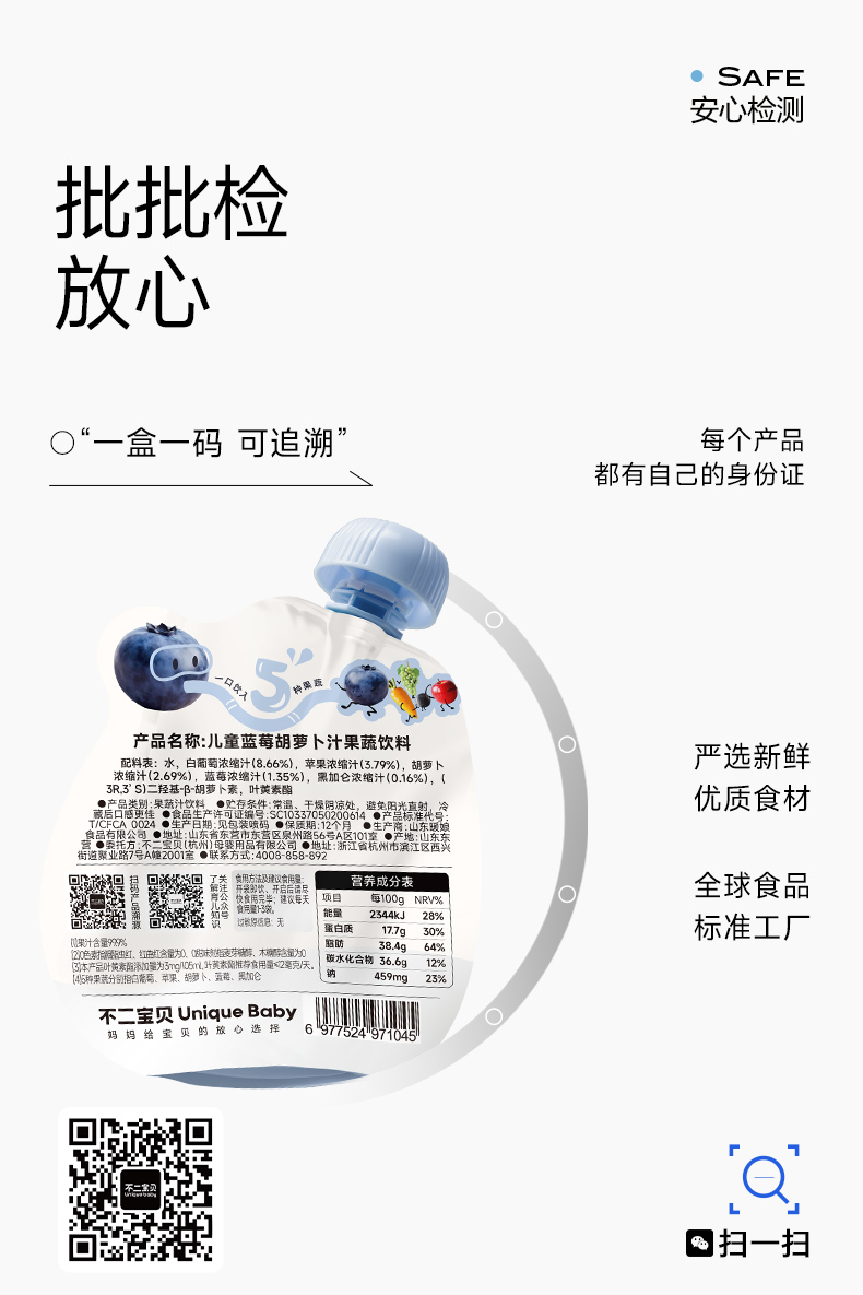 【不二宝贝】儿童蓝莓胡萝卜汁105ml