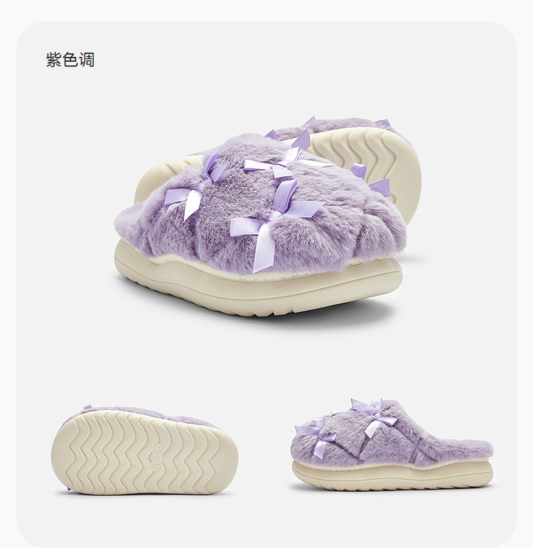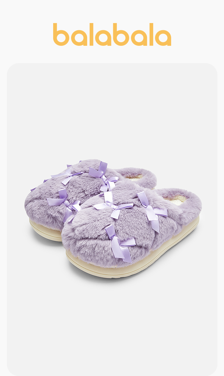 巴拉巴拉儿童棉拖鞋女童宝宝2025新秋冬棉鞋加绒室内家居鞋蝴蝶结