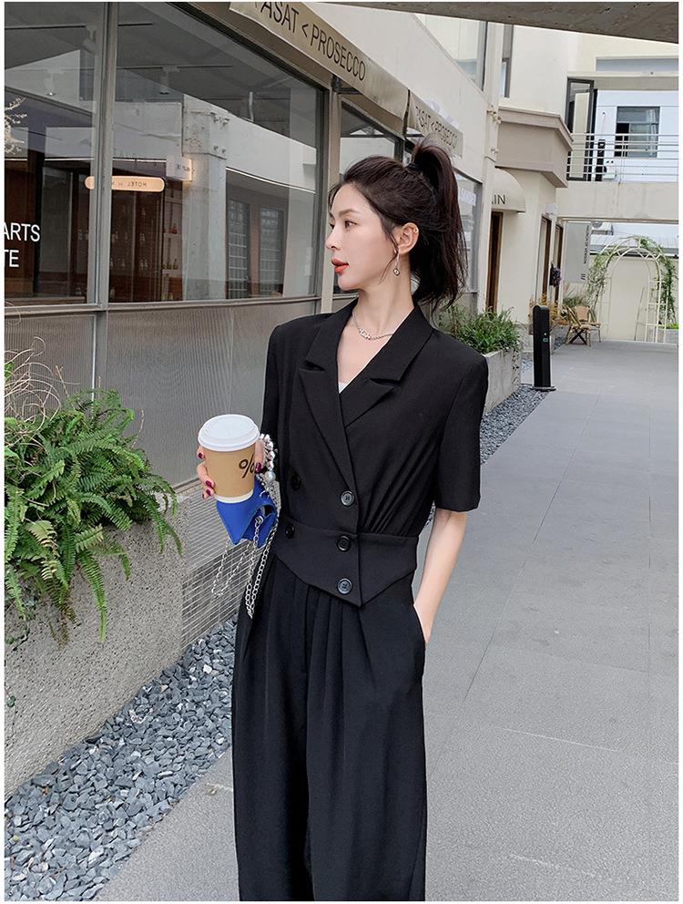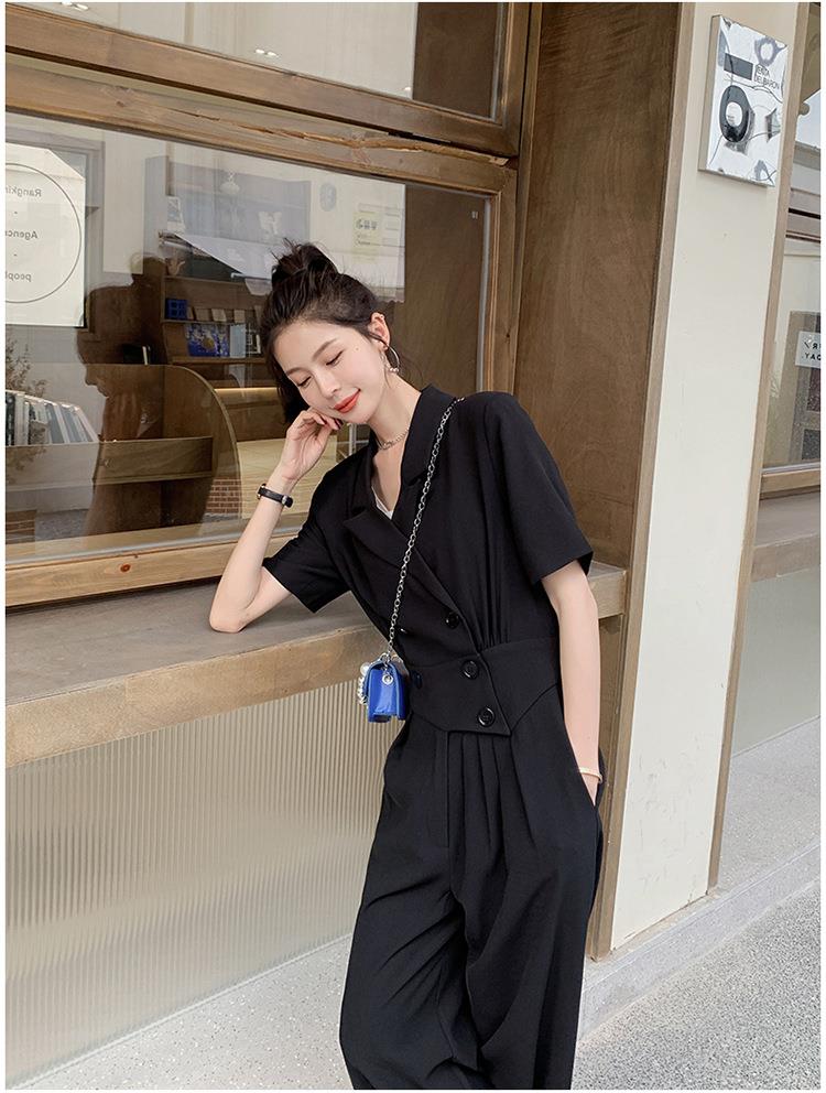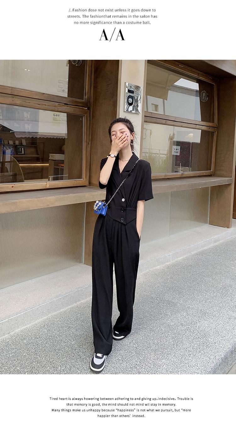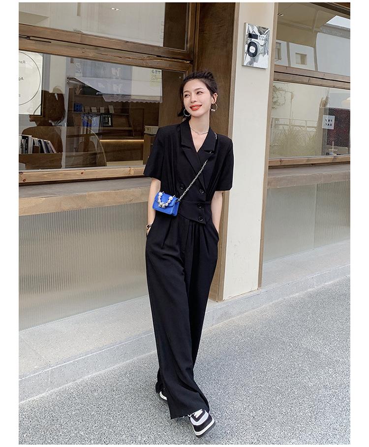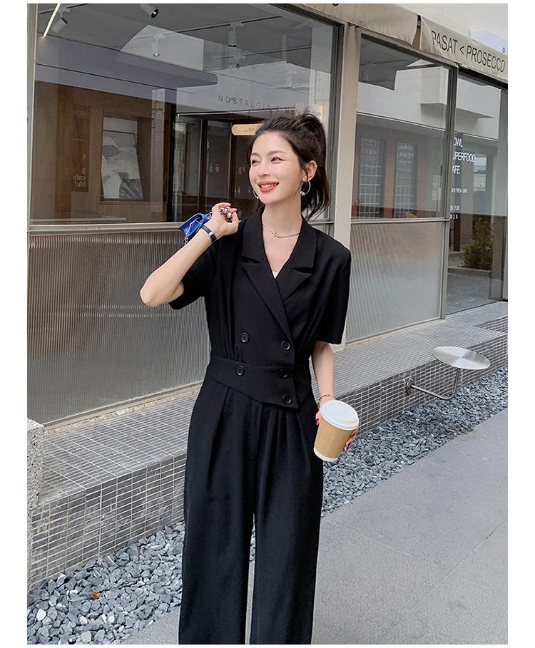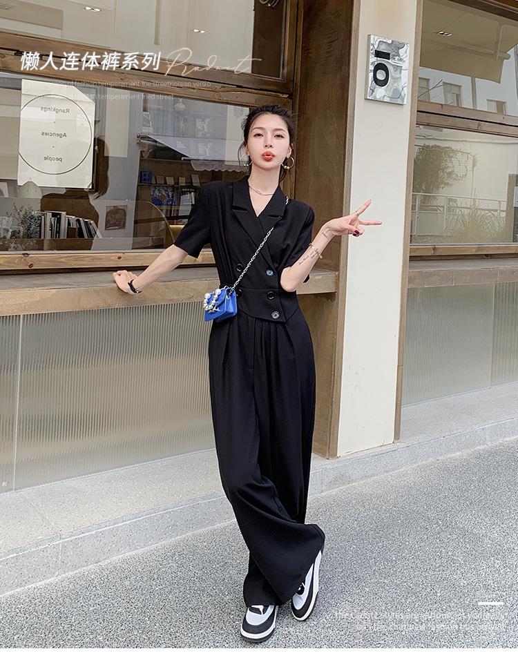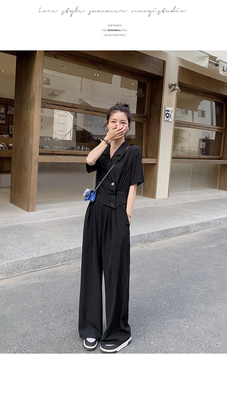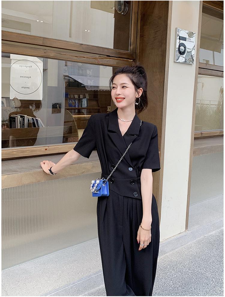 原创短袖西装领连体衣女装2023夏季新款设计感黑色连衣裤连体裤子