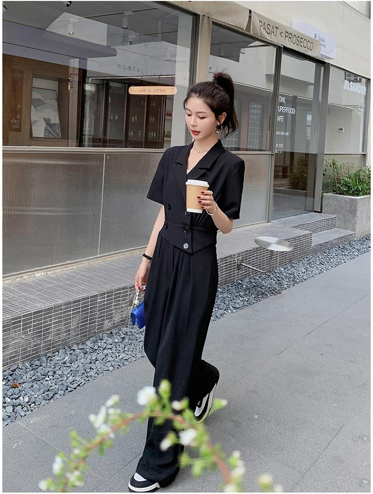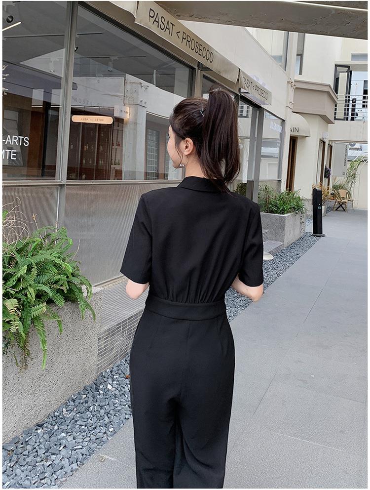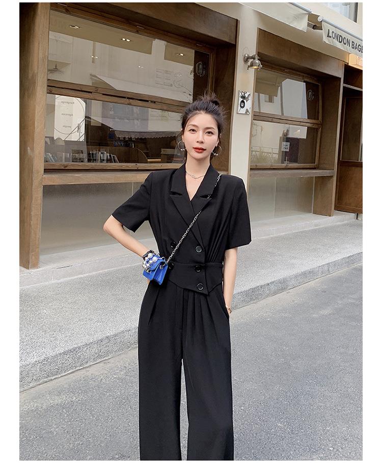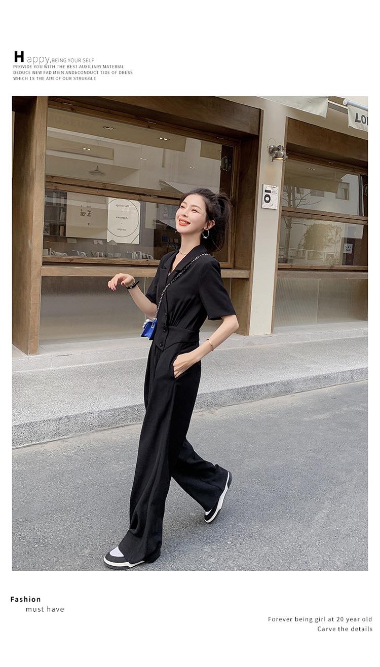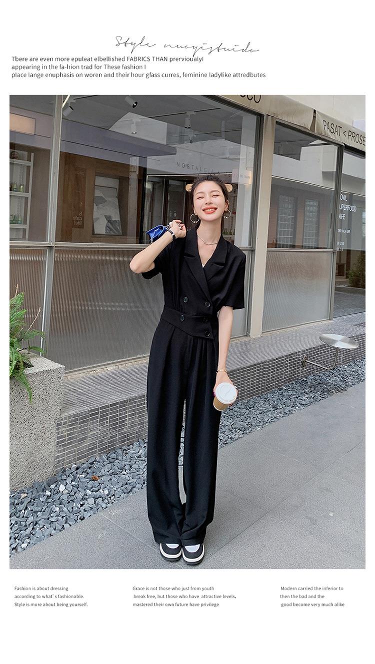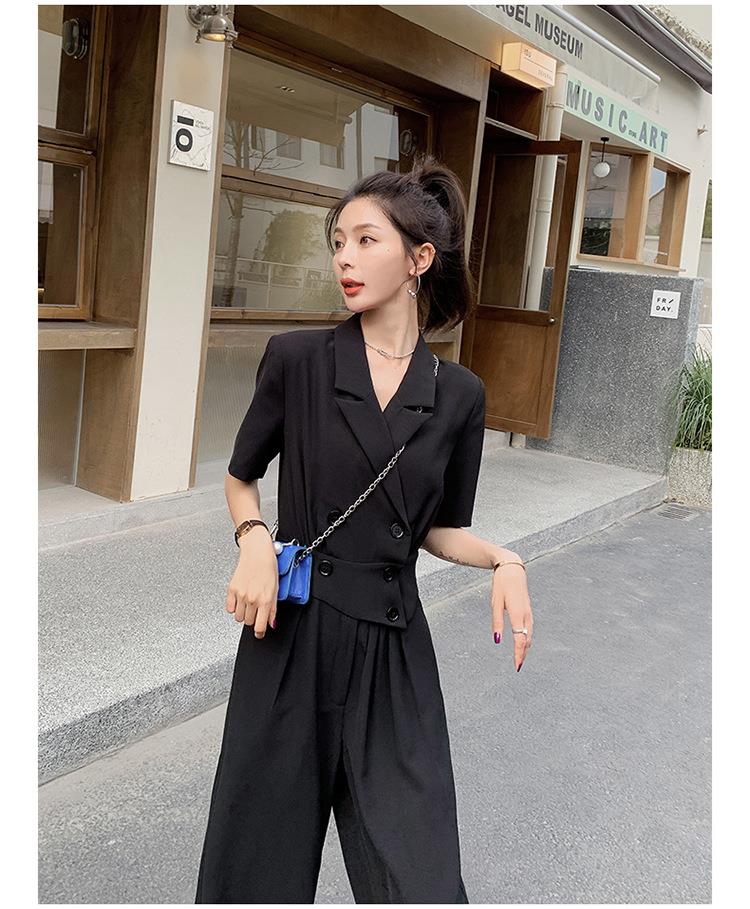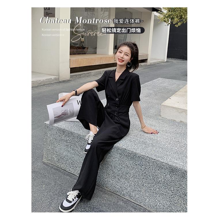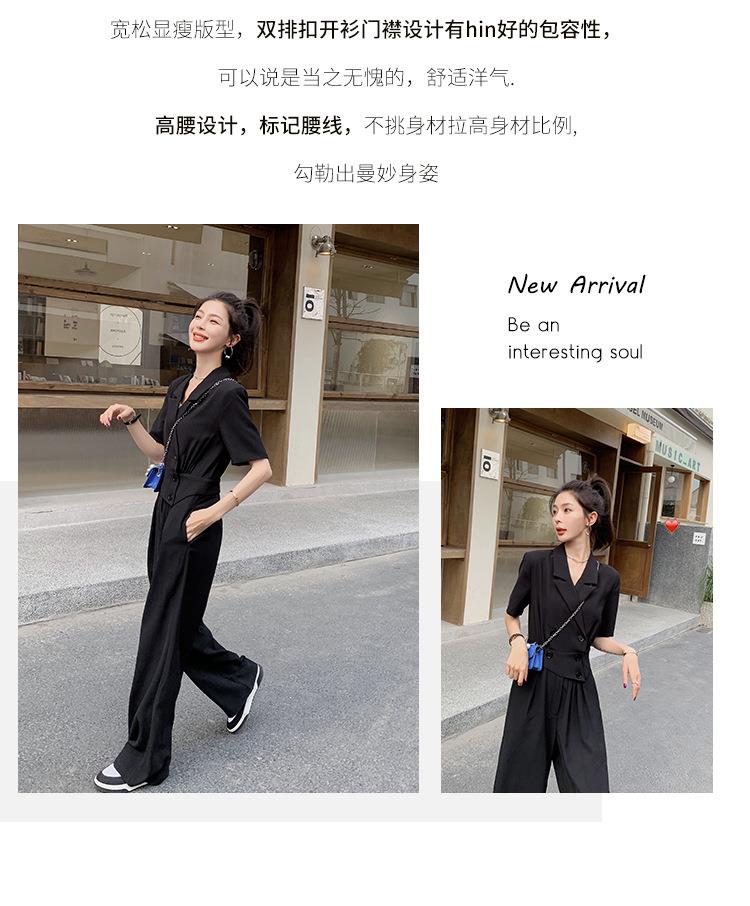 原创短袖西装领连体衣女装2023夏季新款设计感黑色连衣裤连体裤子