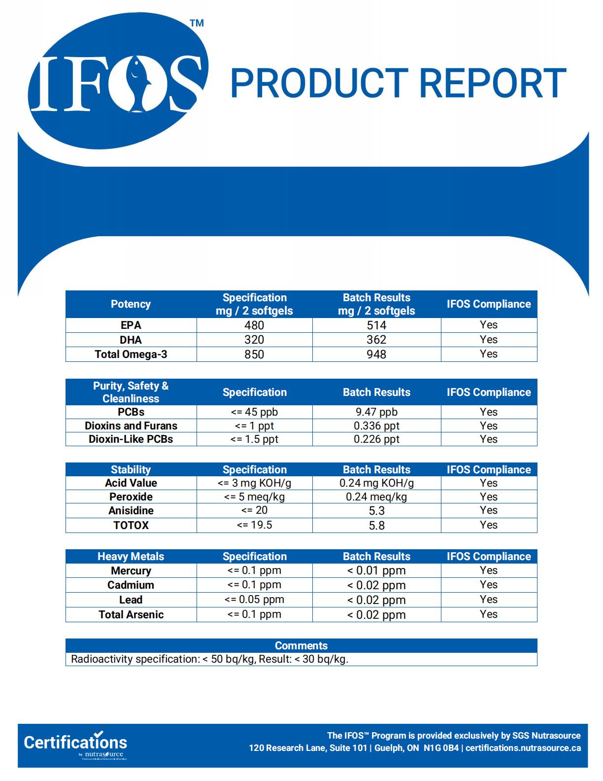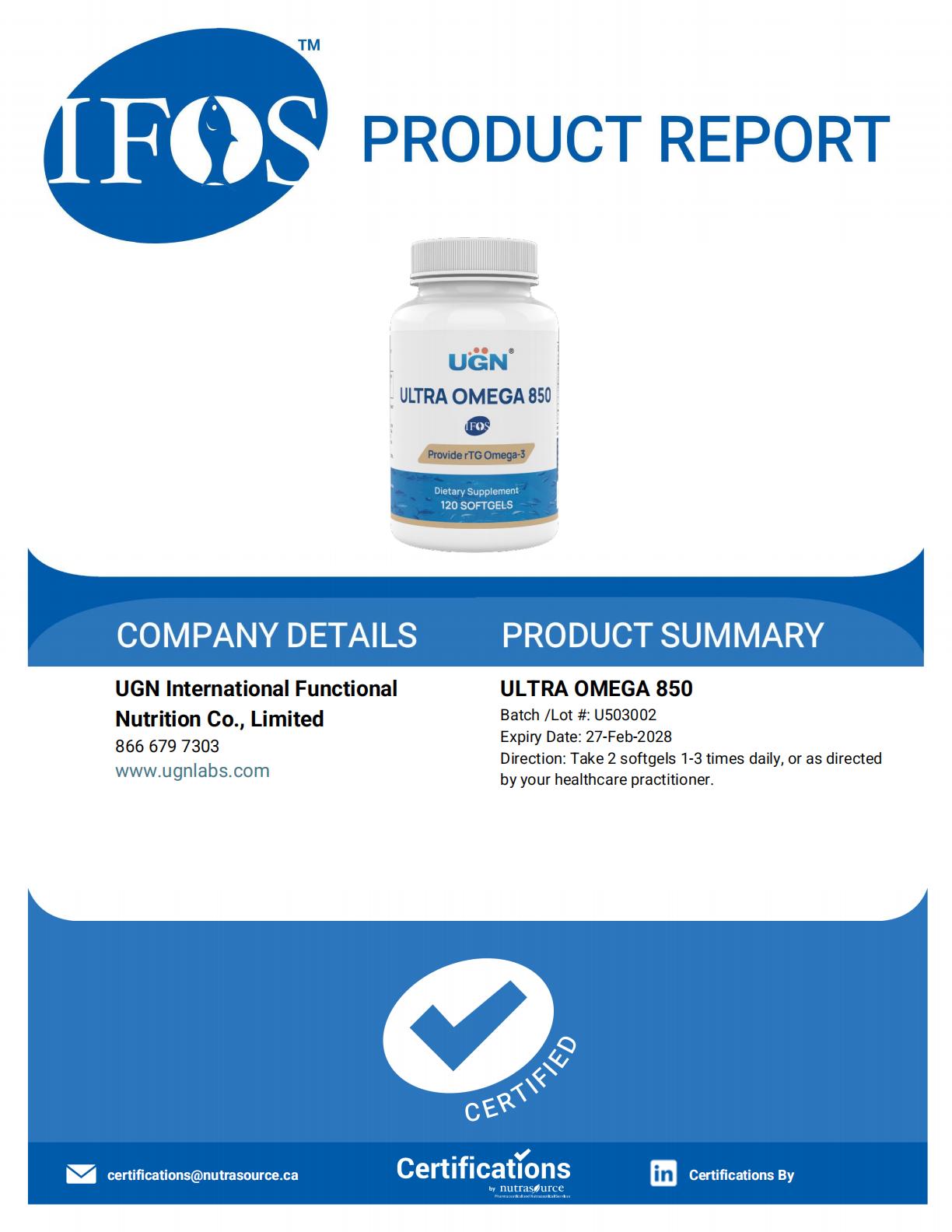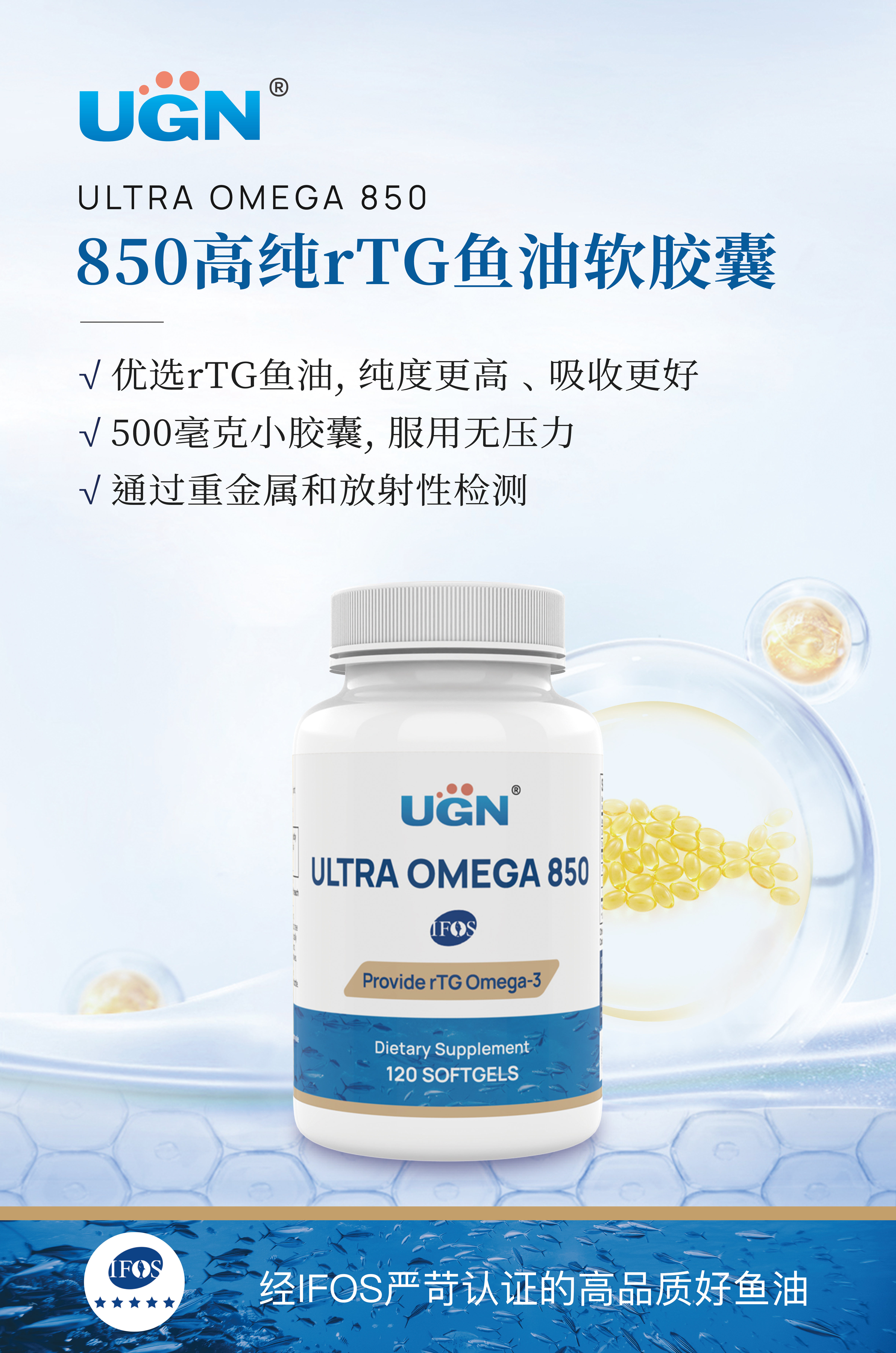 UGN 850高纯rTG鱼油软胶囊,rTG结构,金标,实测94%纯度,IFOS批次认证(120粒/瓶)减塑无瓶口外塑膜