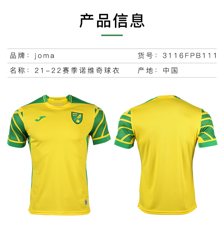 JOMA/霍马21-22赛季诺维奇主场球迷版短袖球衣成人男