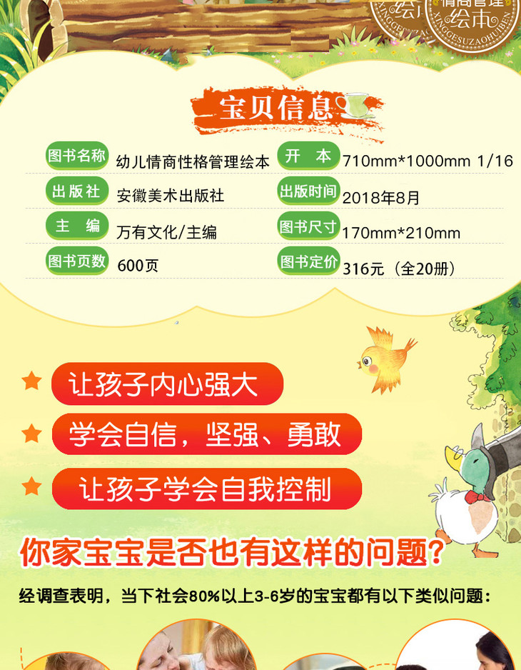 幼儿完美性格塑造+情商行为管理亲子绘本(全20册)亲子阅读儿童绘本 3-6周岁4-6岁20册6-8 幼儿园绘本故事书小班大班中班儿童书籍5-8宝宝启蒙带拼音的读物4幼儿绘本5岁3到6益智早教