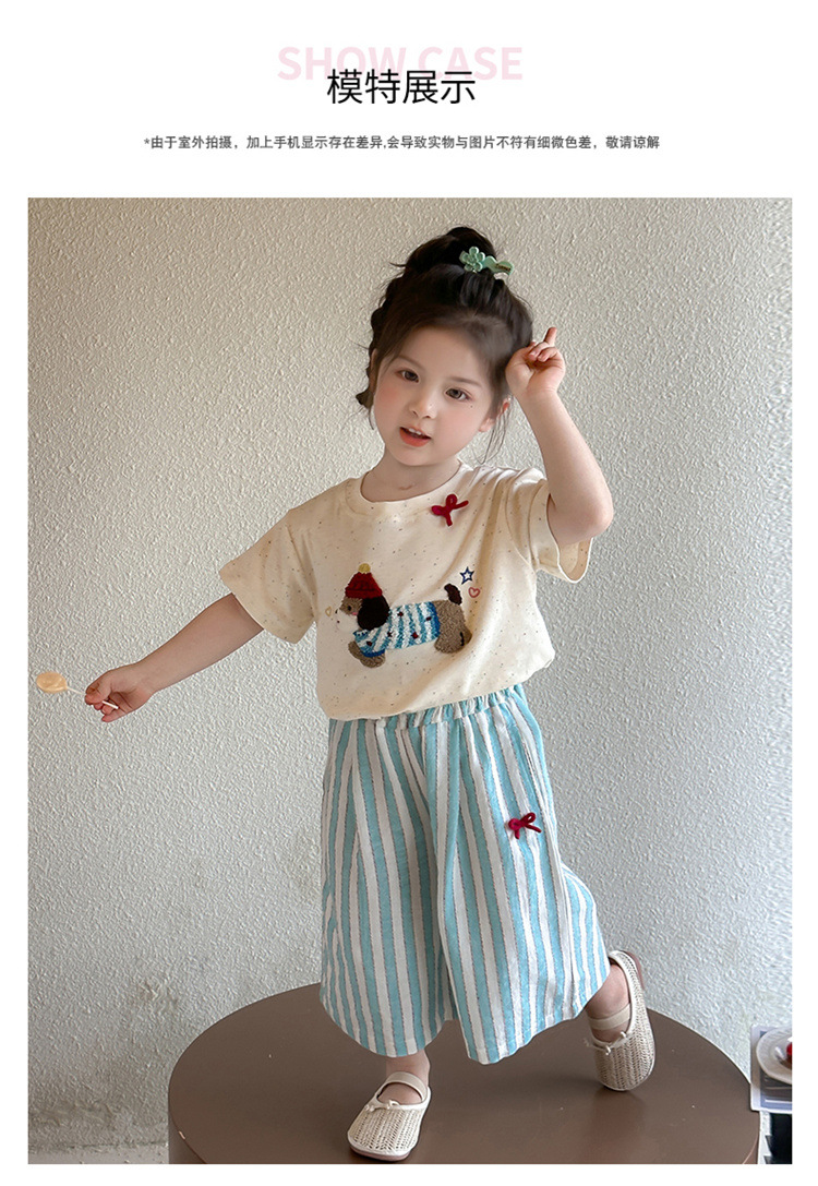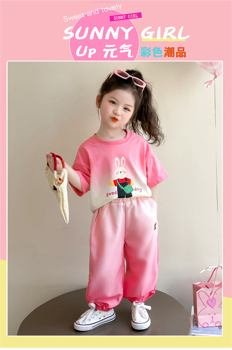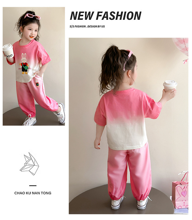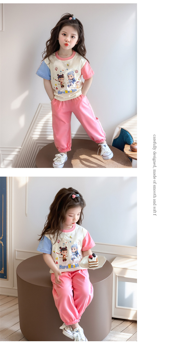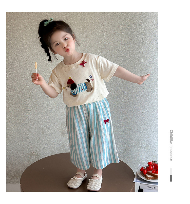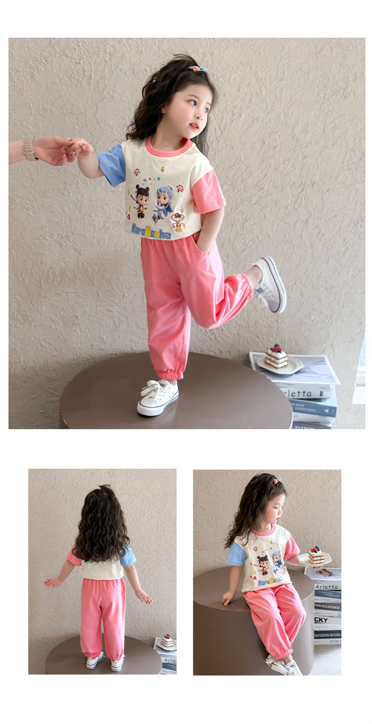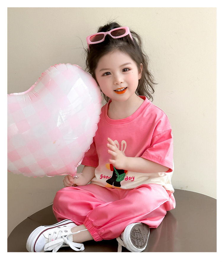 【多巴胺懒人套装】韩国潮流女童刺绣卡通短袖套装 洋气网红休闲两件套