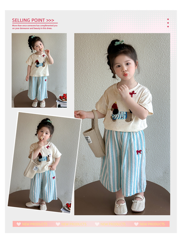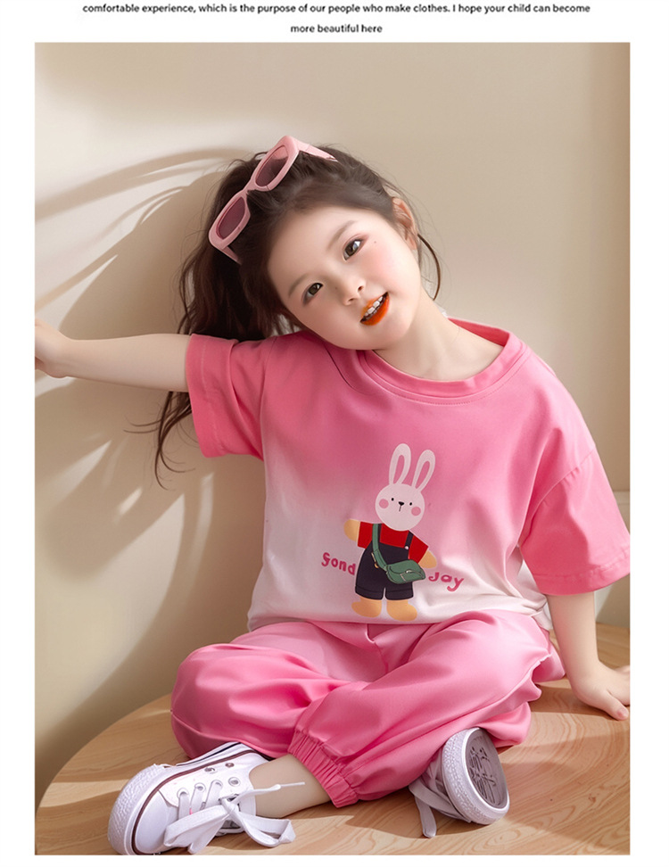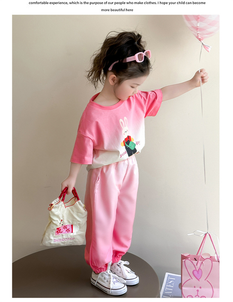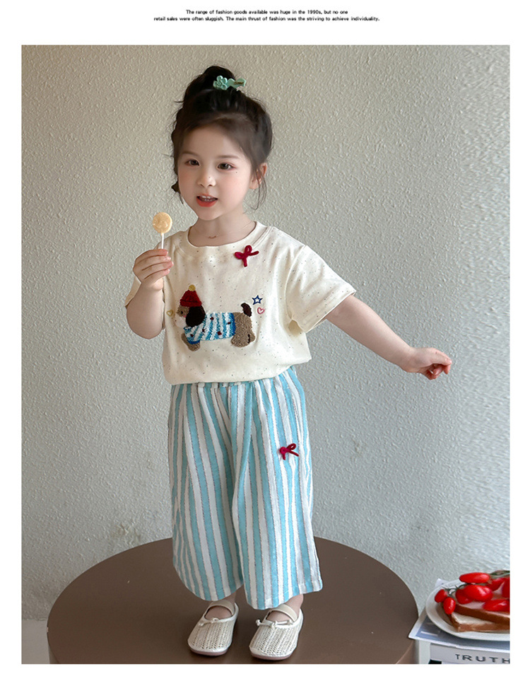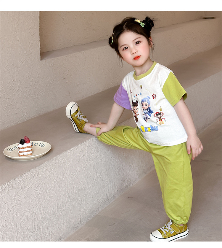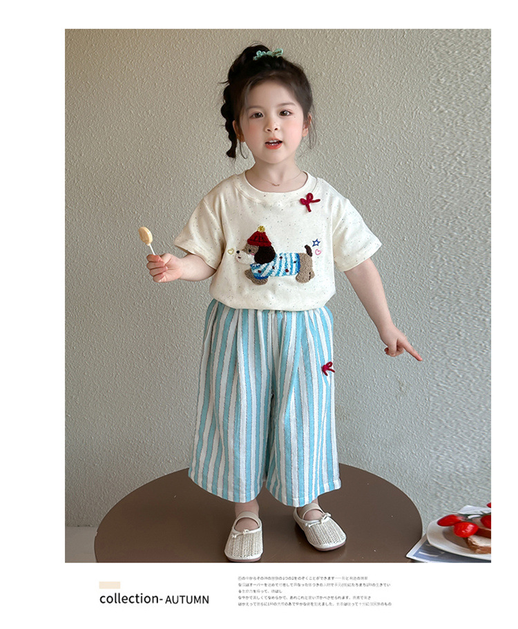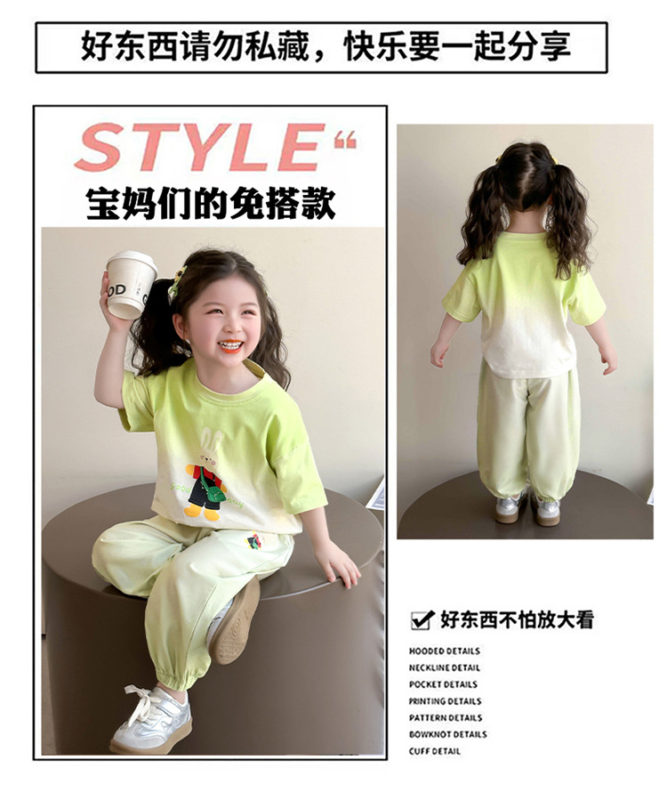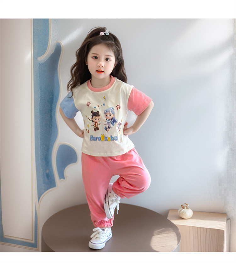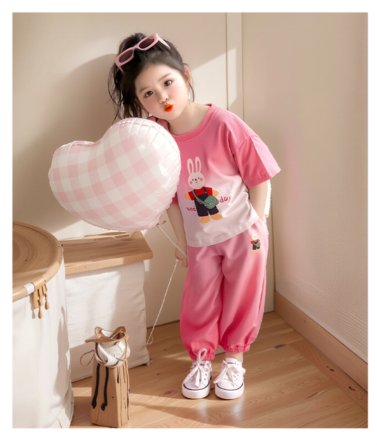【多巴胺懒人套装】韩国潮流女童刺绣卡通短袖套装 洋气网红休闲两件套