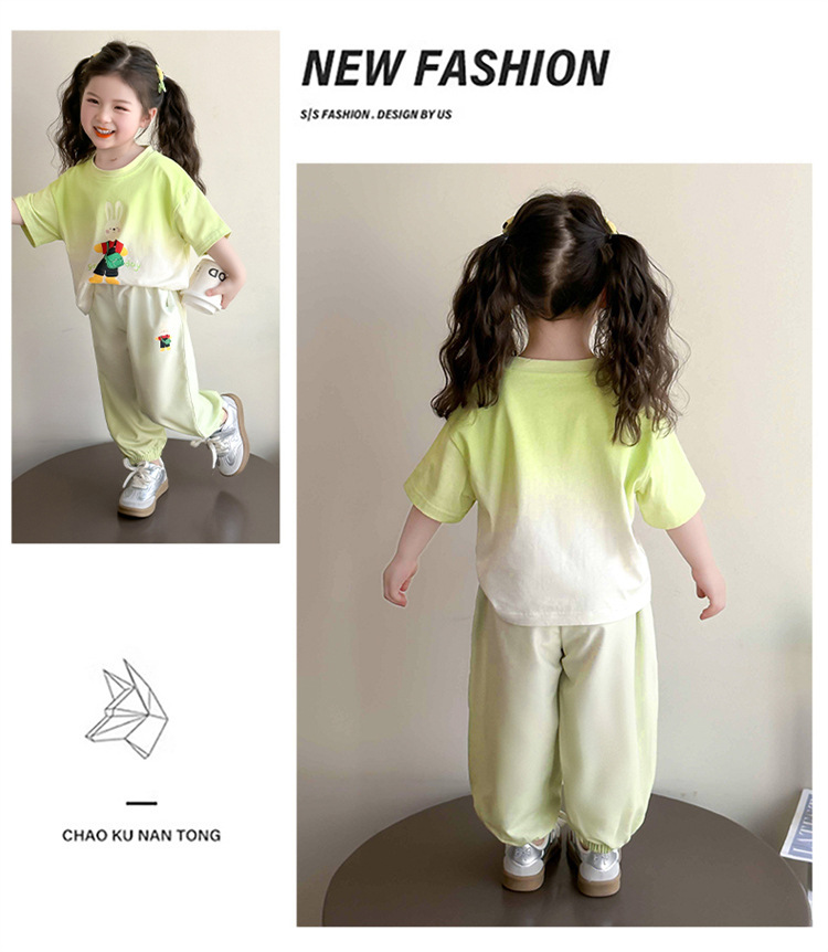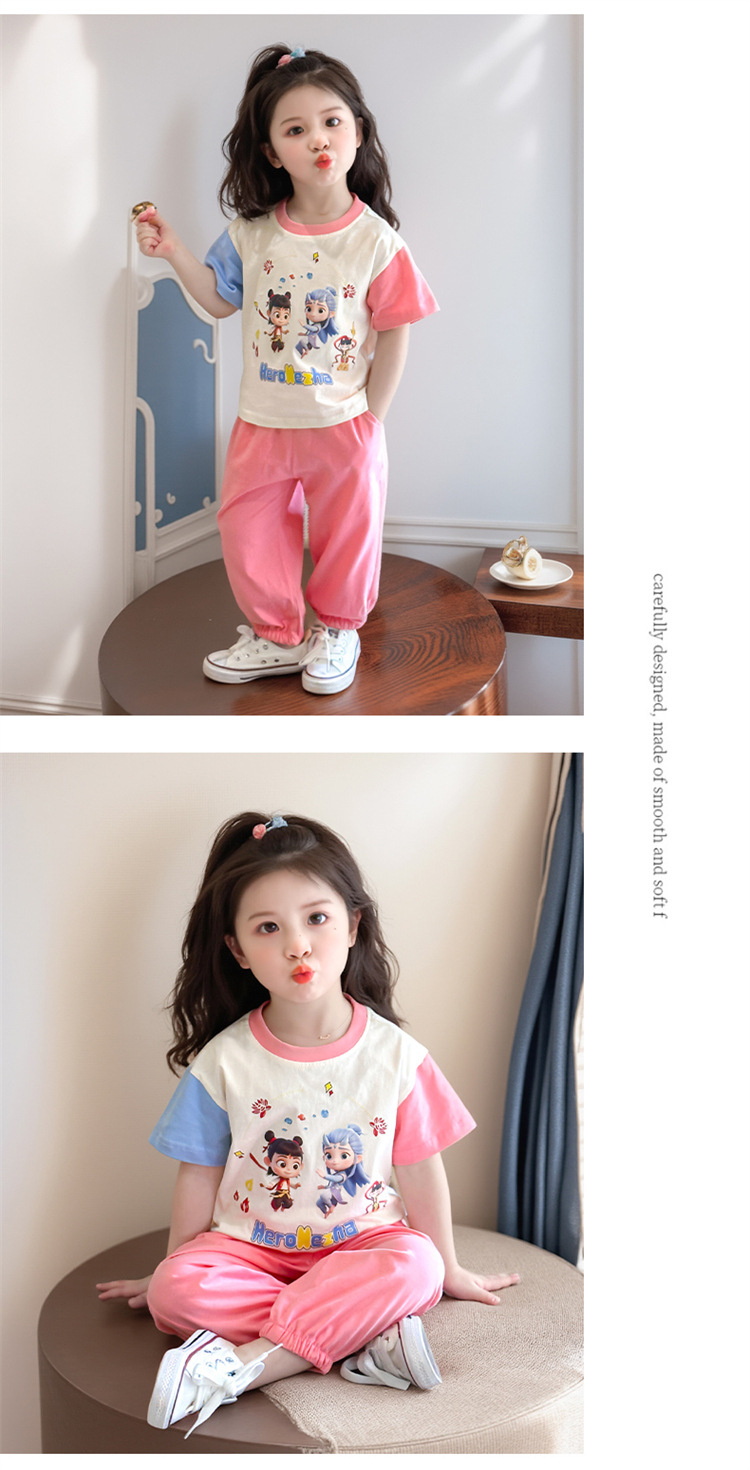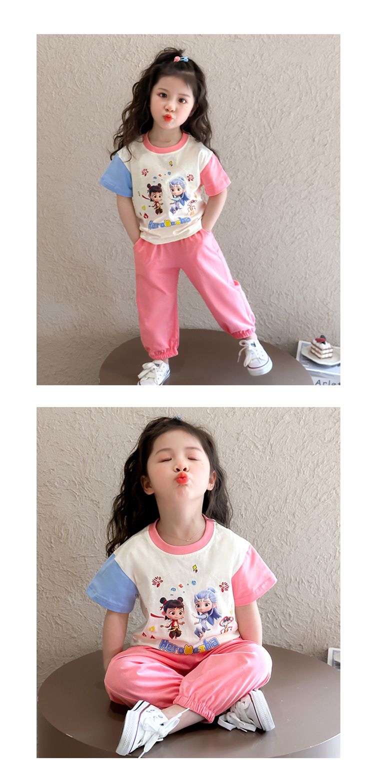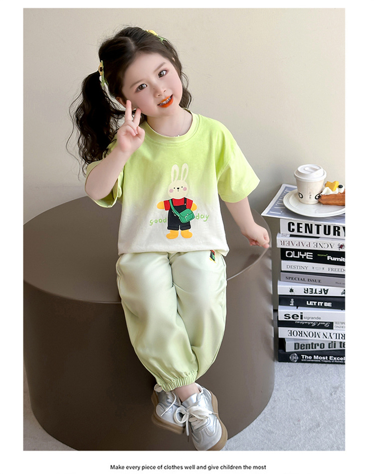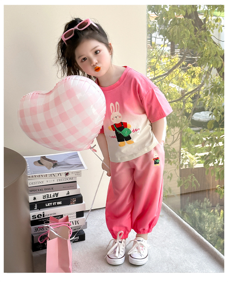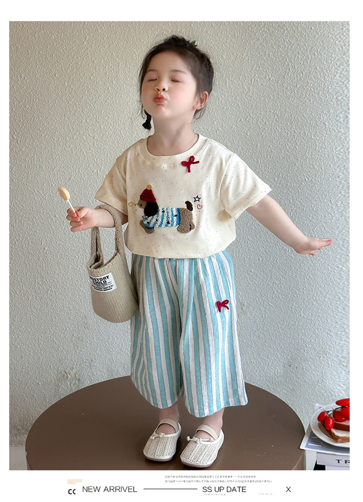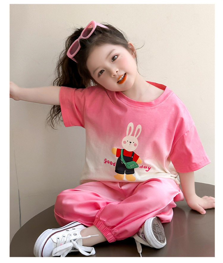【多巴胺懒人套装】韩国潮流女童刺绣卡通短袖套装 洋气网红休闲两件套