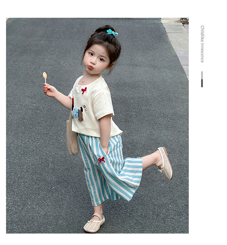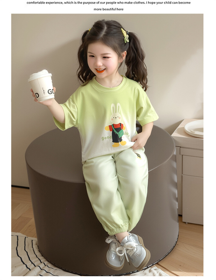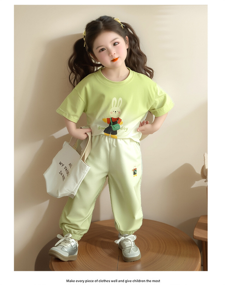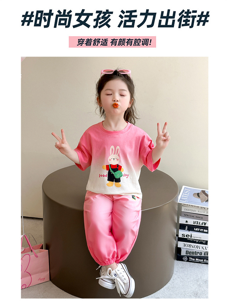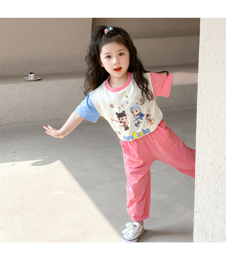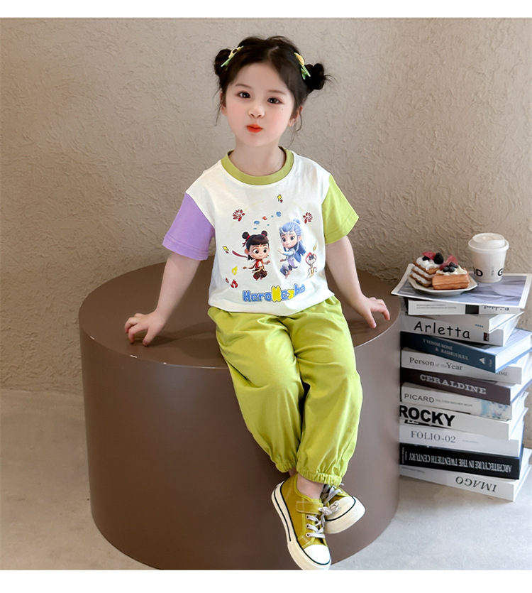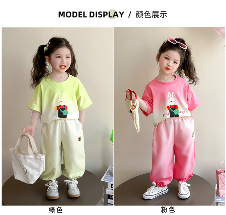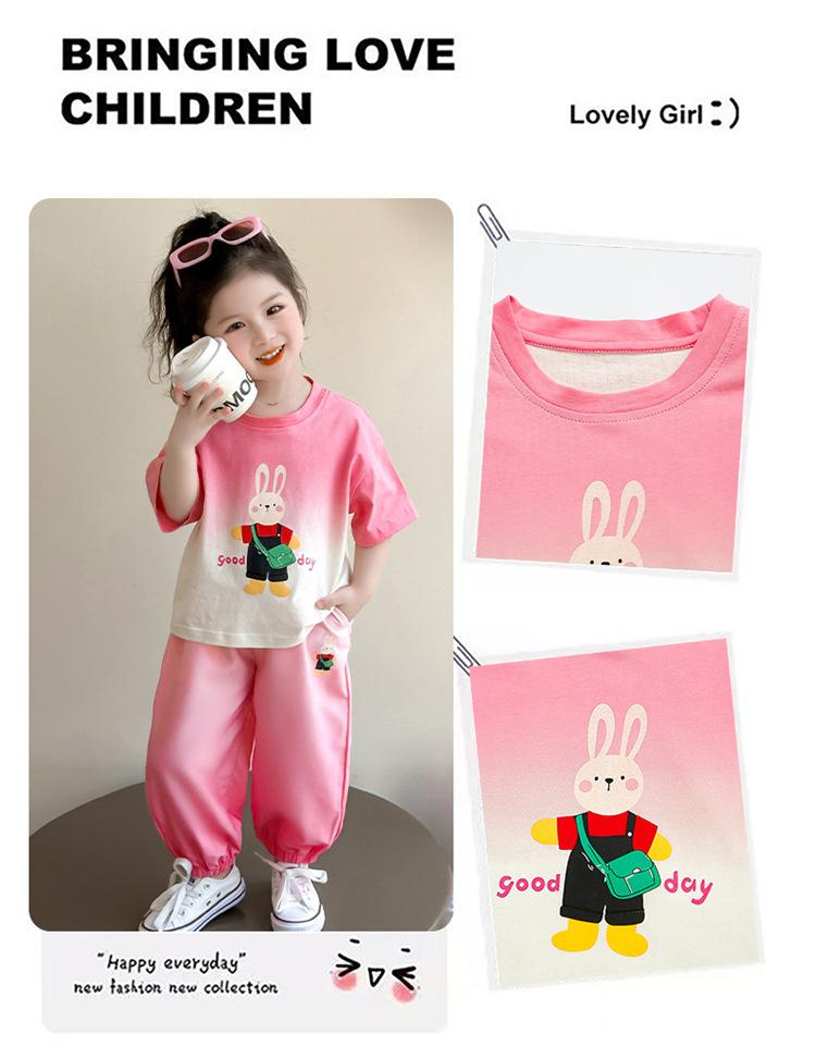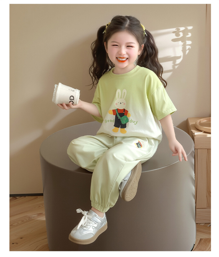 【多巴胺懒人套装】韩国潮流女童刺绣卡通短袖套装 洋气网红休闲两件套