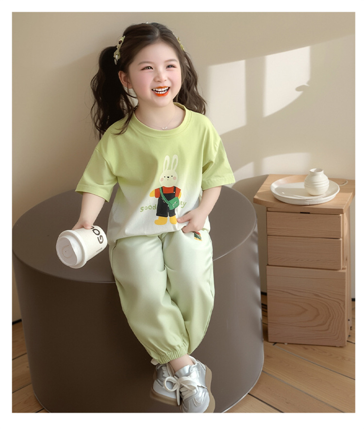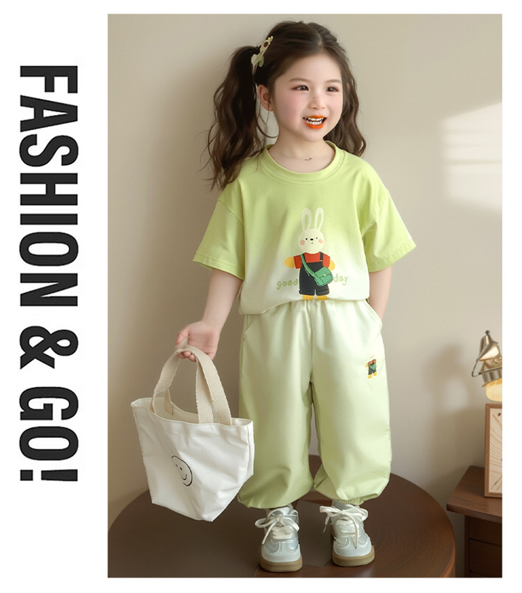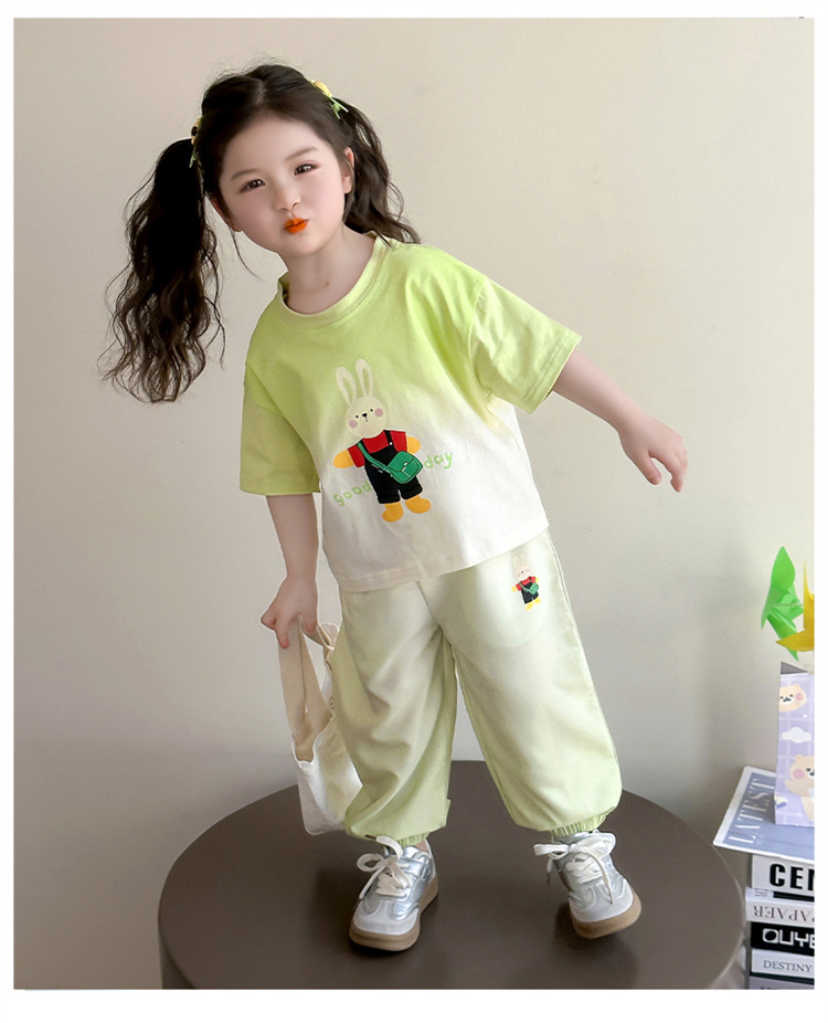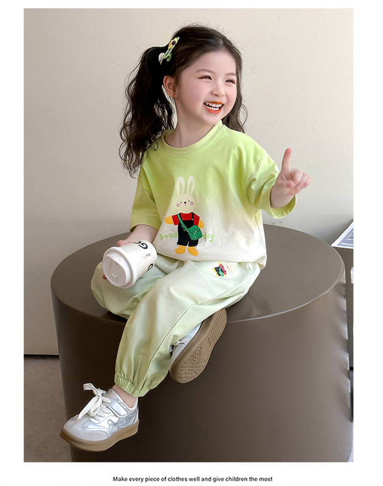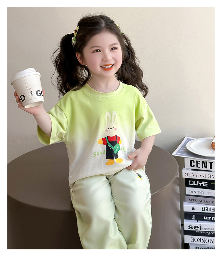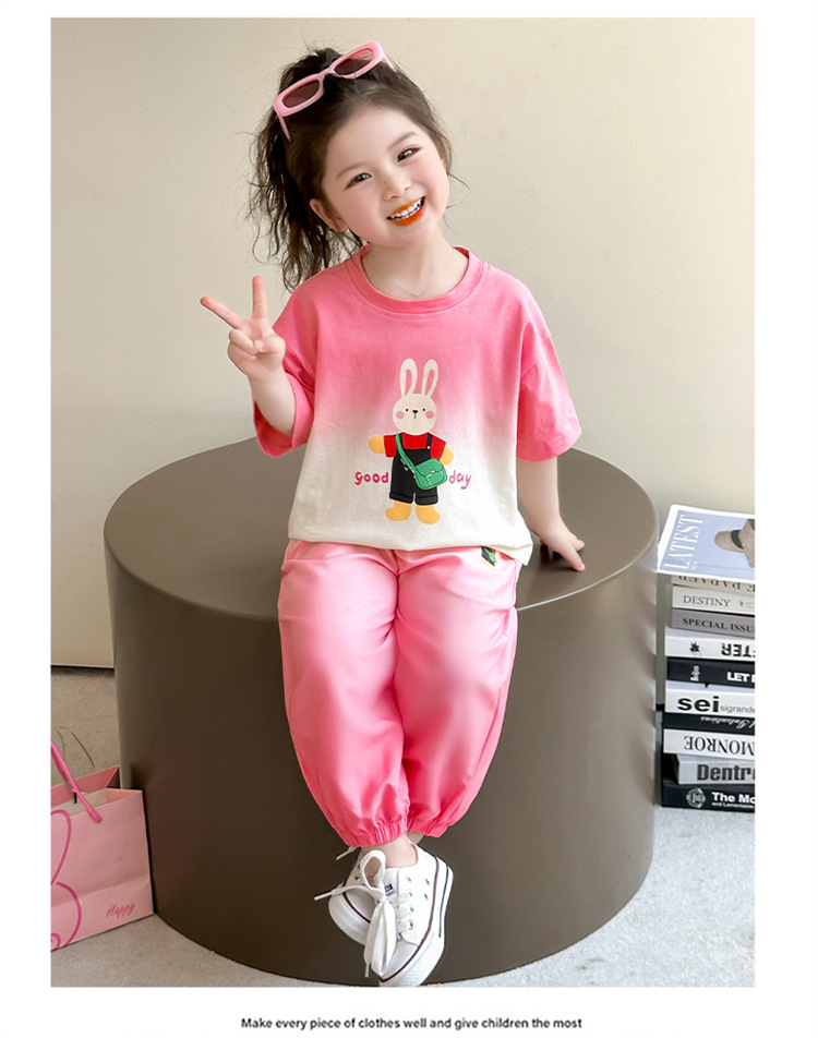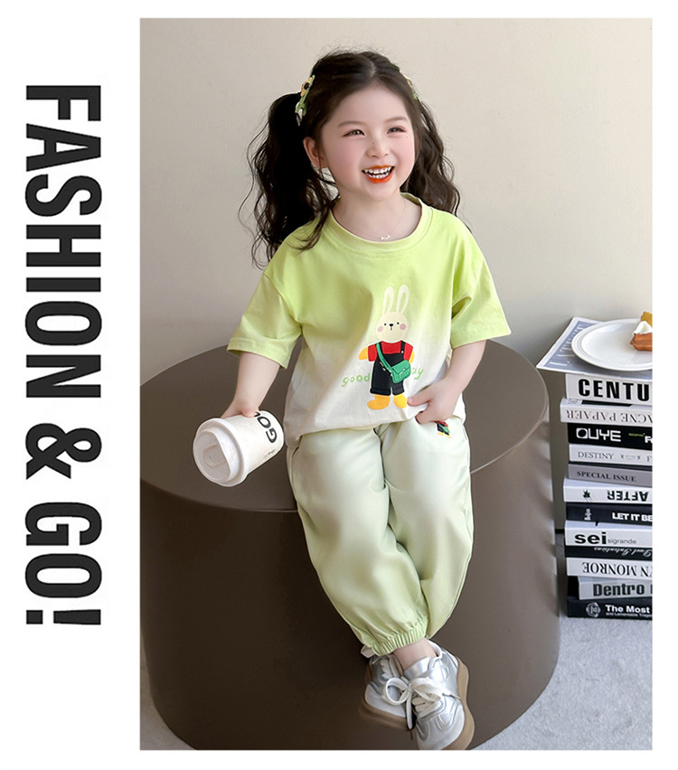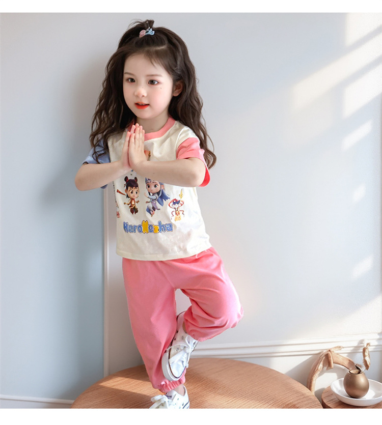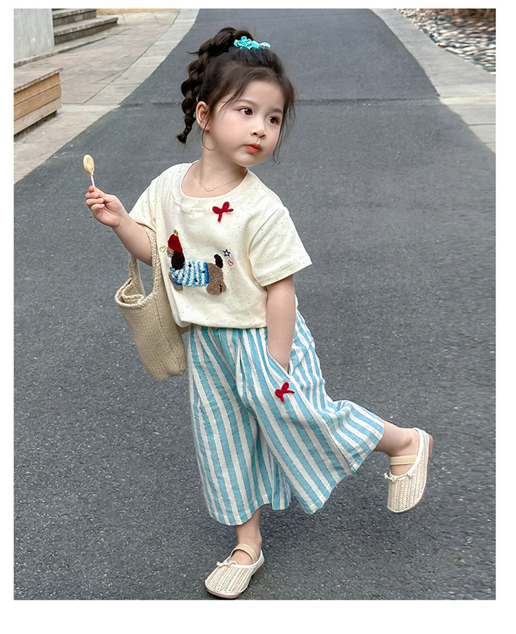 【多巴胺懒人套装】韩国潮流女童刺绣卡通短袖套装 洋气网红休闲两件套