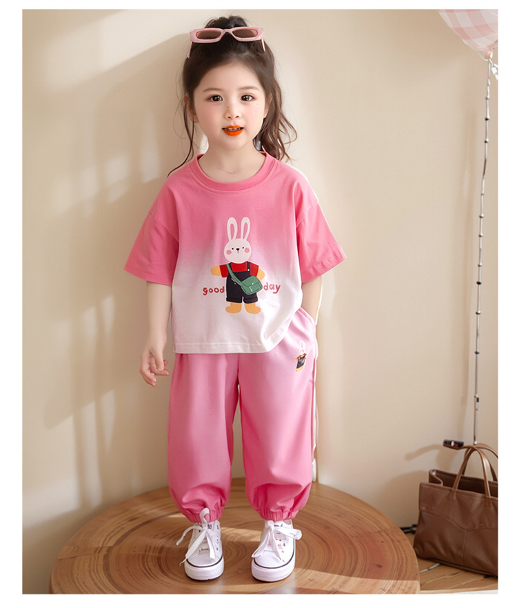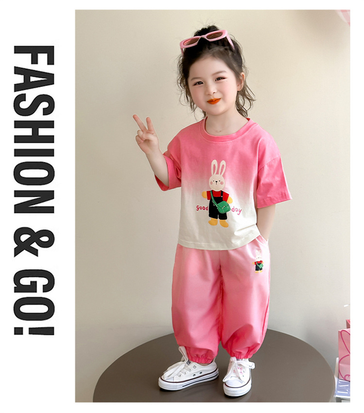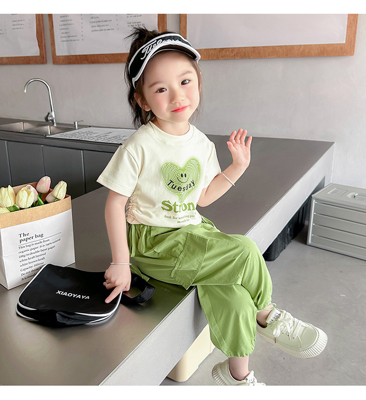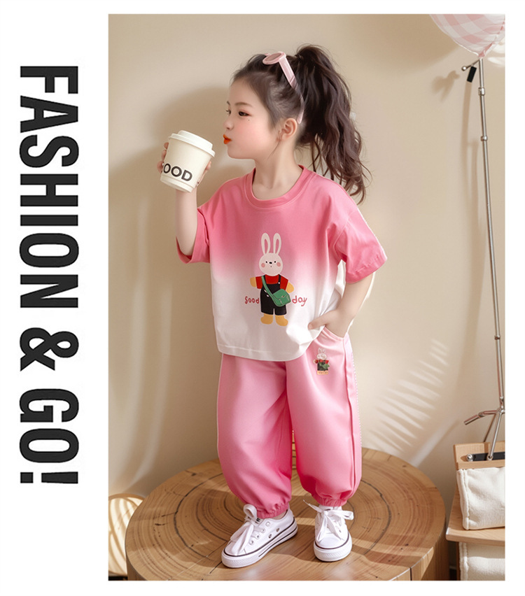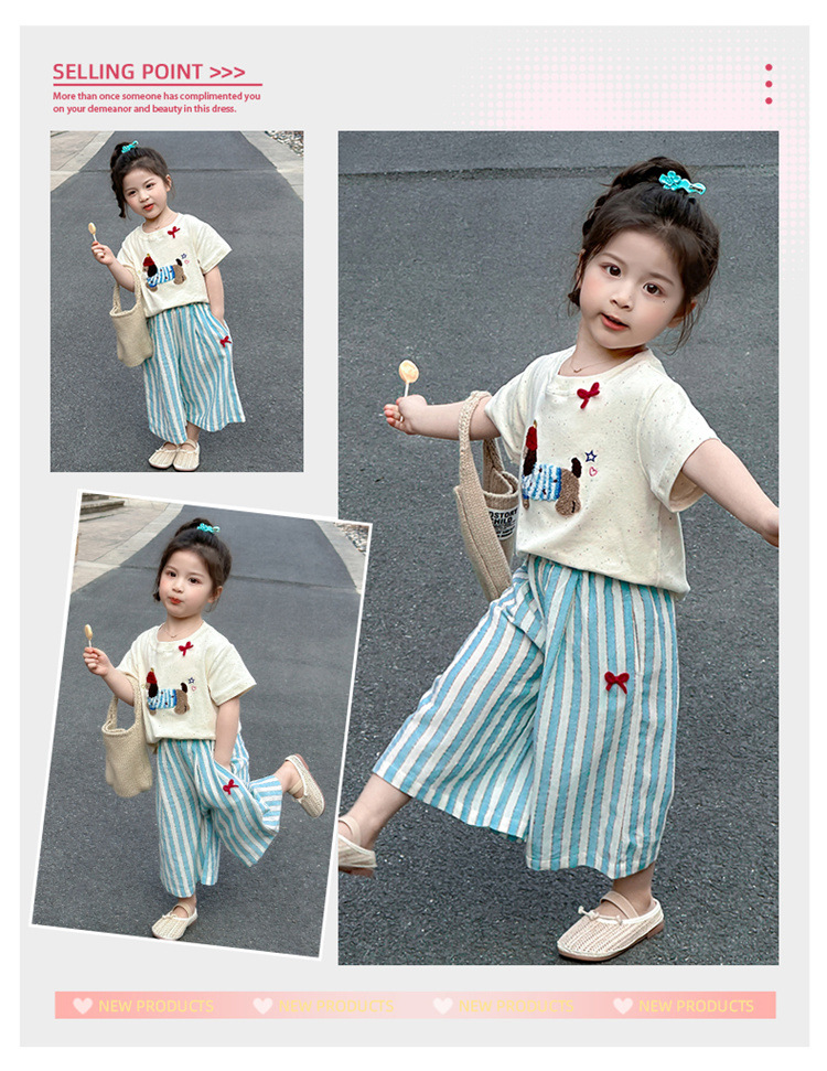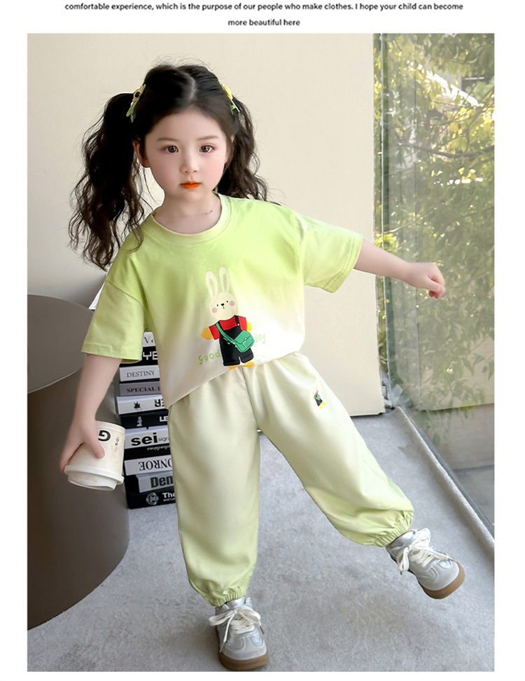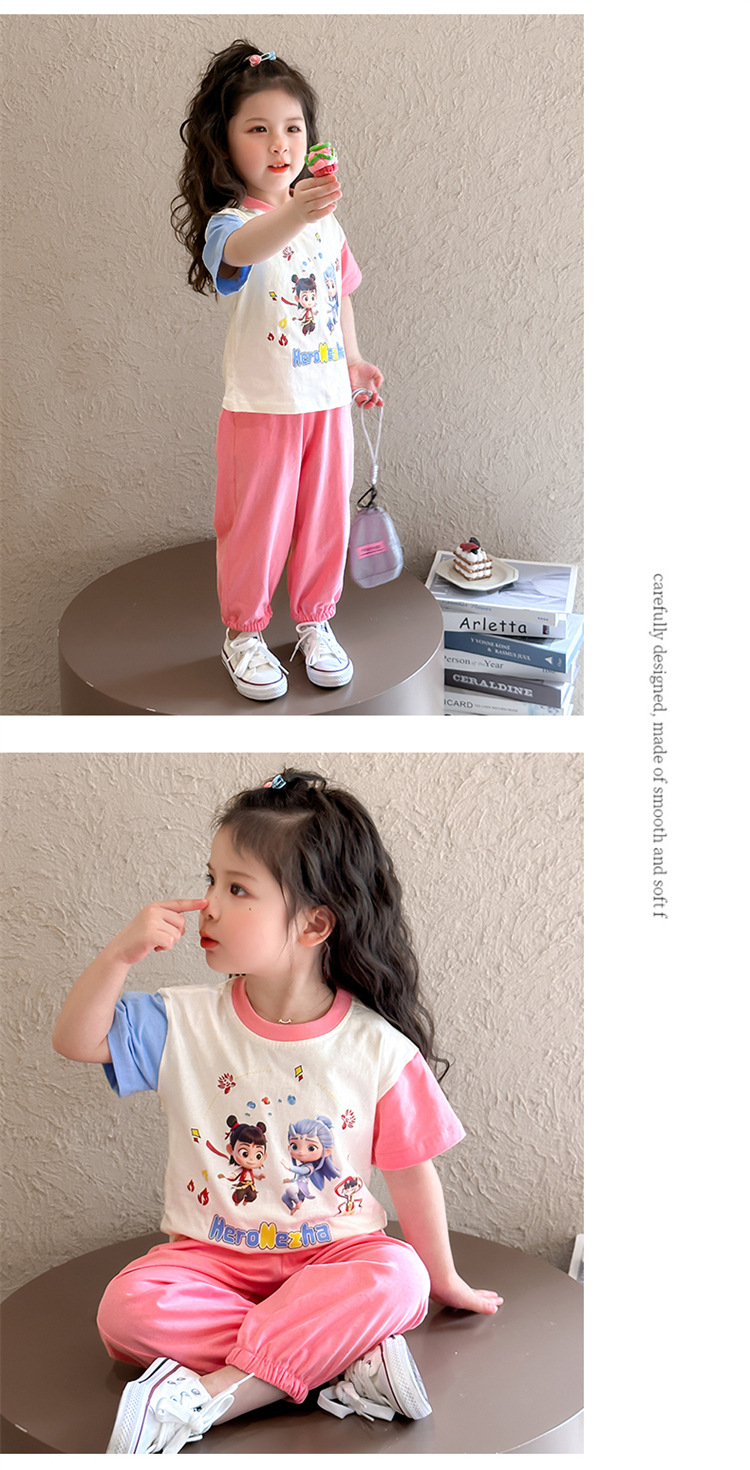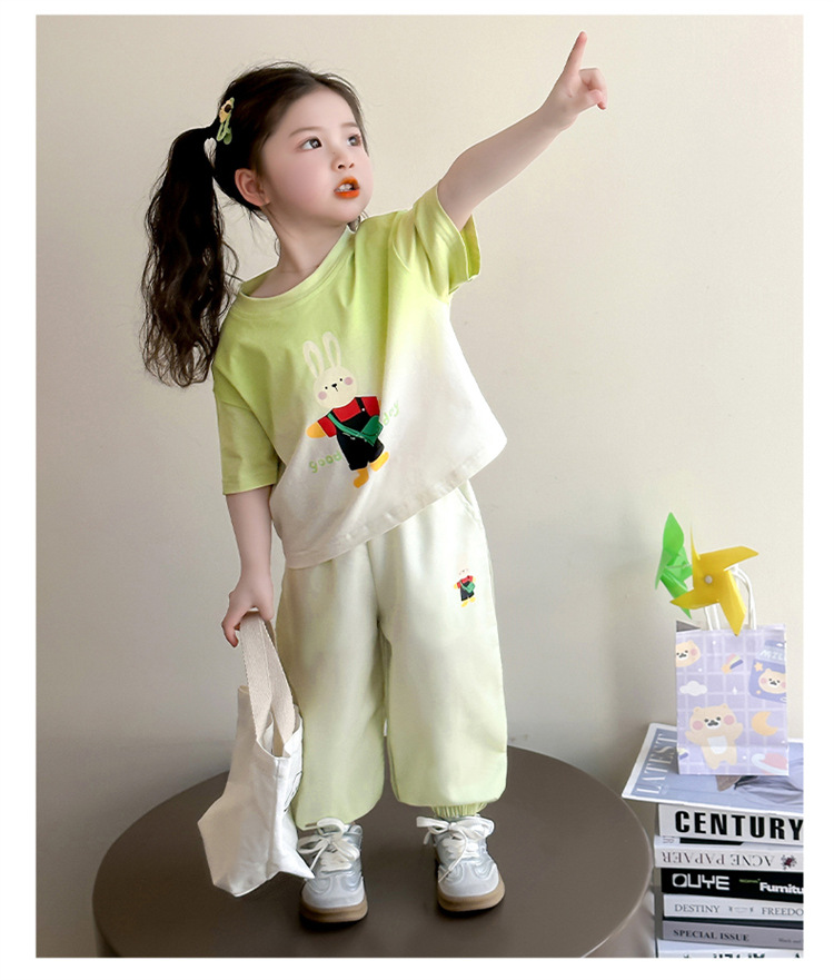 【多巴胺懒人套装】韩国潮流女童刺绣卡通短袖套装 洋气网红休闲两件套