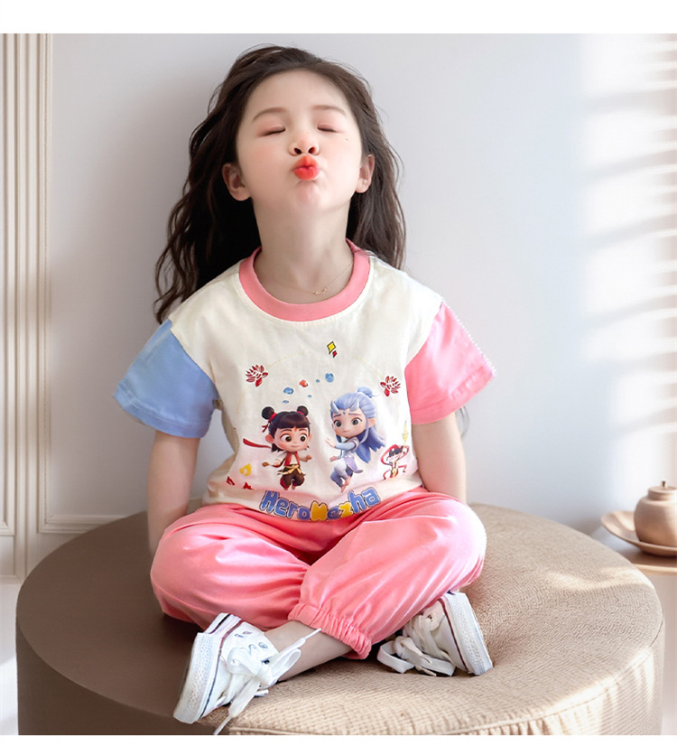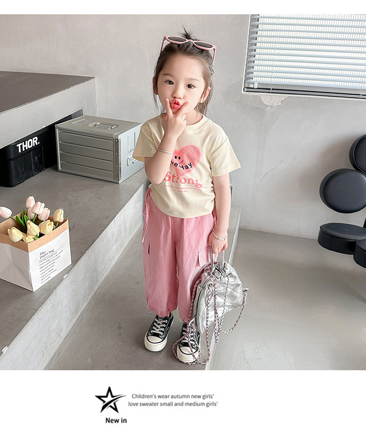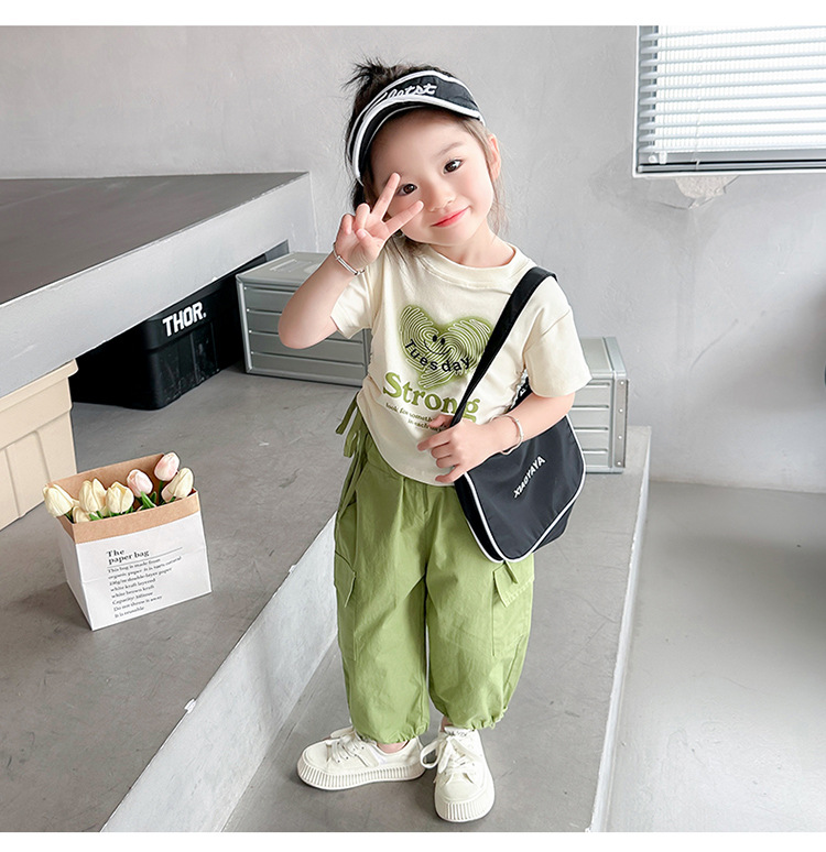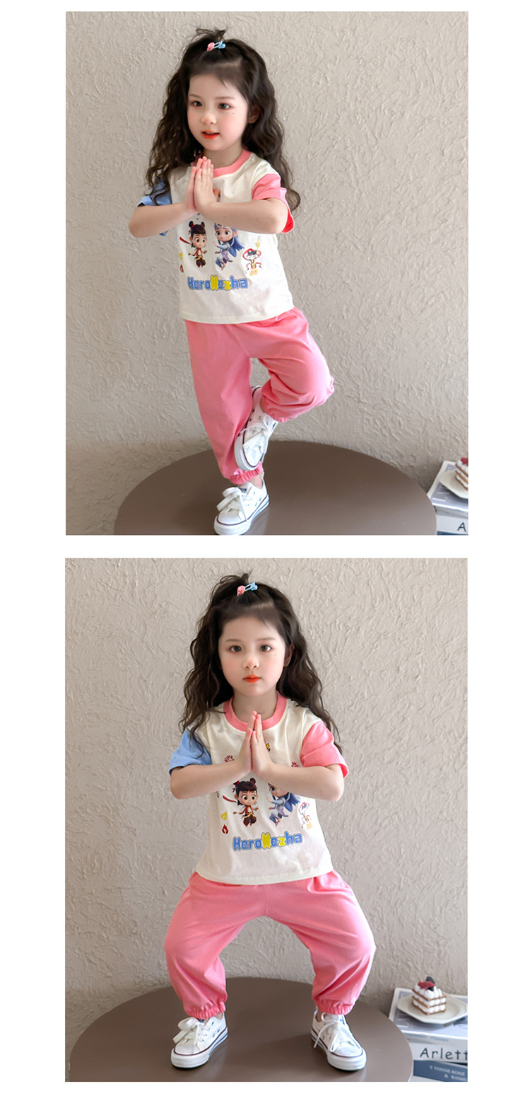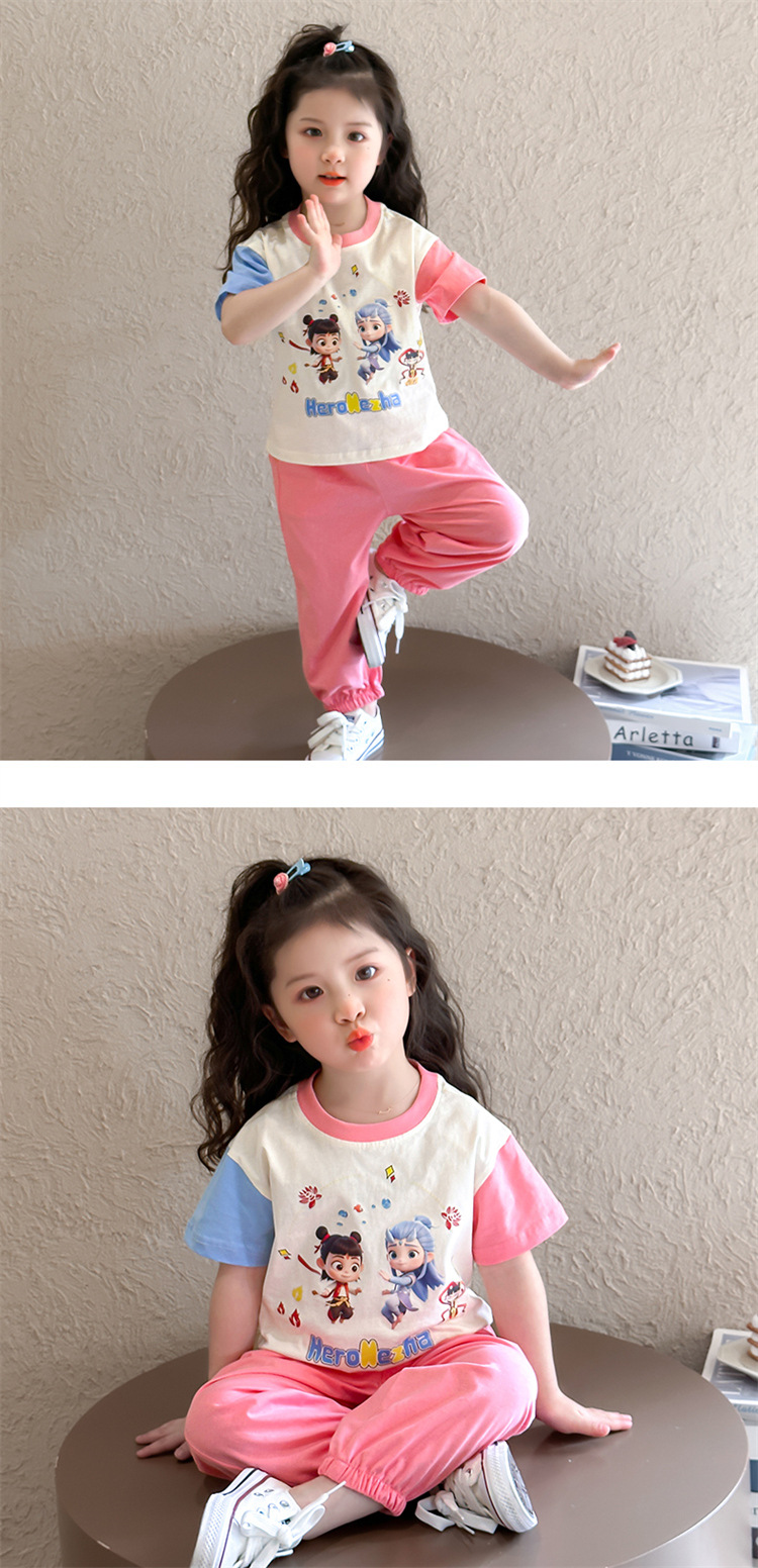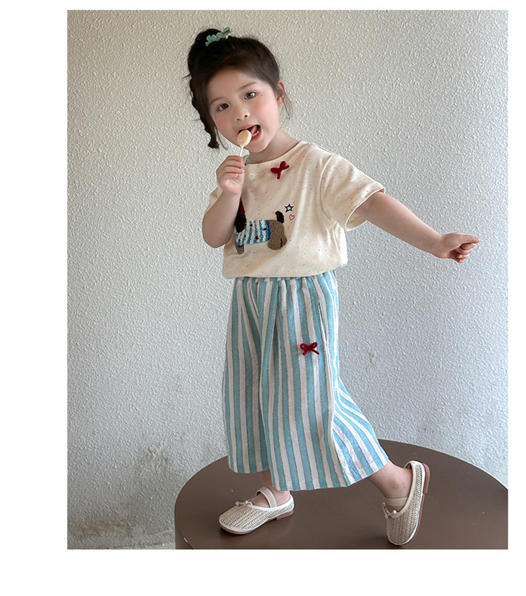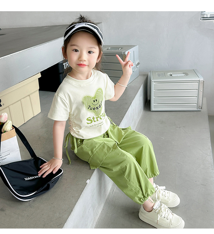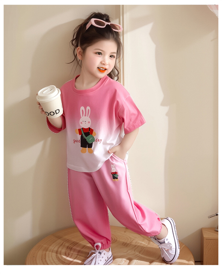 【多巴胺懒人套装】韩国潮流女童刺绣卡通短袖套装 洋气网红休闲两件套
